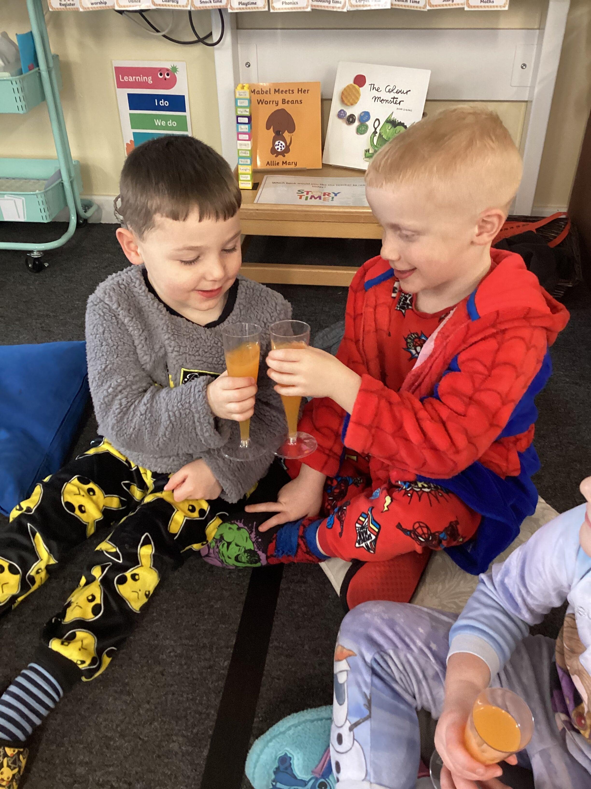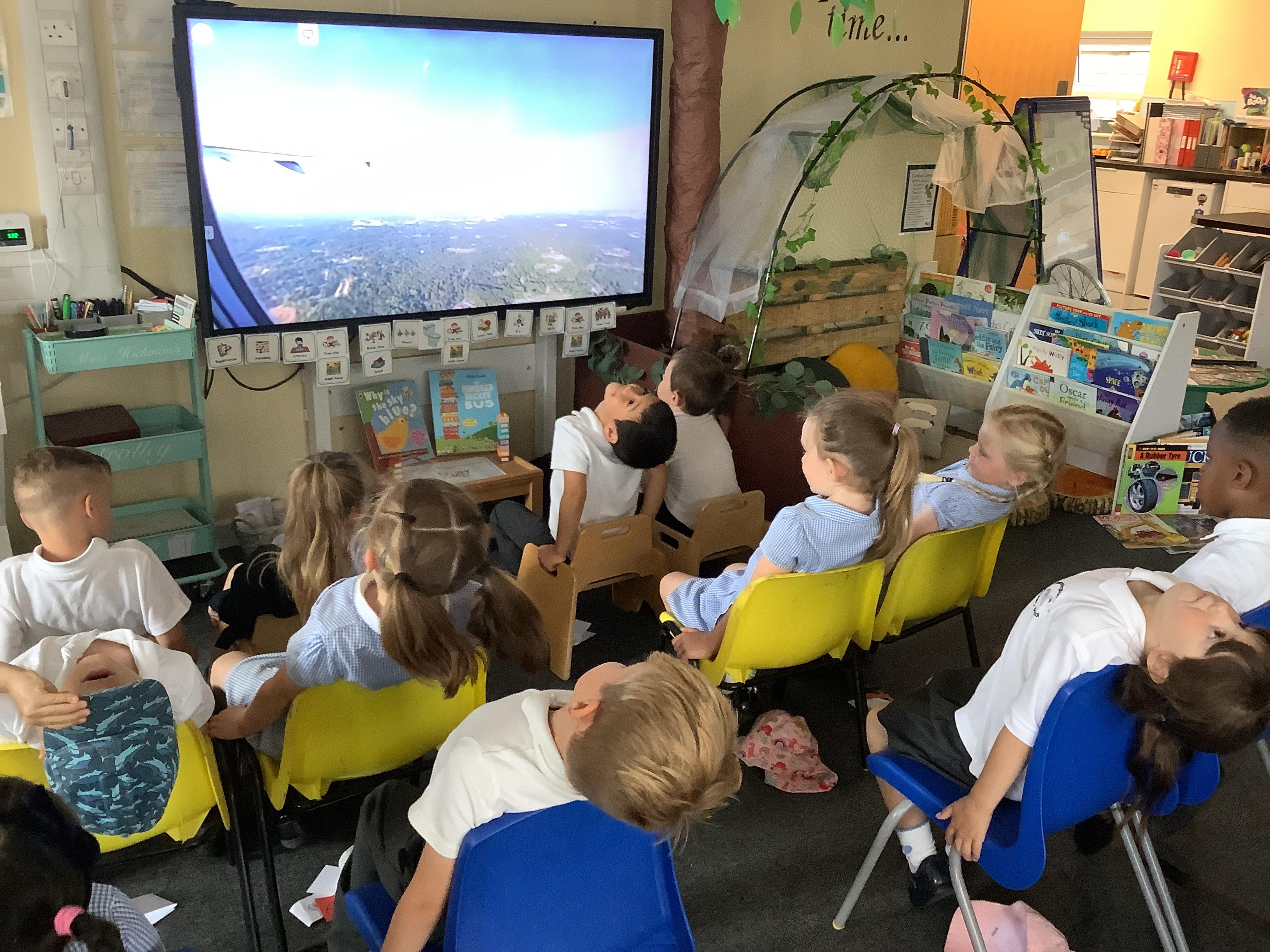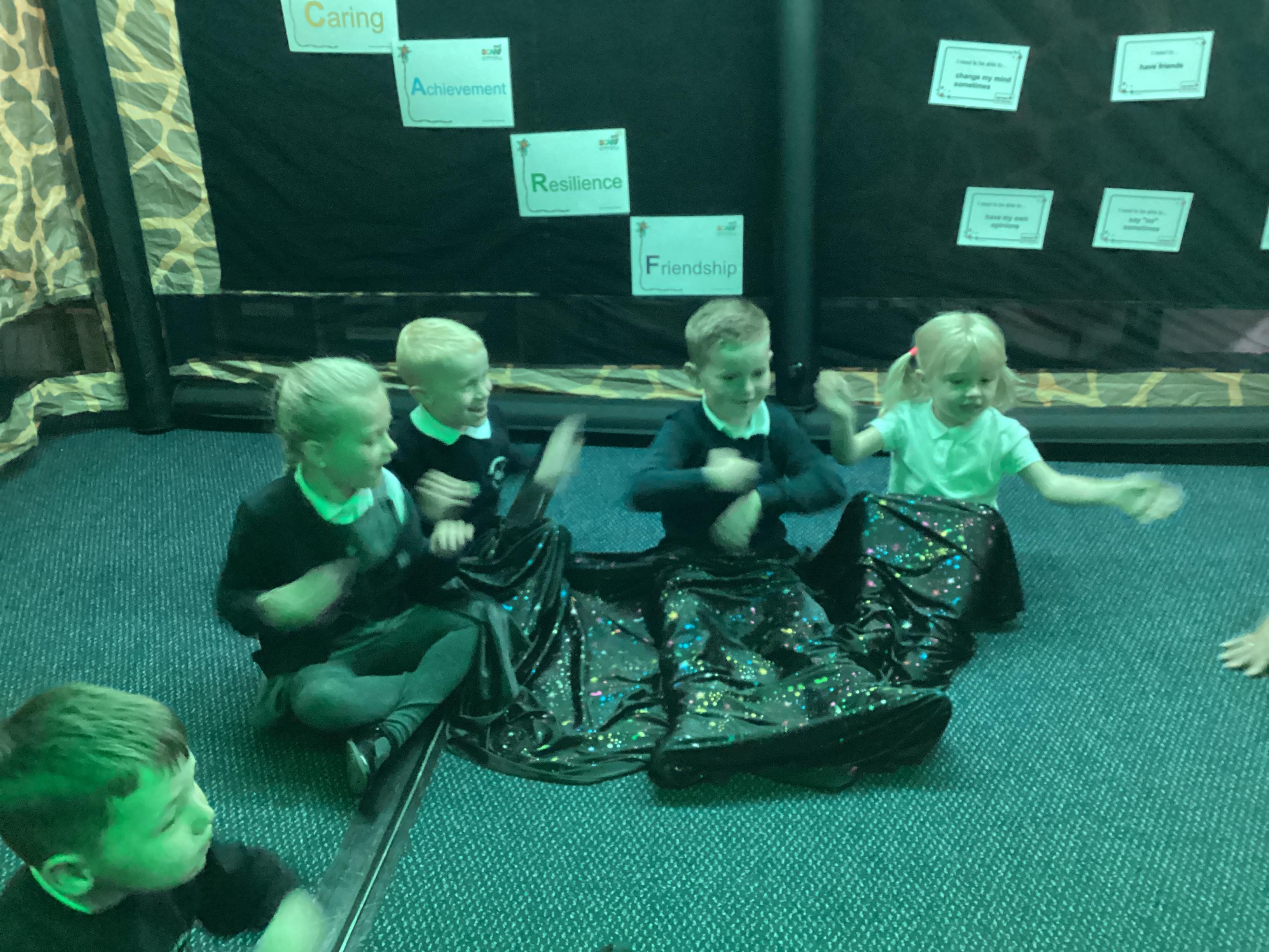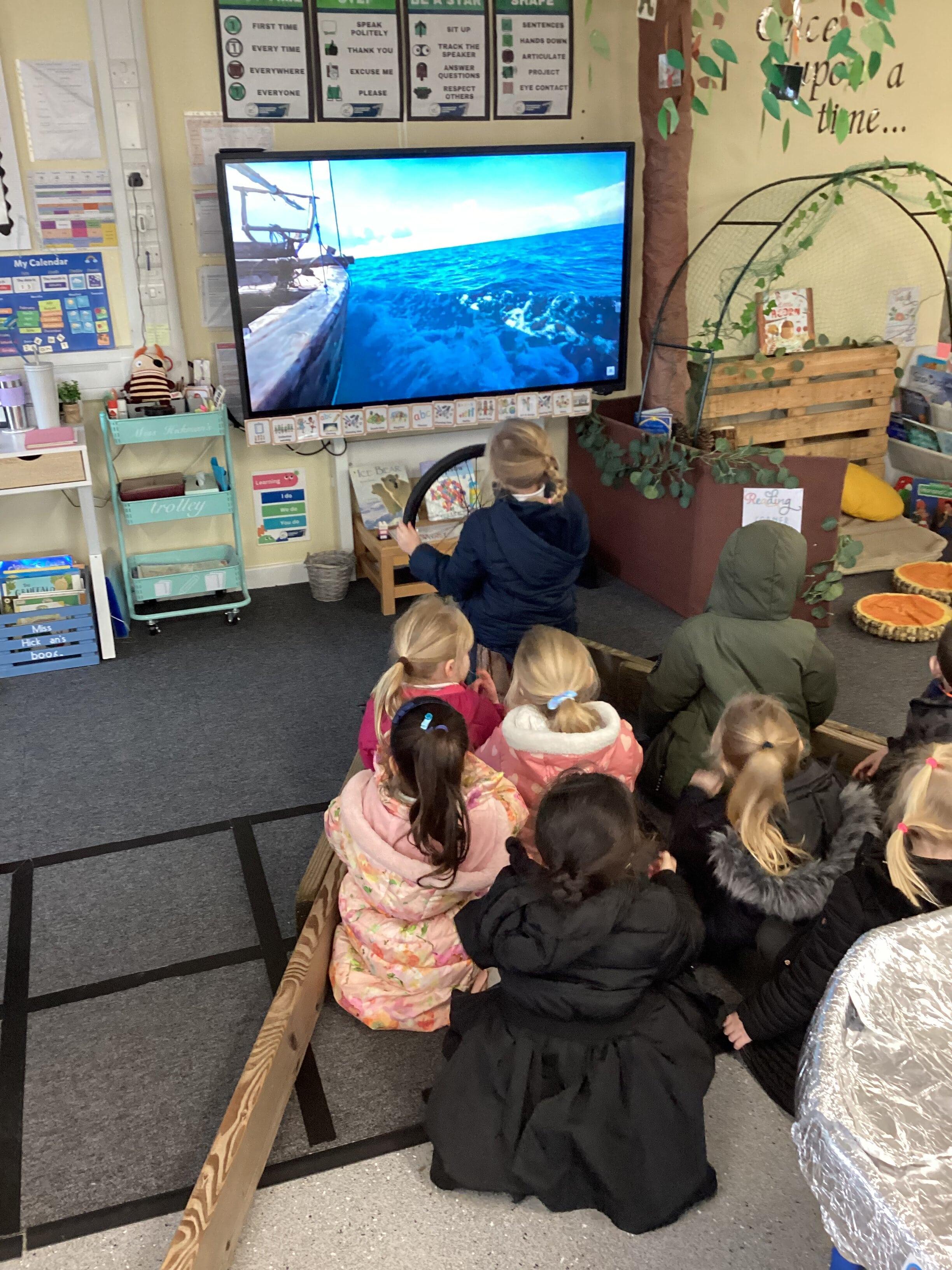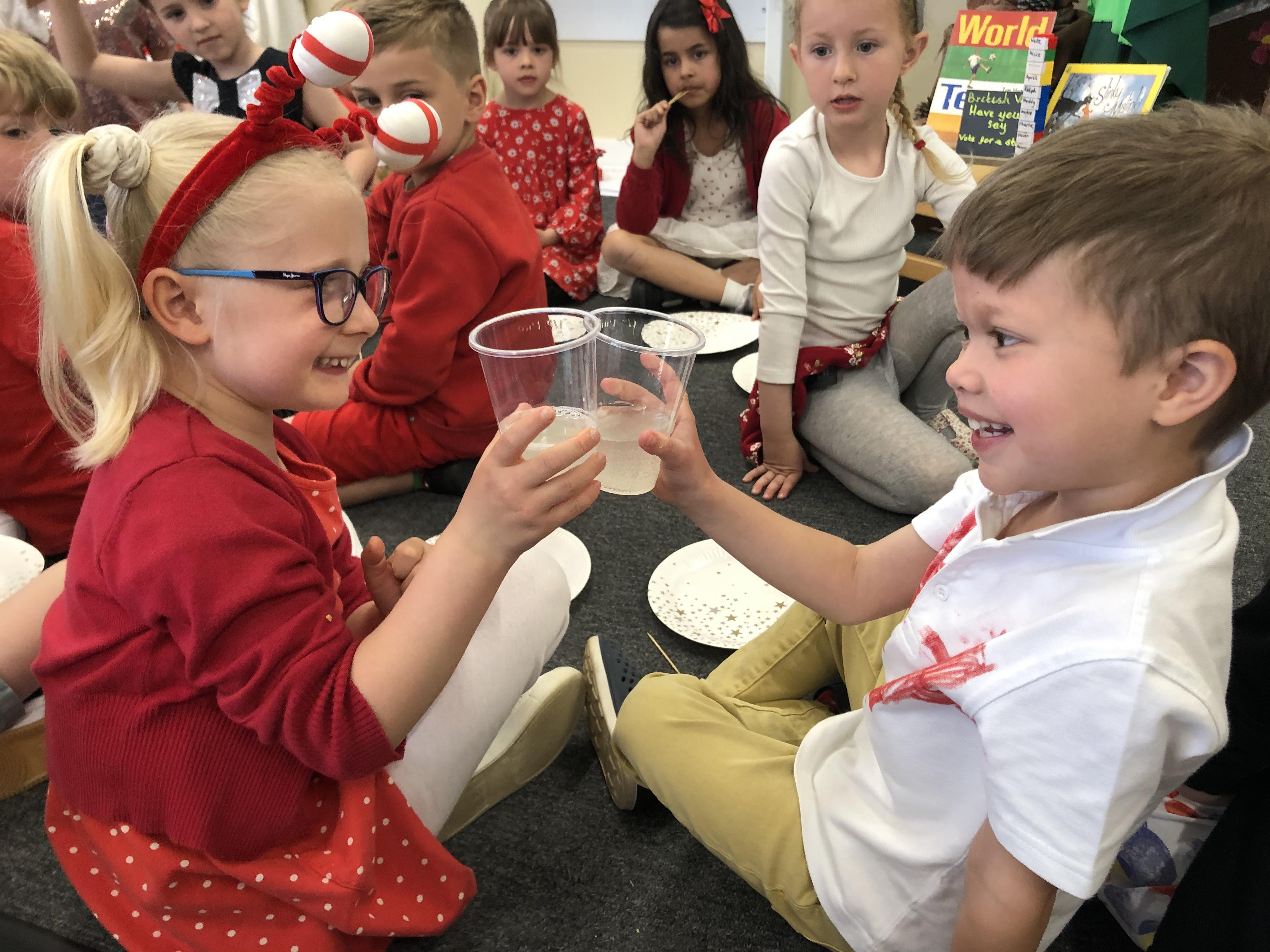 An exciting visit from another EYFS class- February 2024