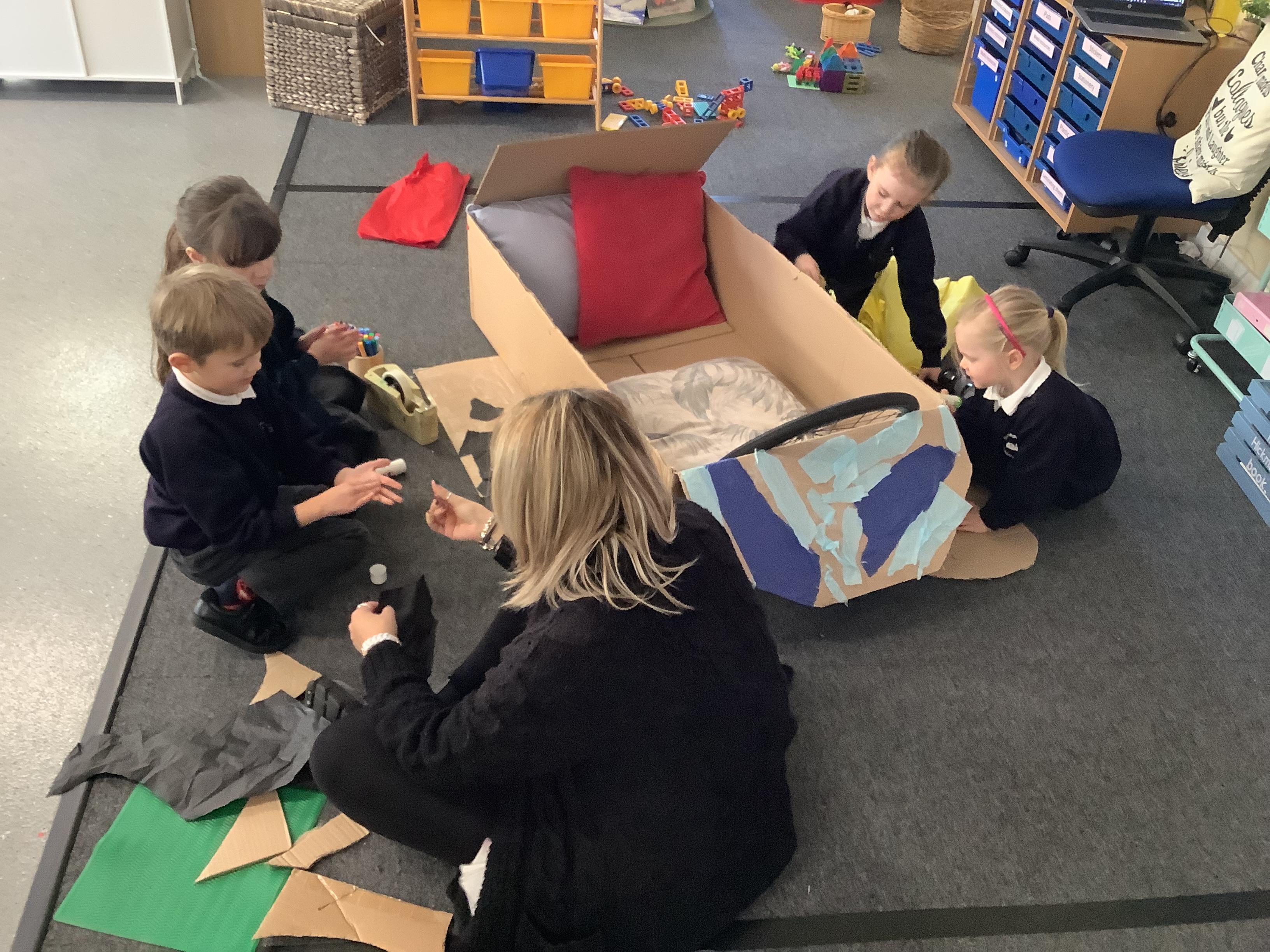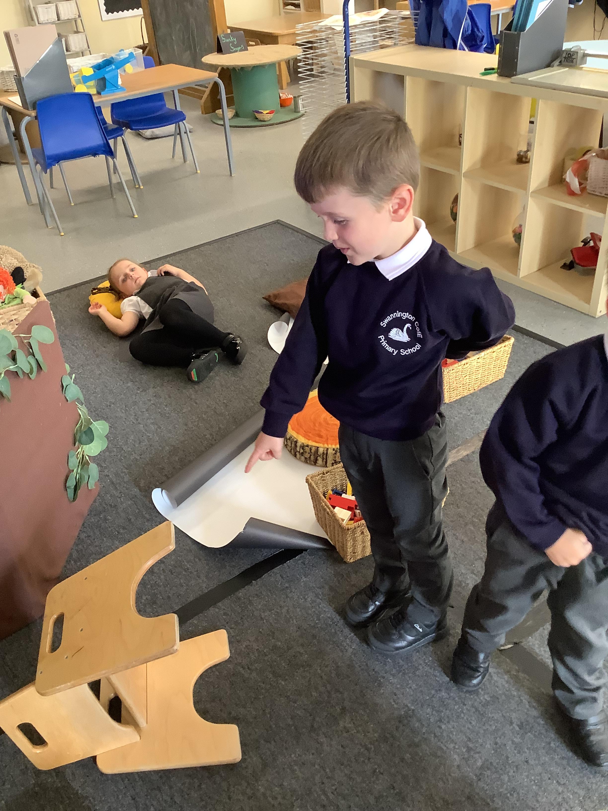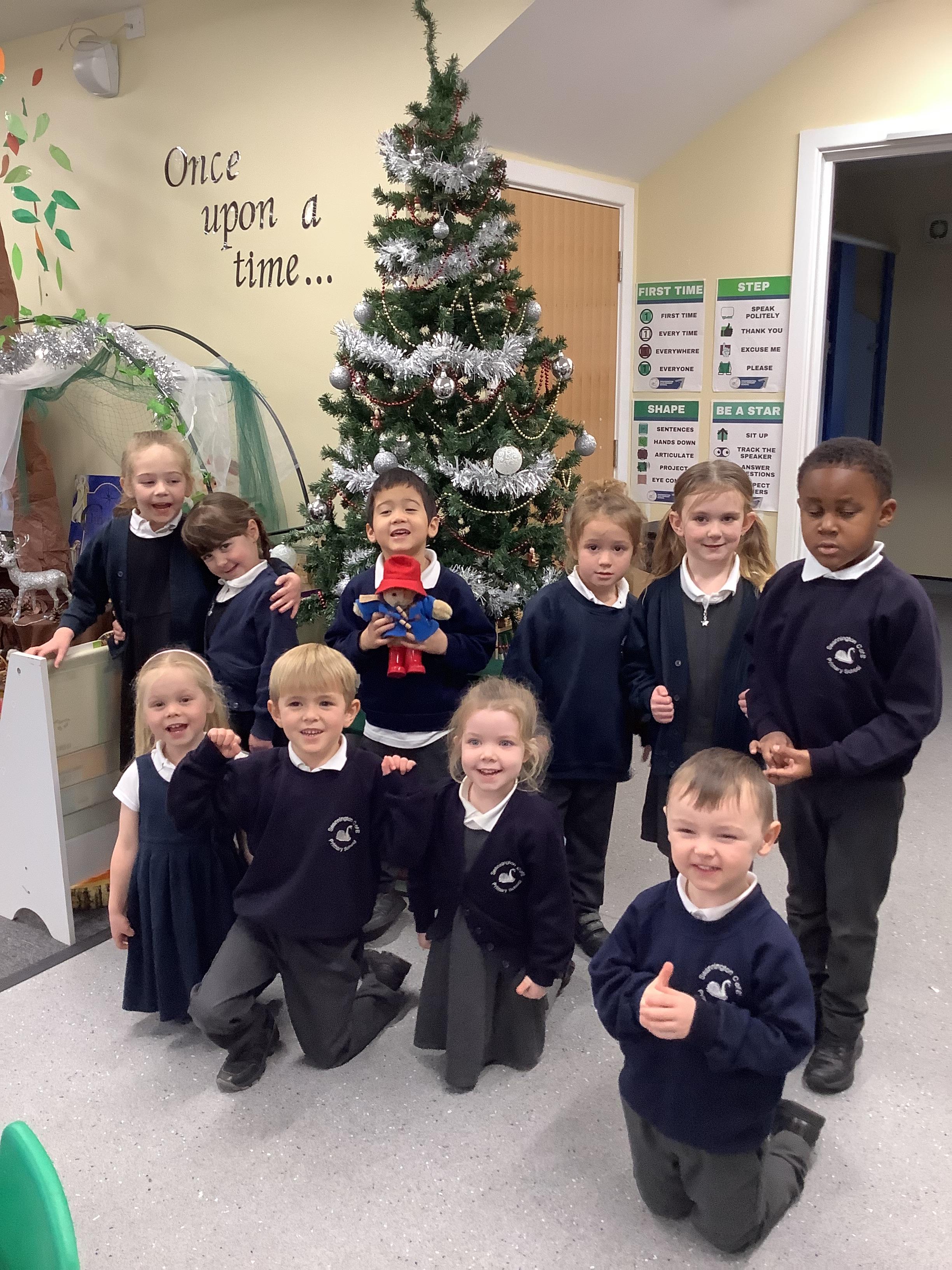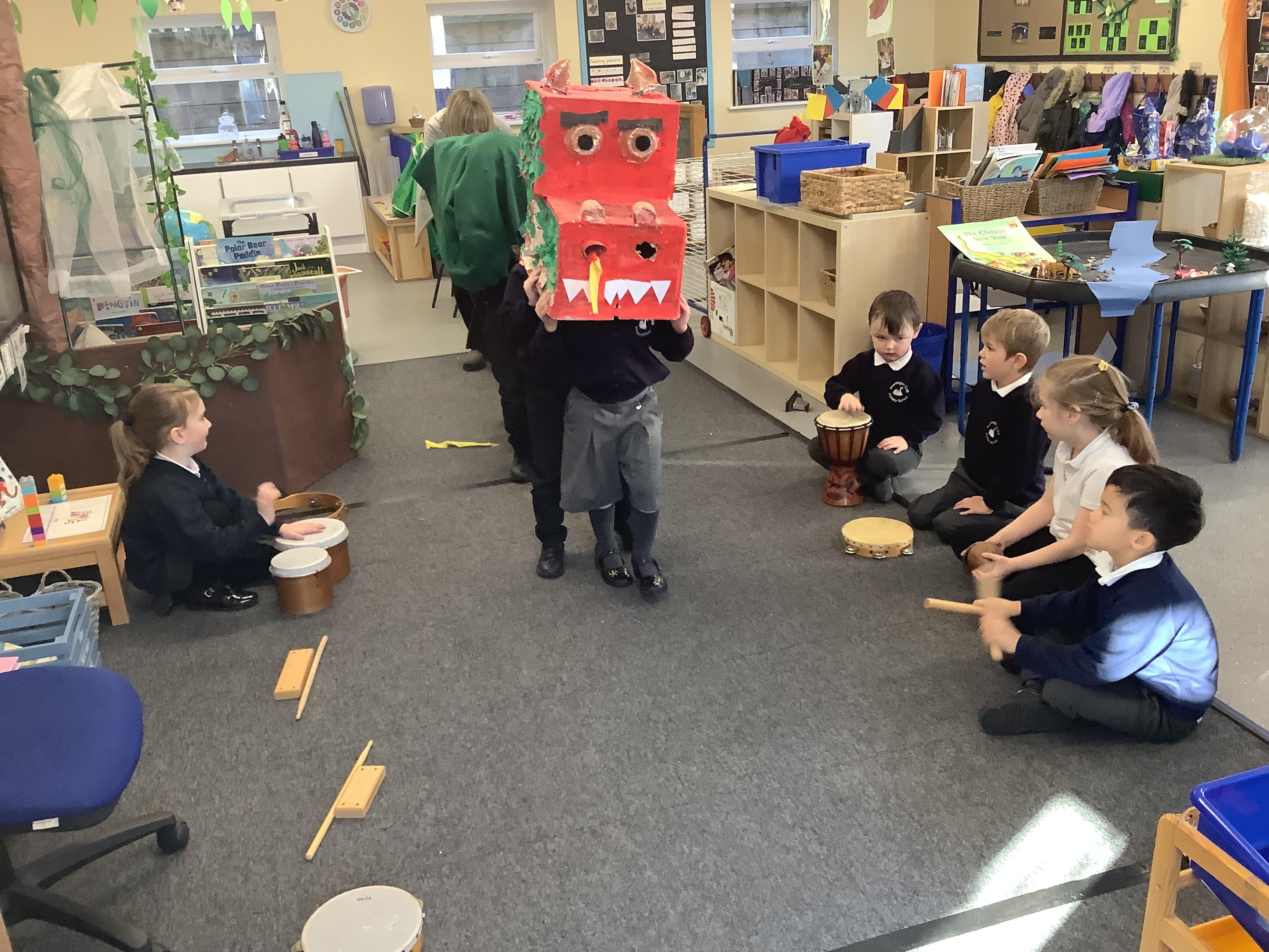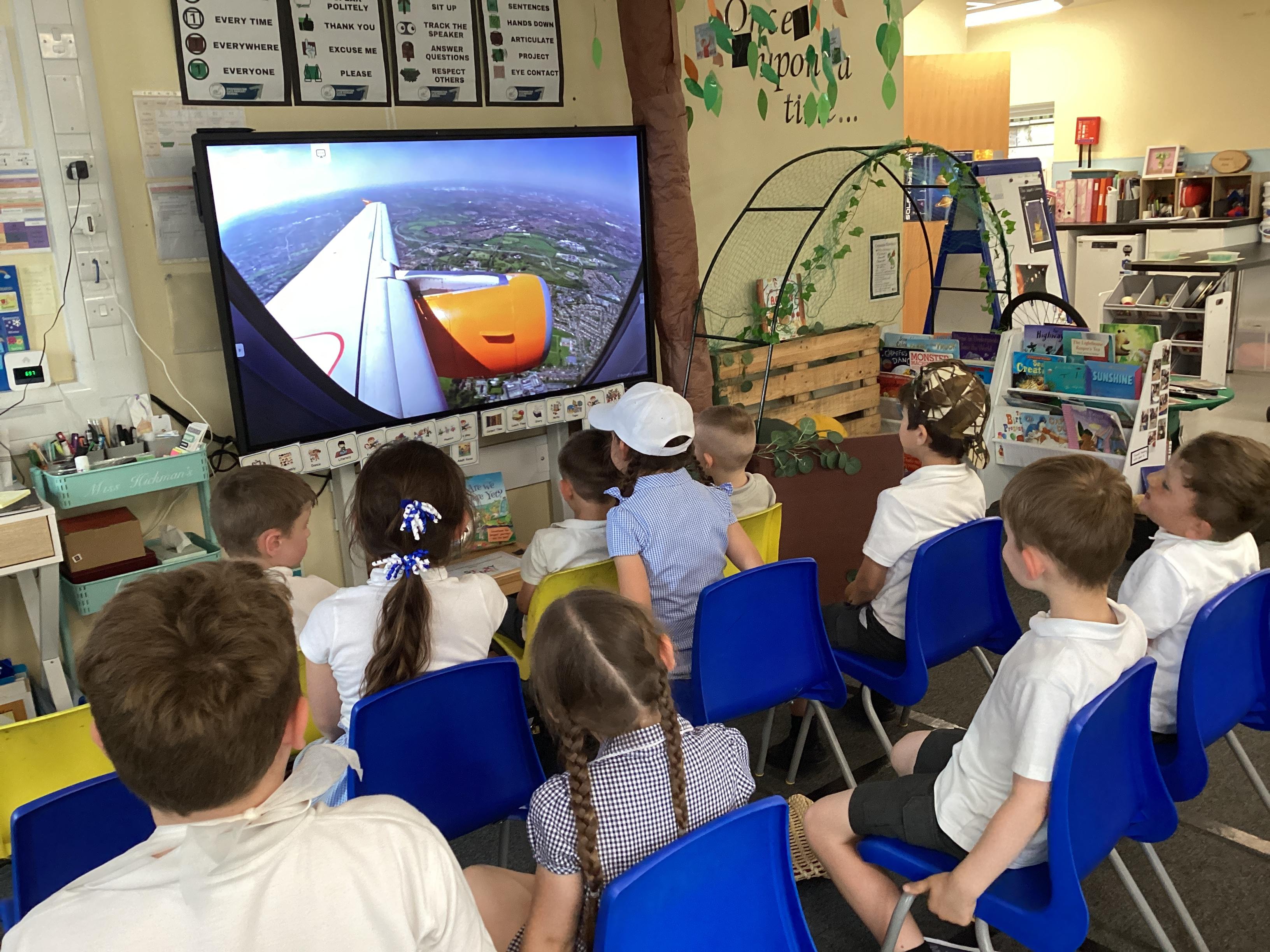 An exciting visit from another EYFS class- February 2024