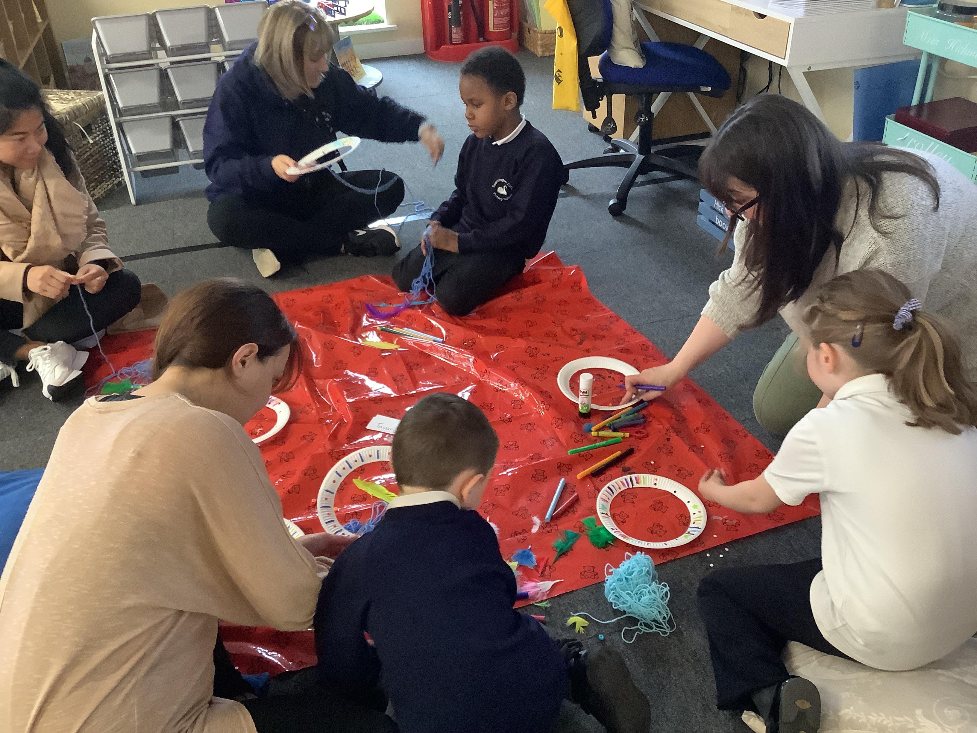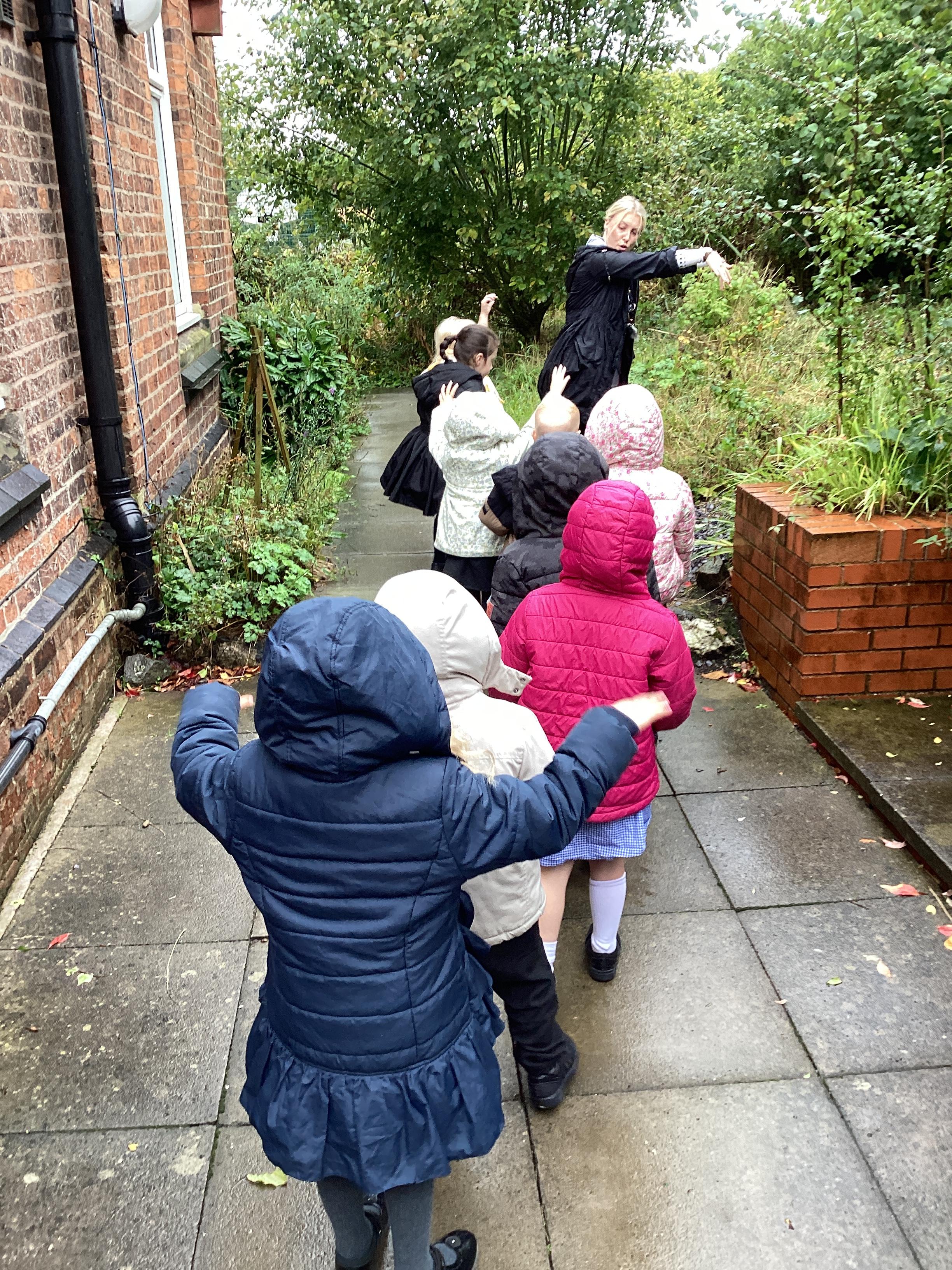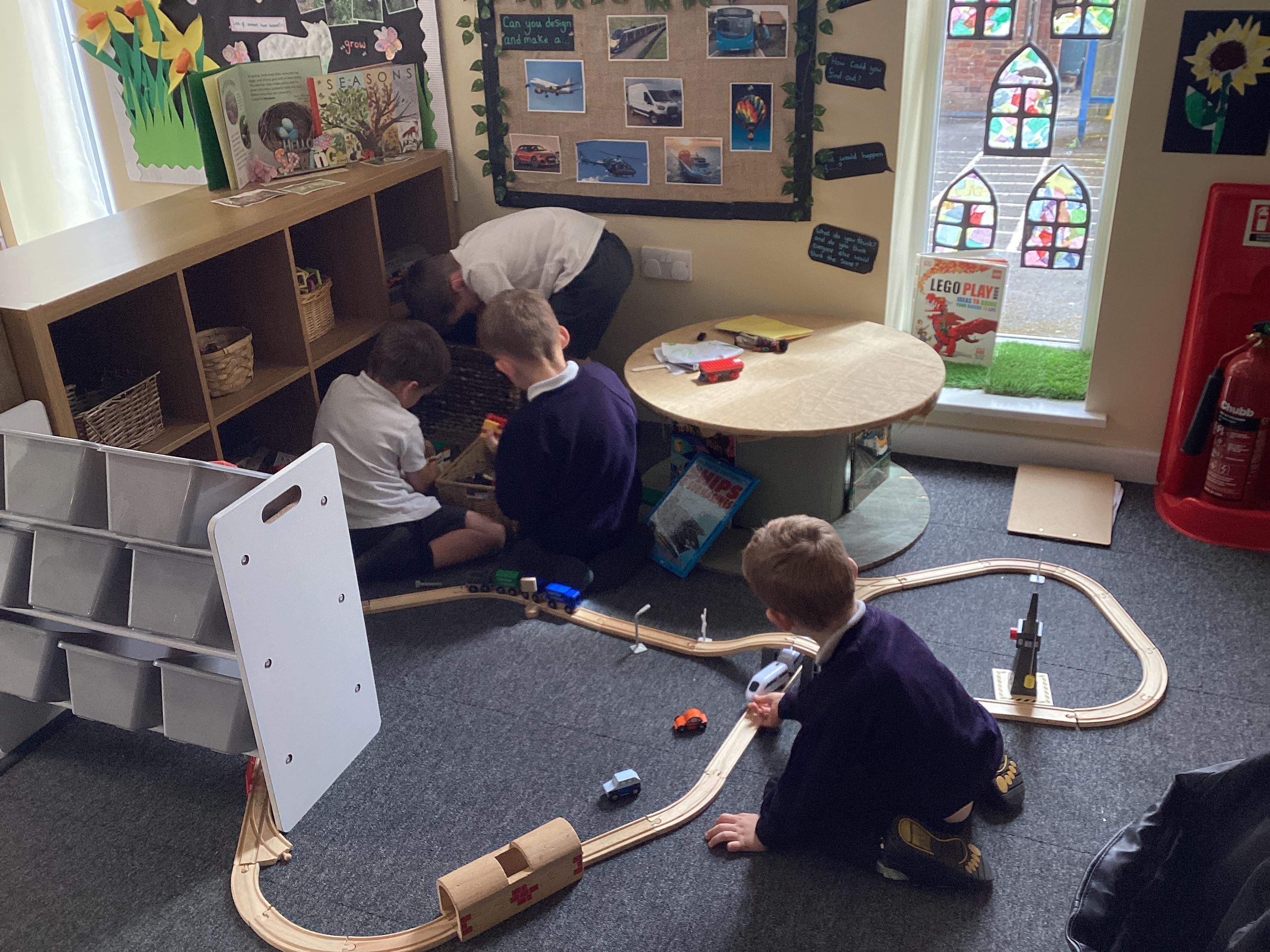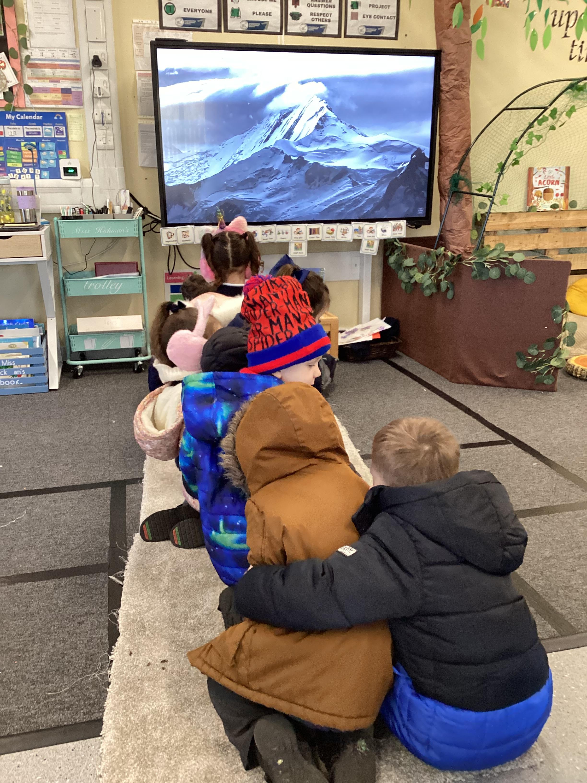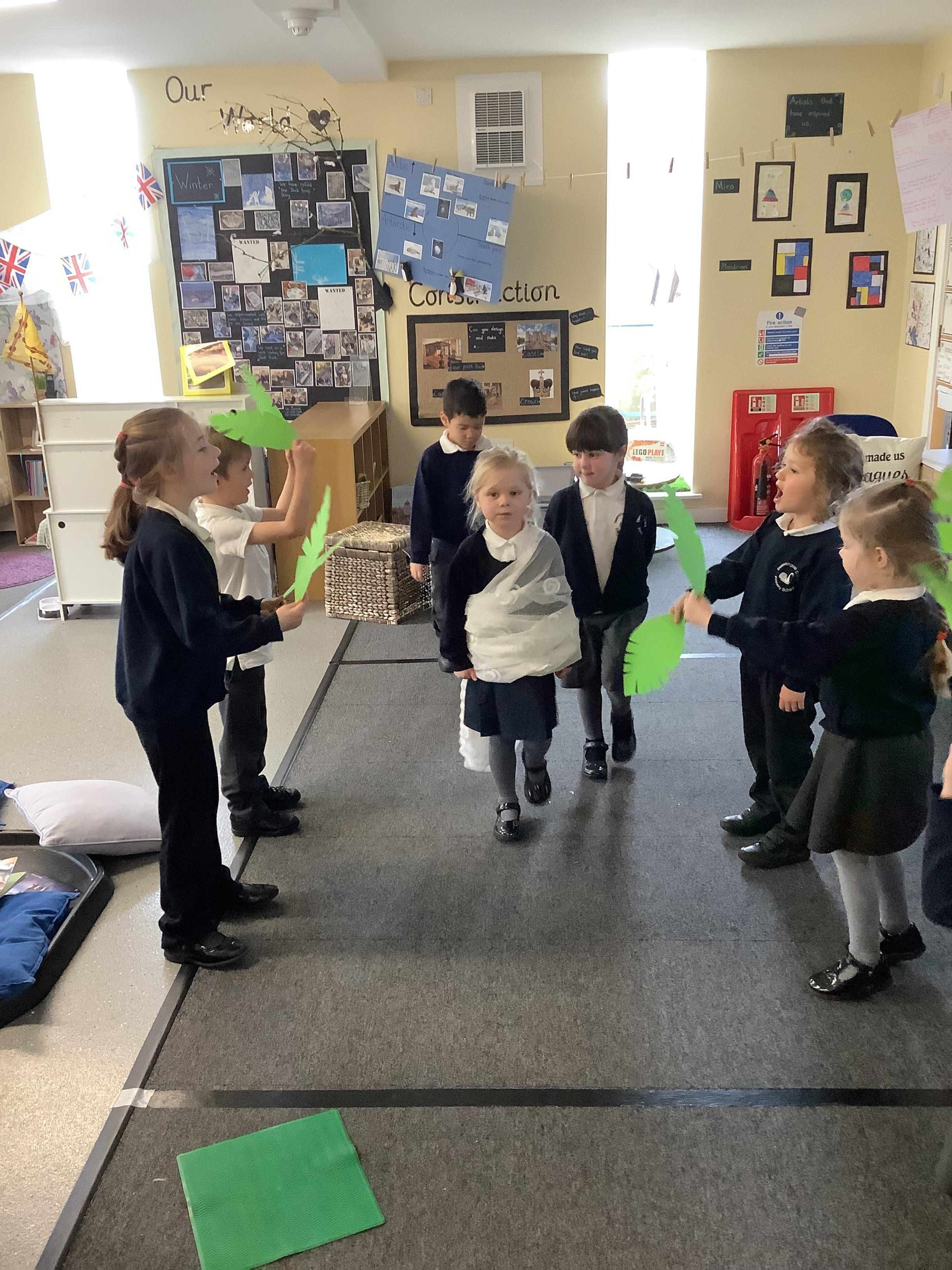An exciting visit from another EYFS class- February 2024