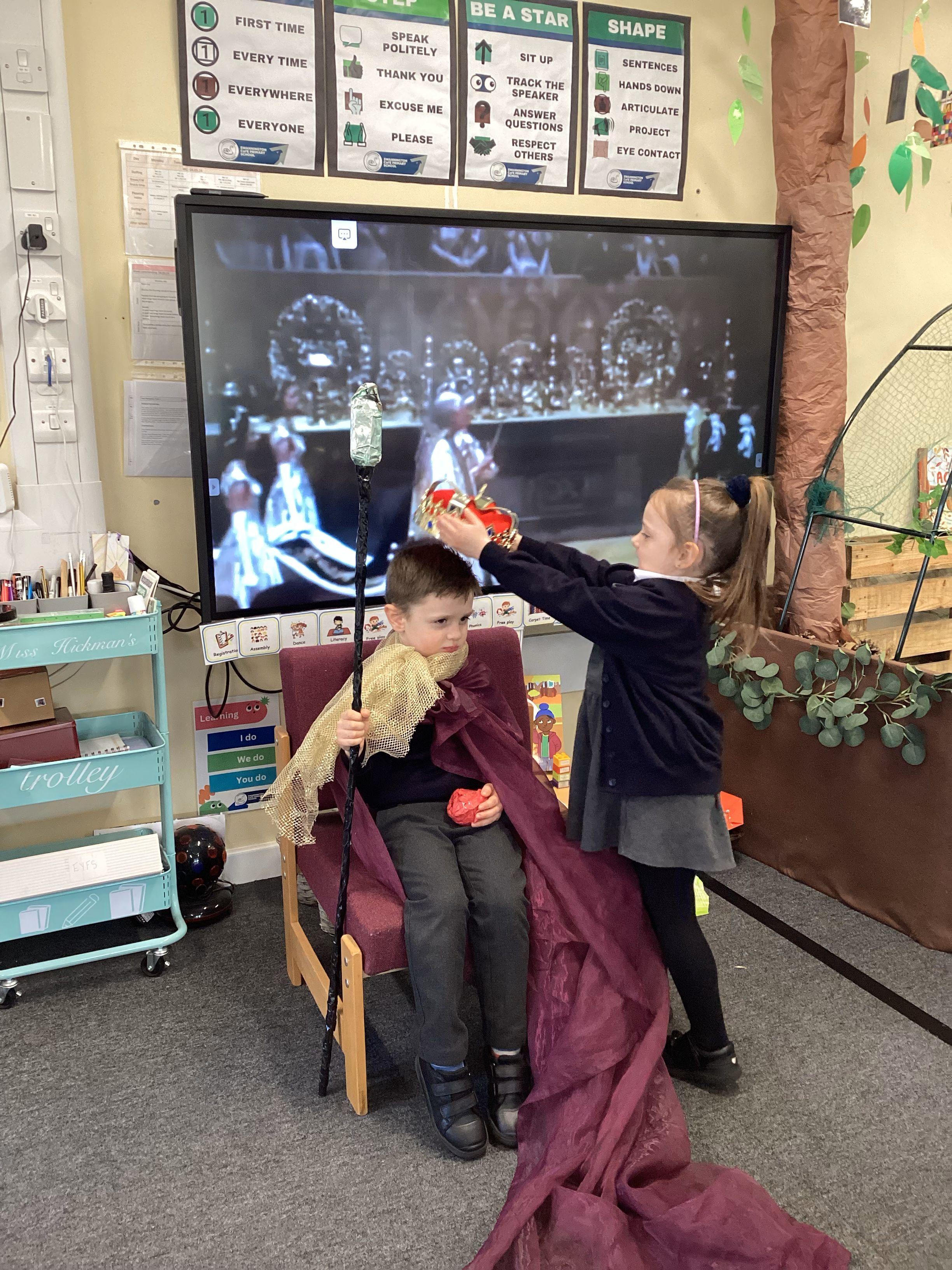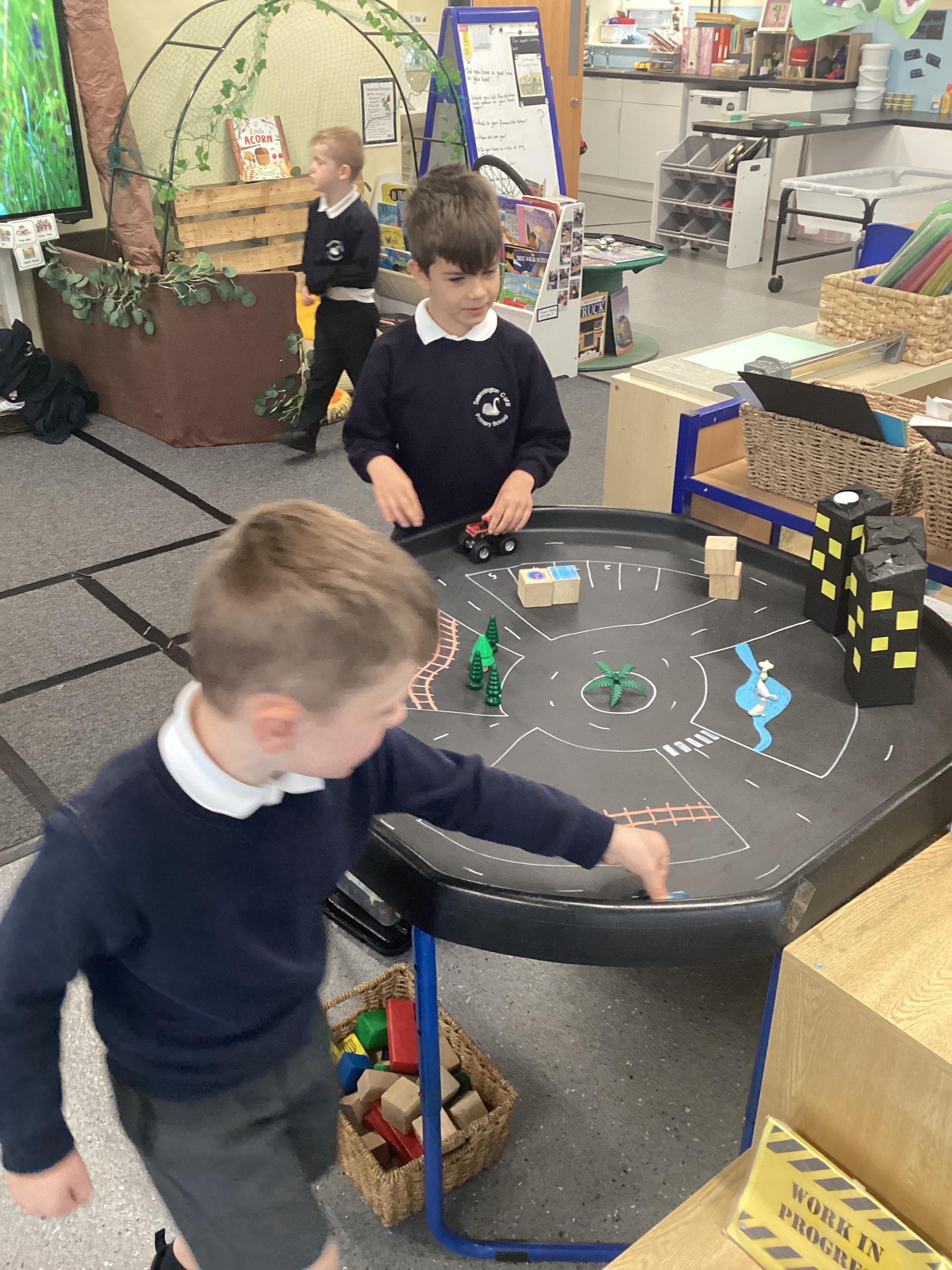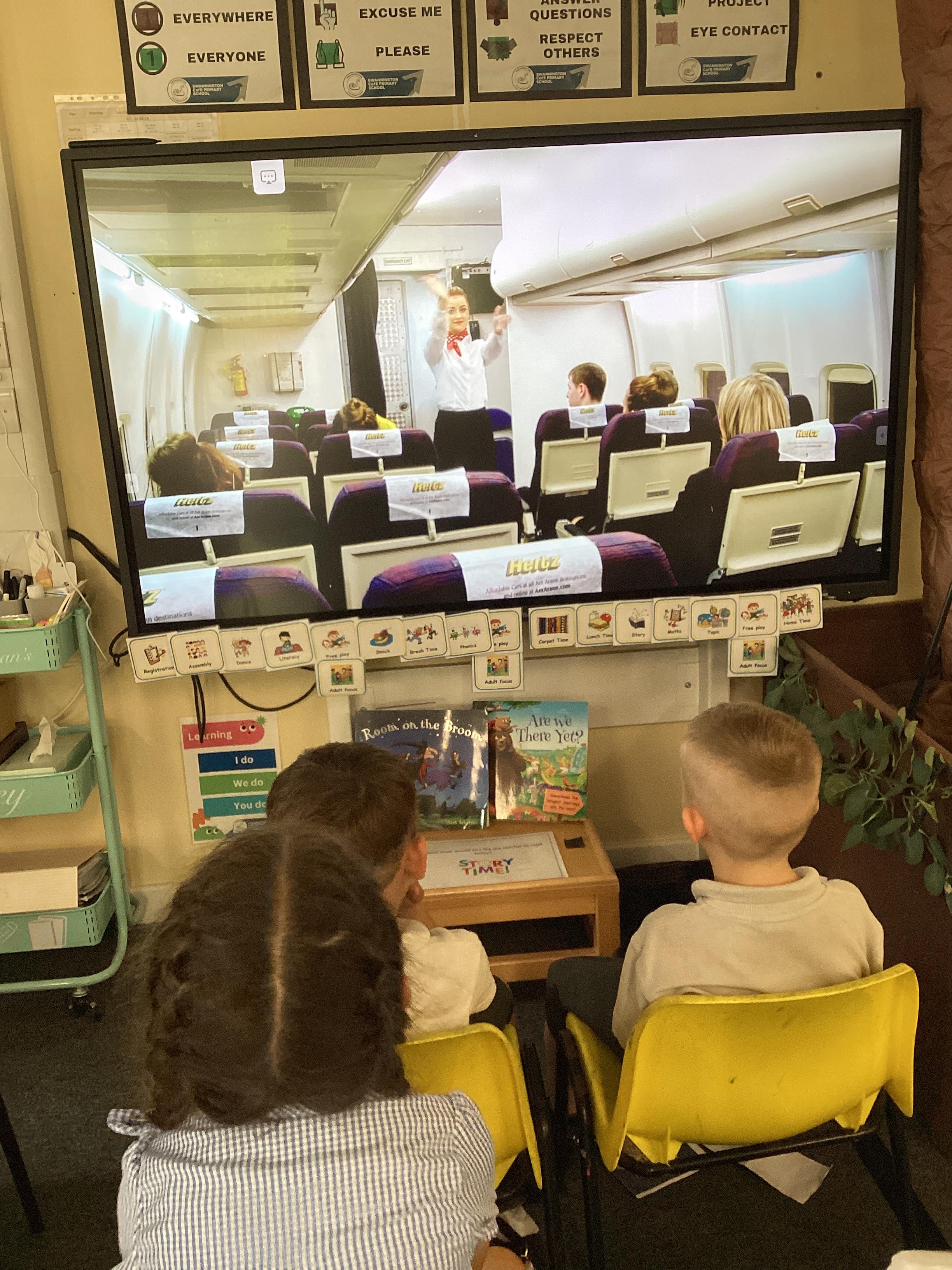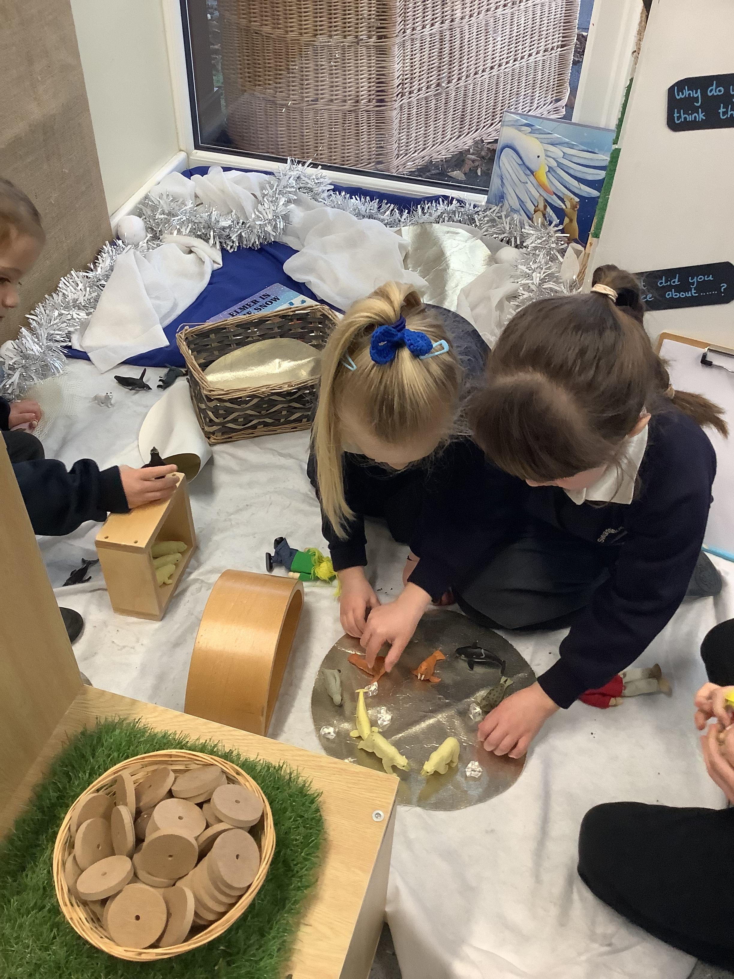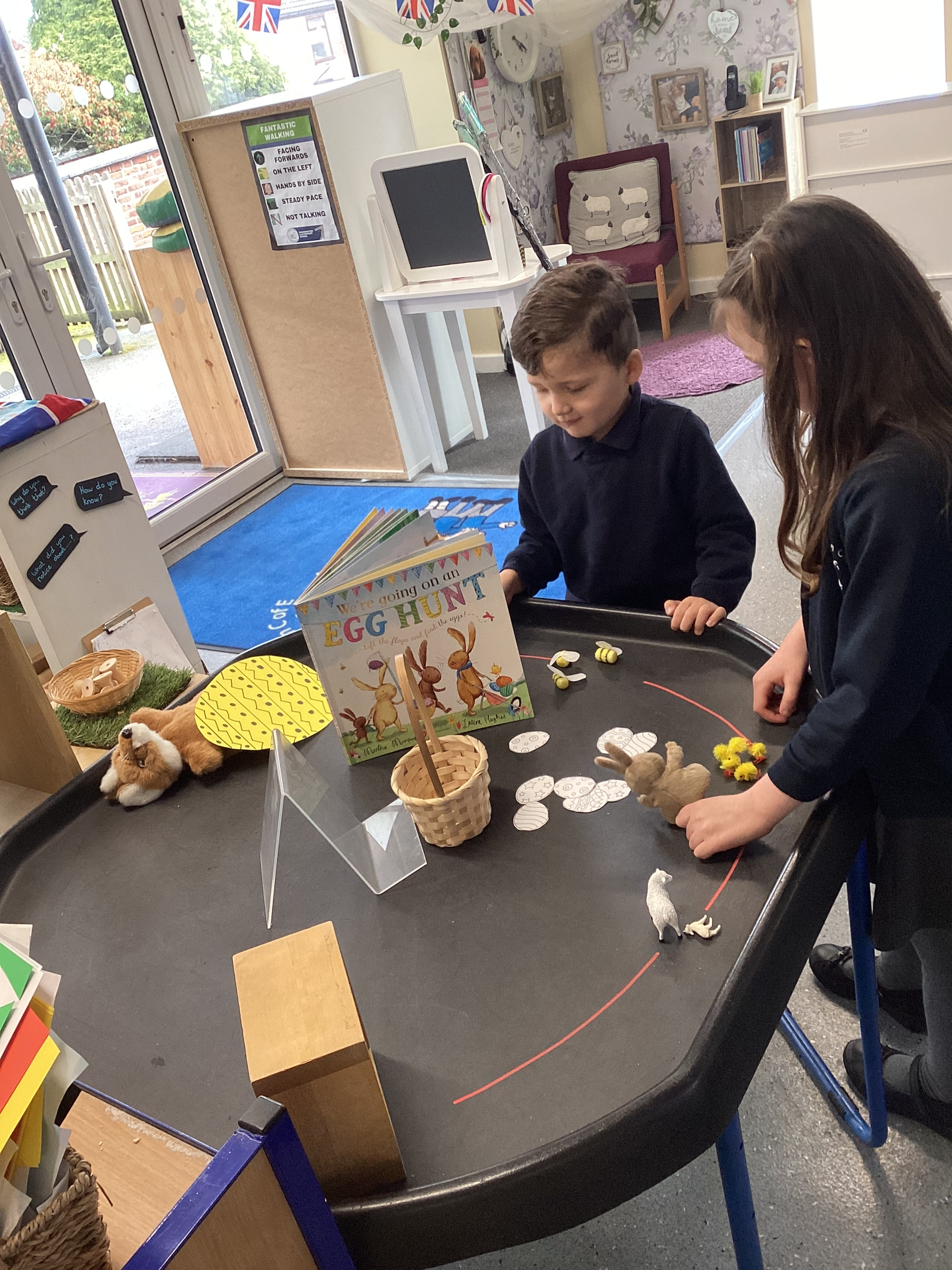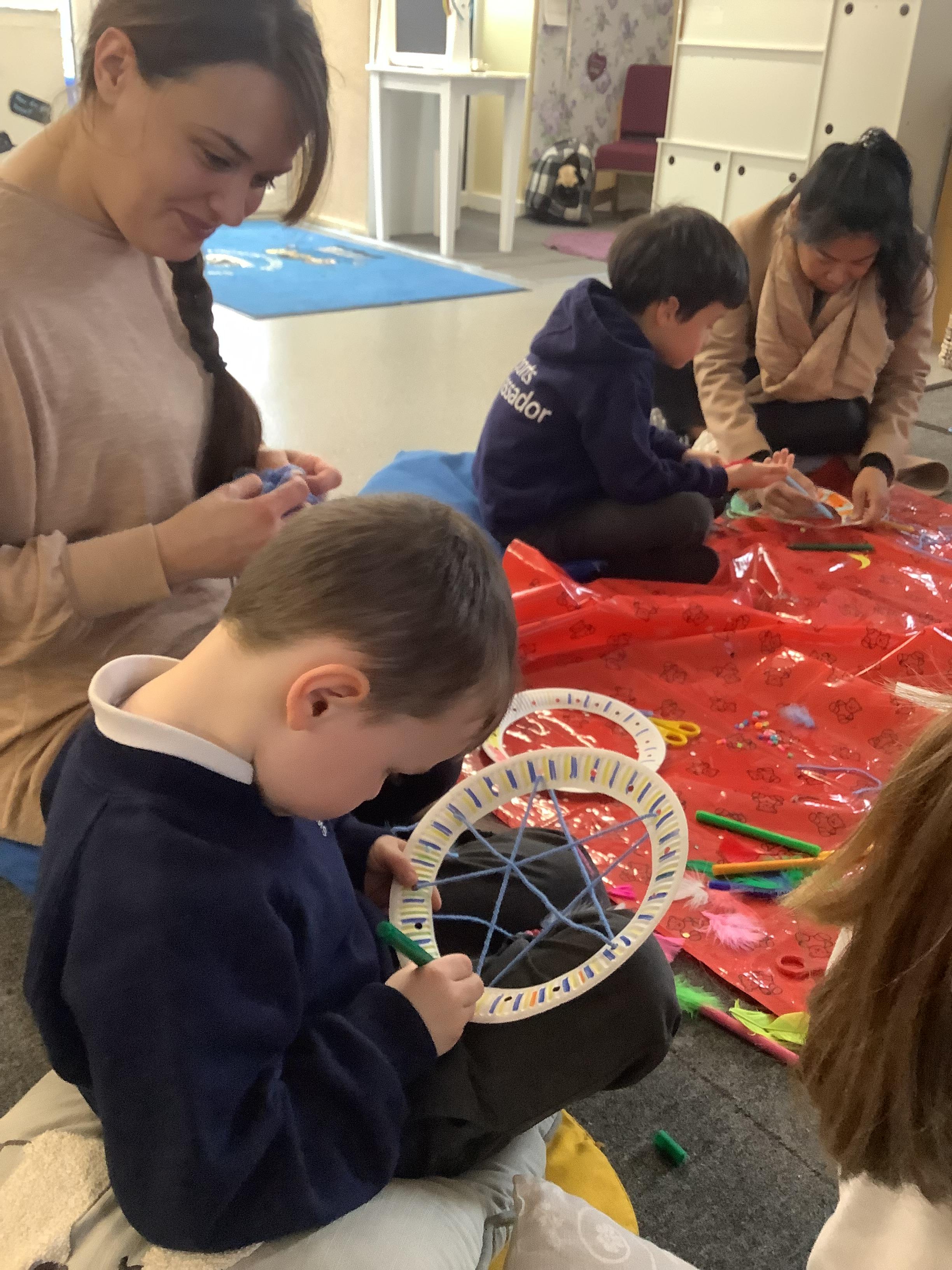 An exciting visit from another EYFS class- February 2024