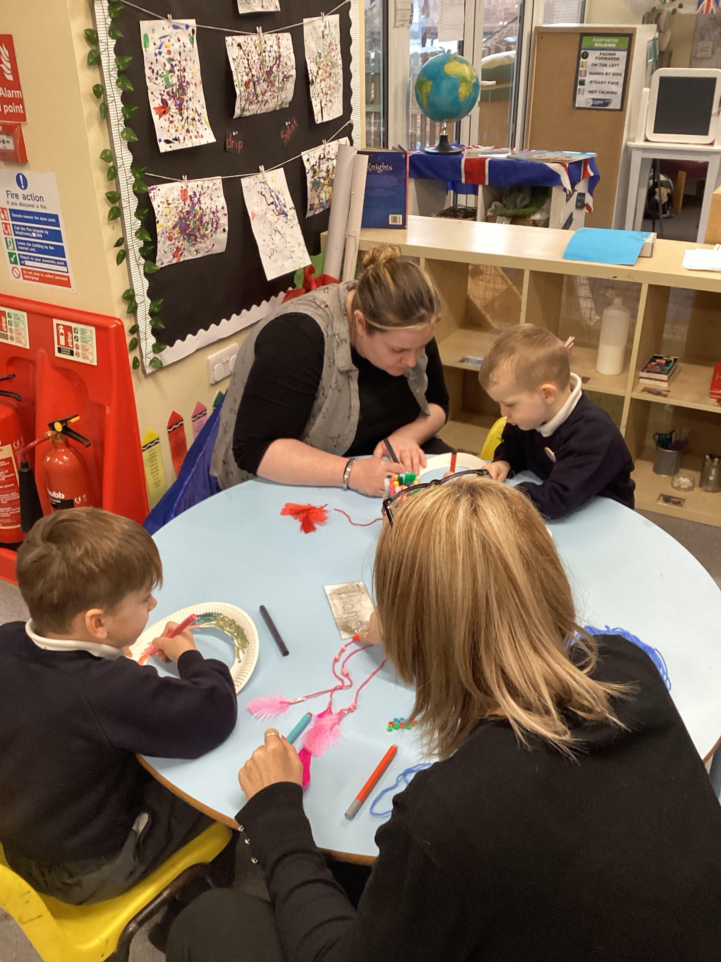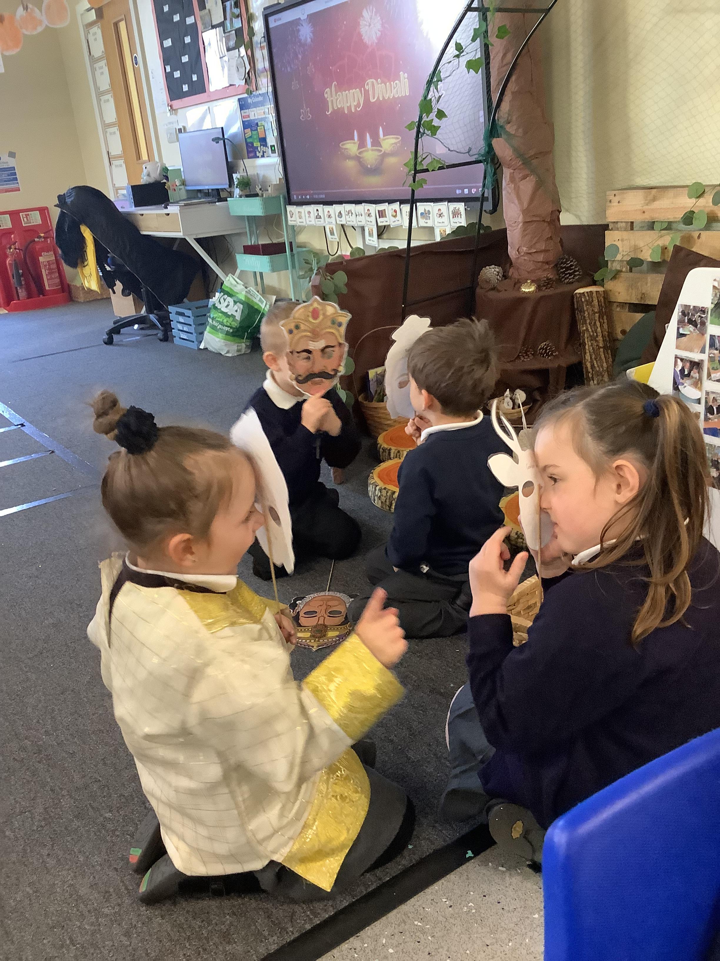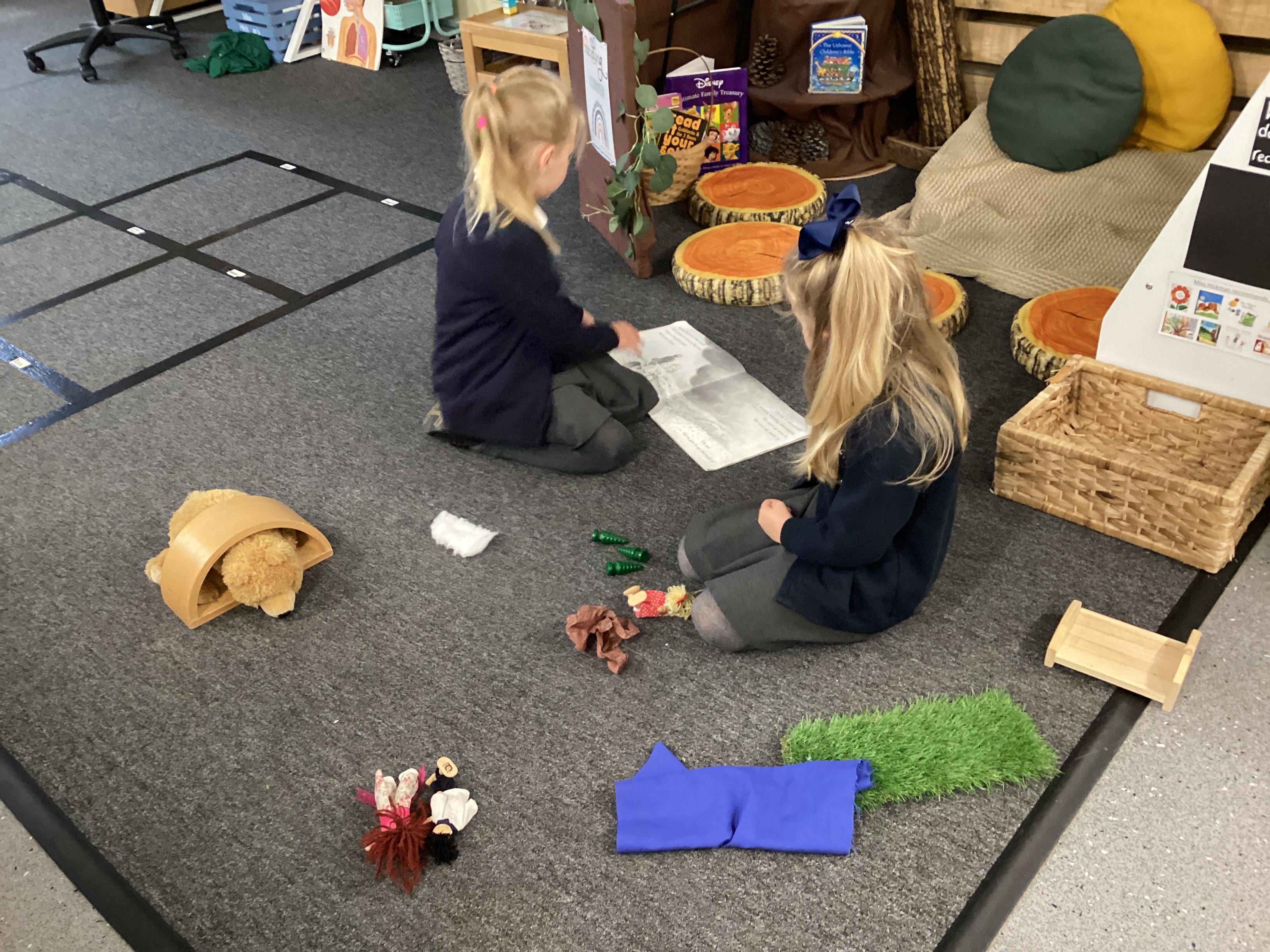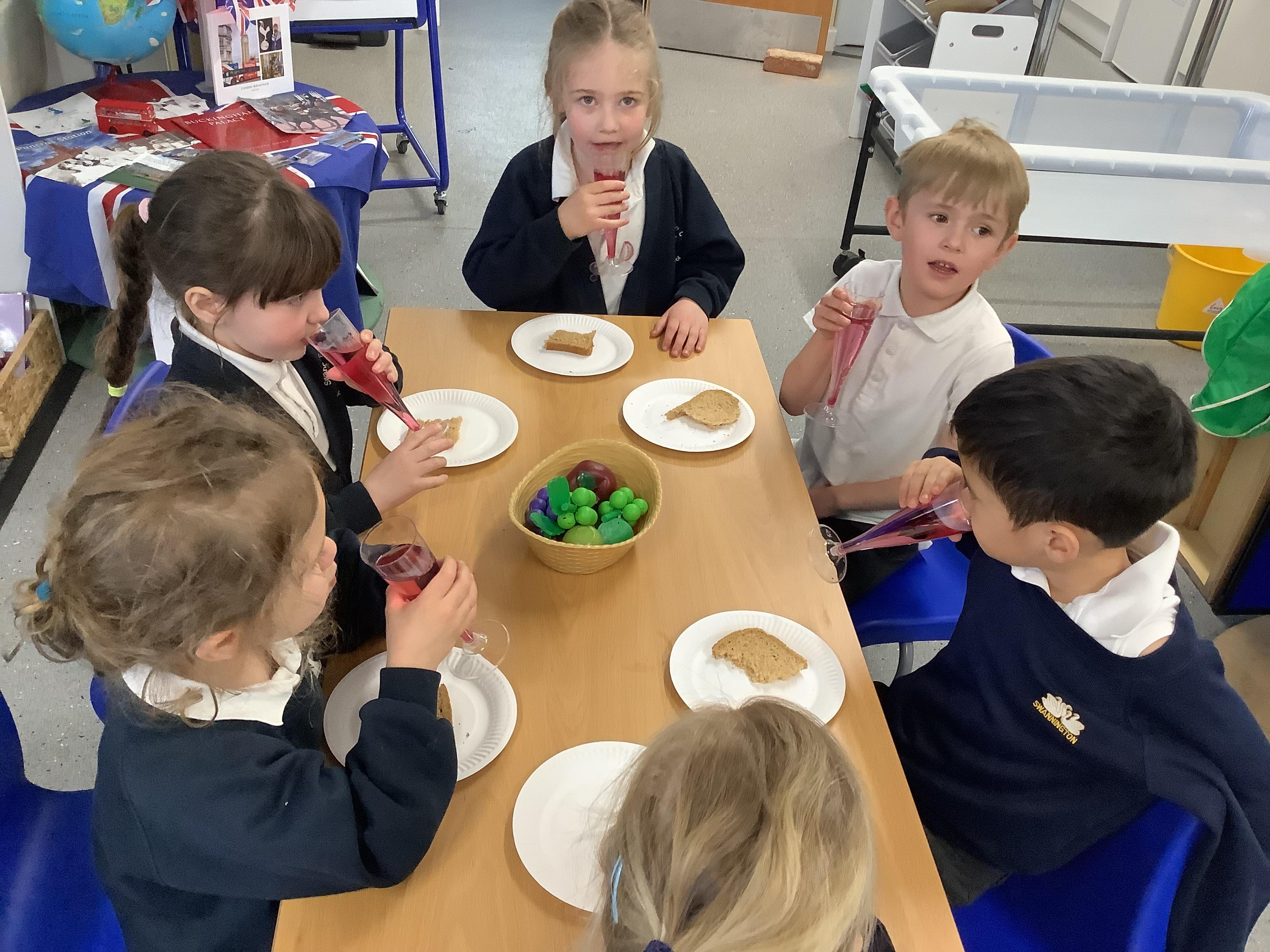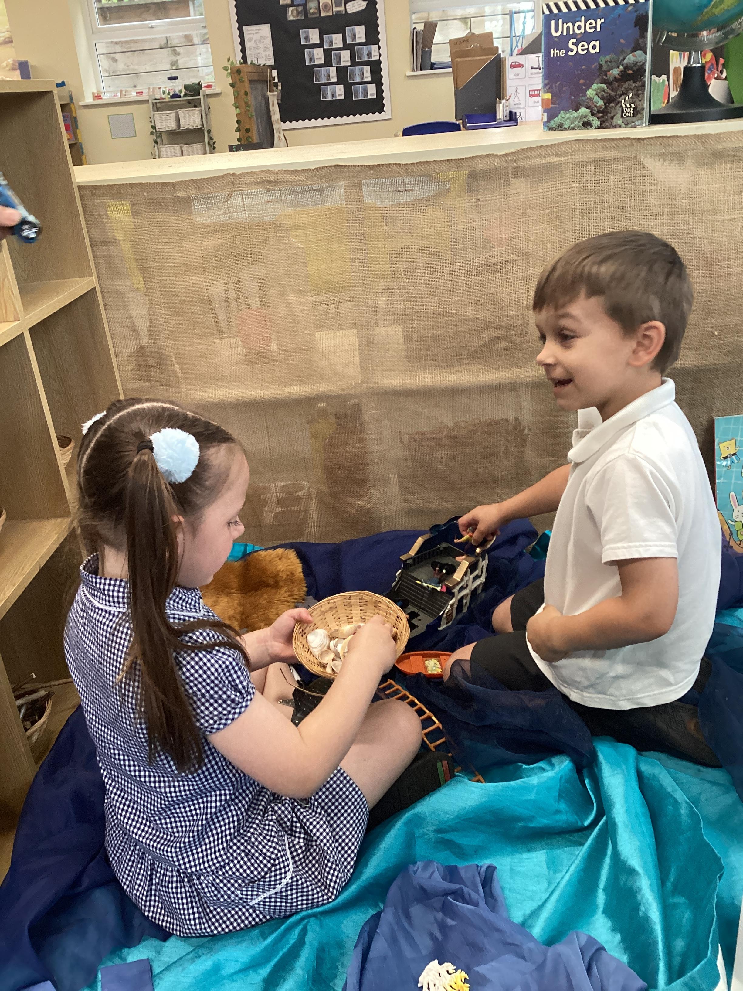 An exciting visit from another EYFS class- February 2024