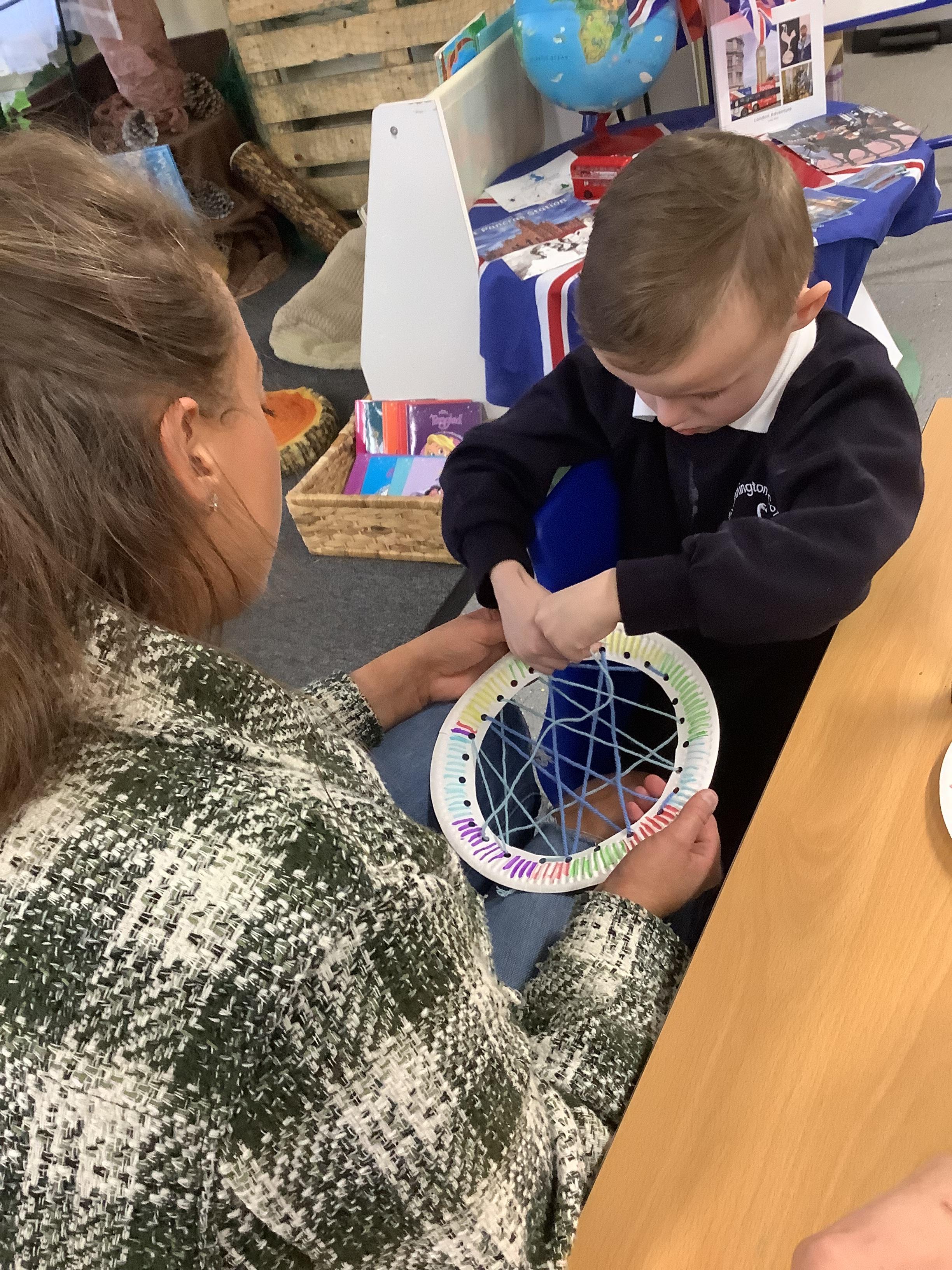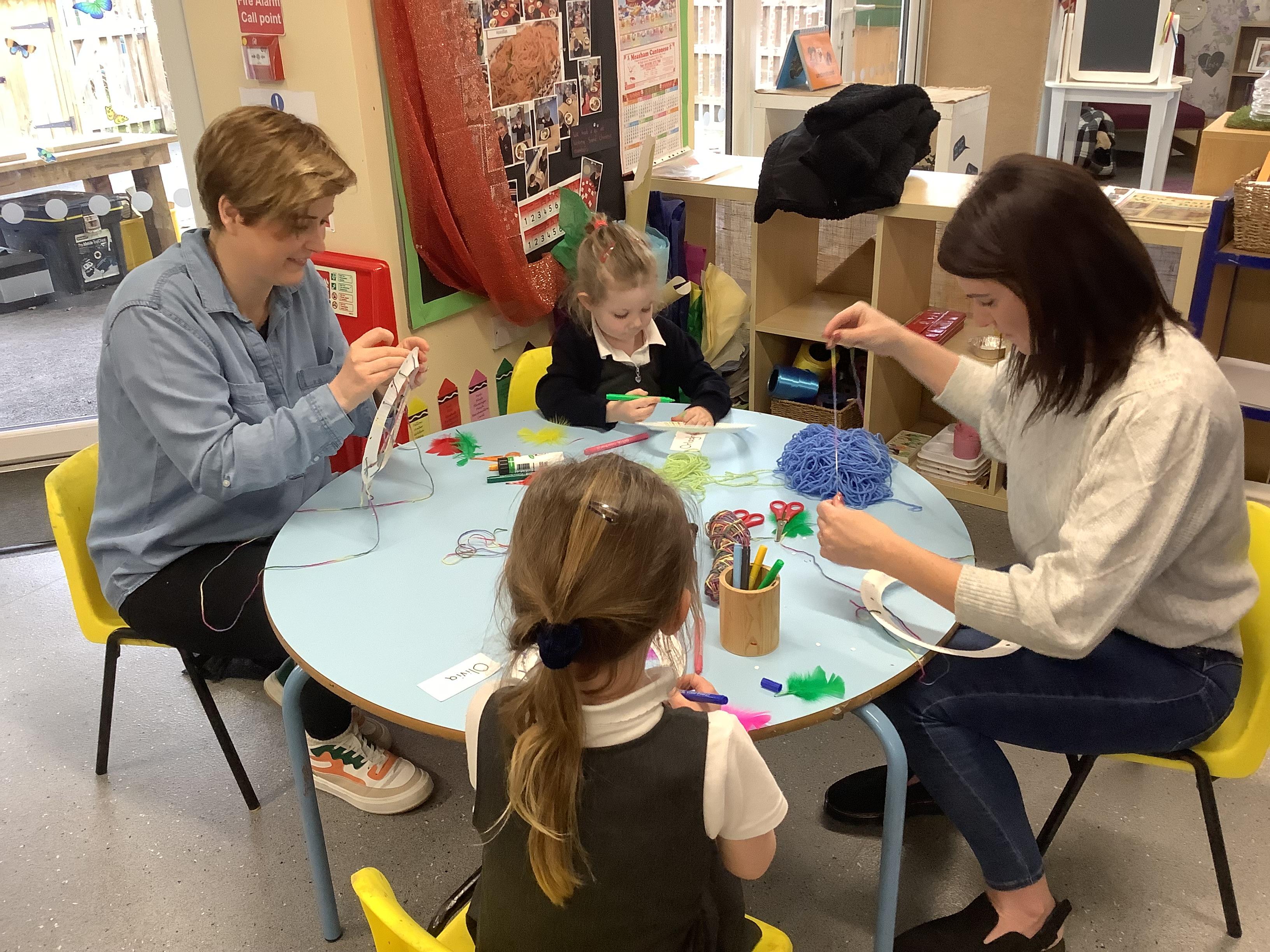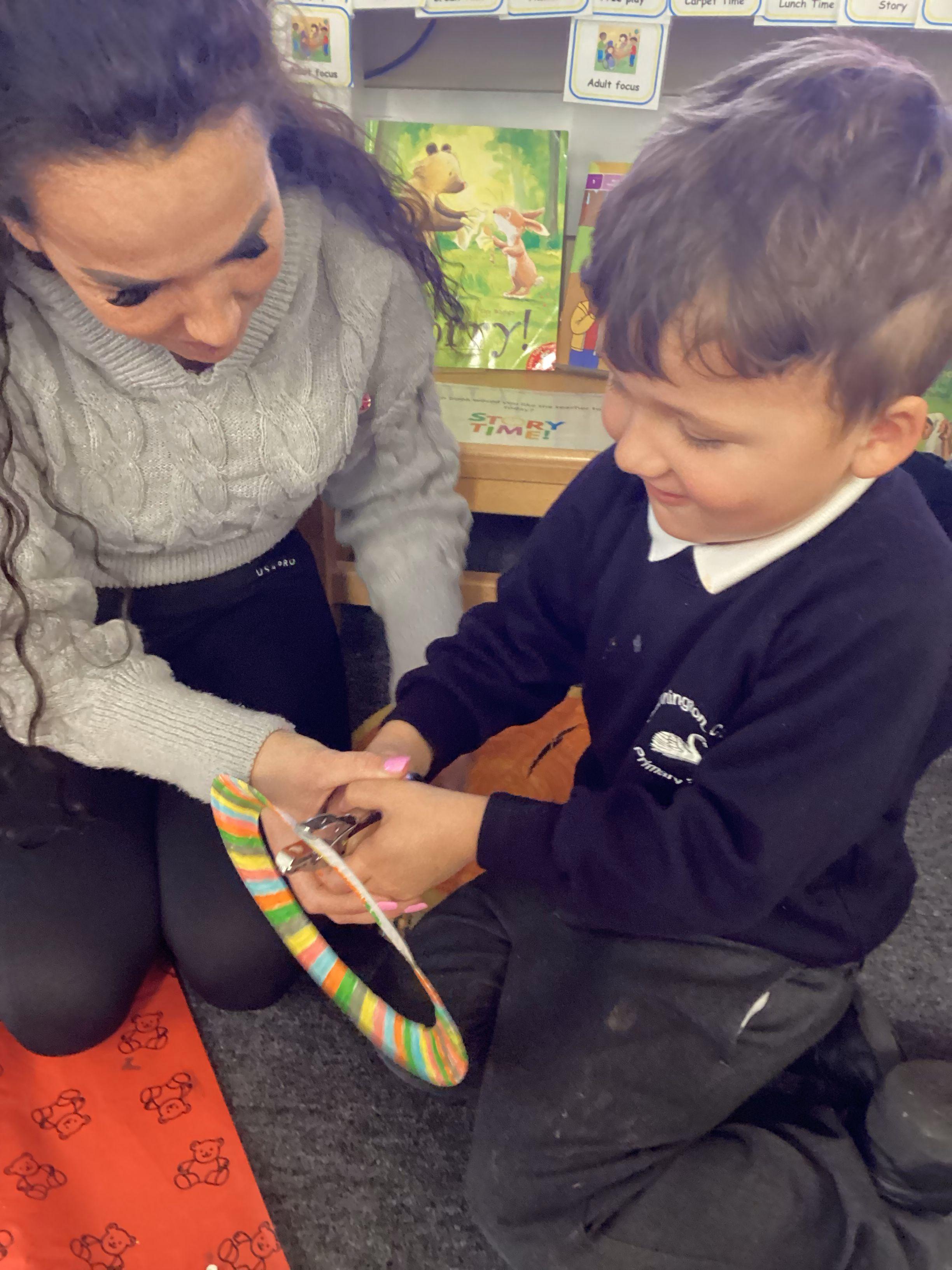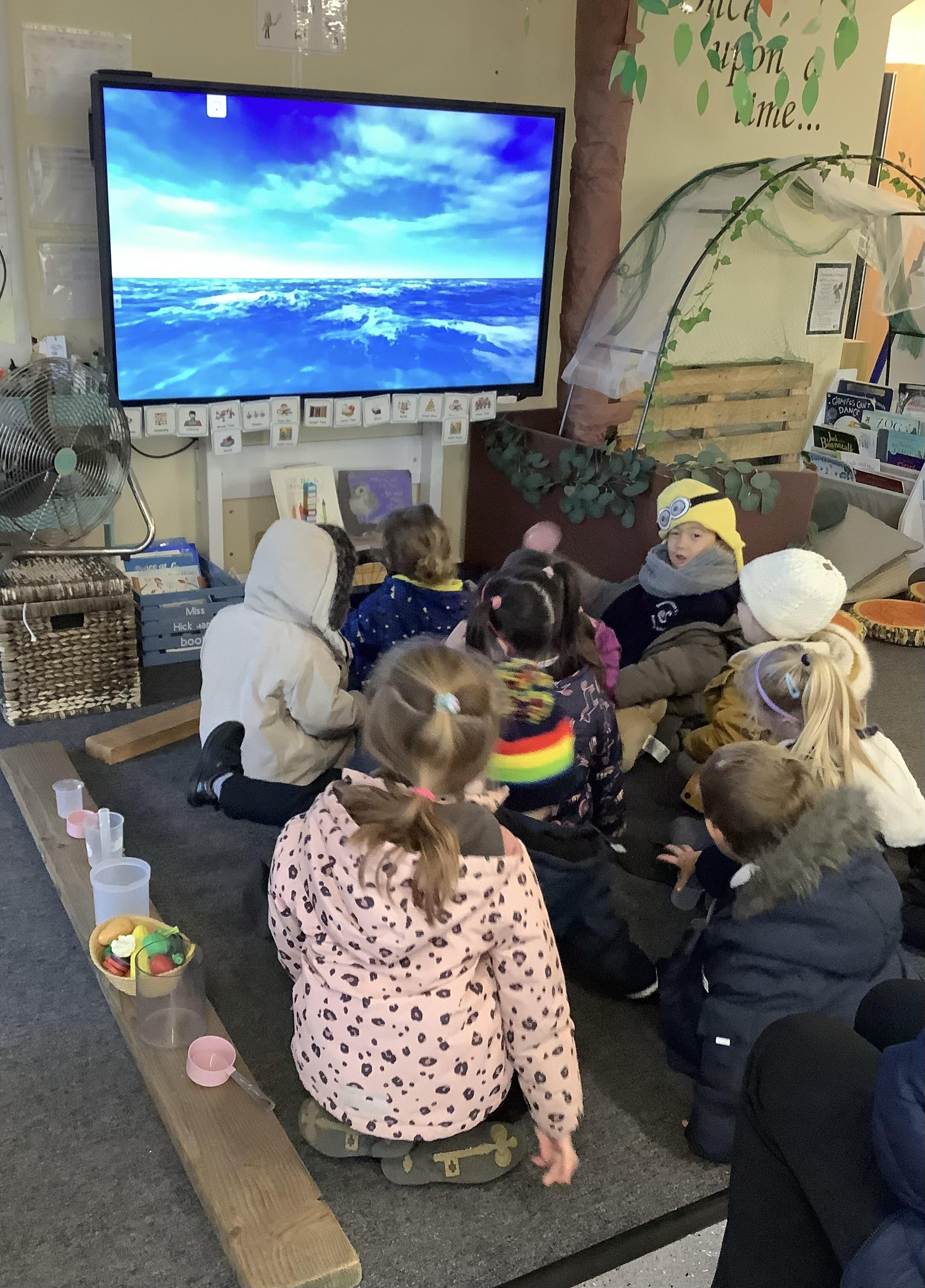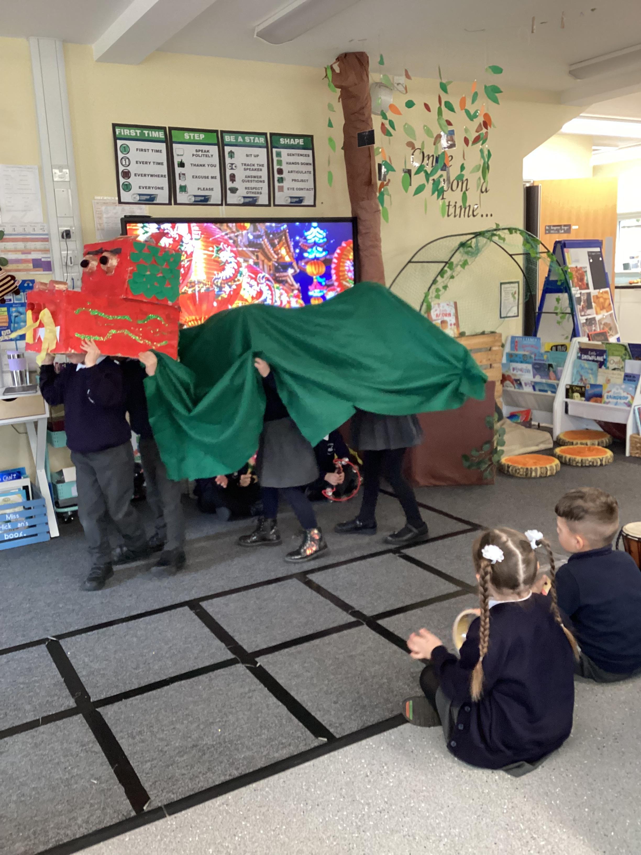 An exciting visit from another EYFS class- February 2024