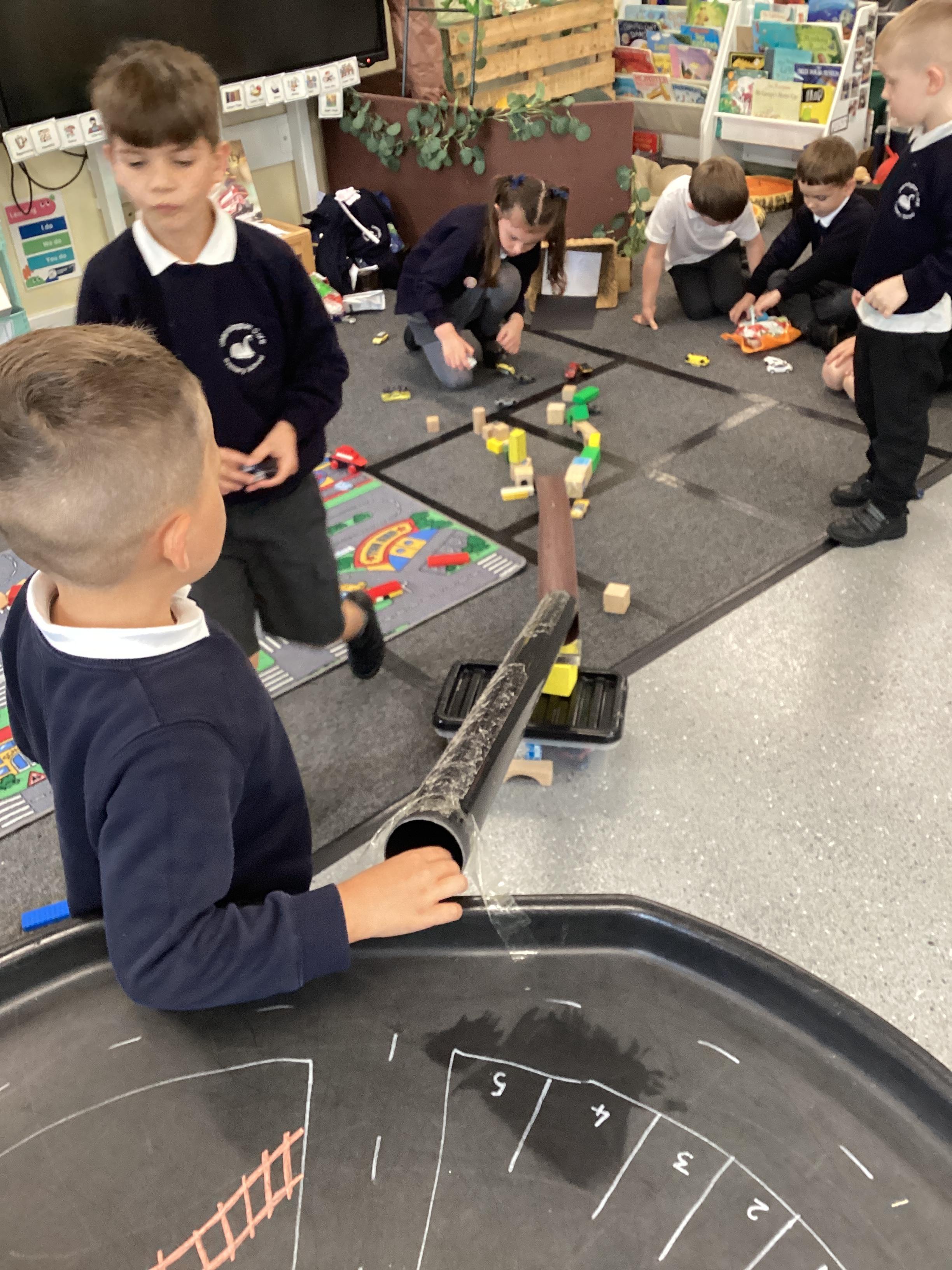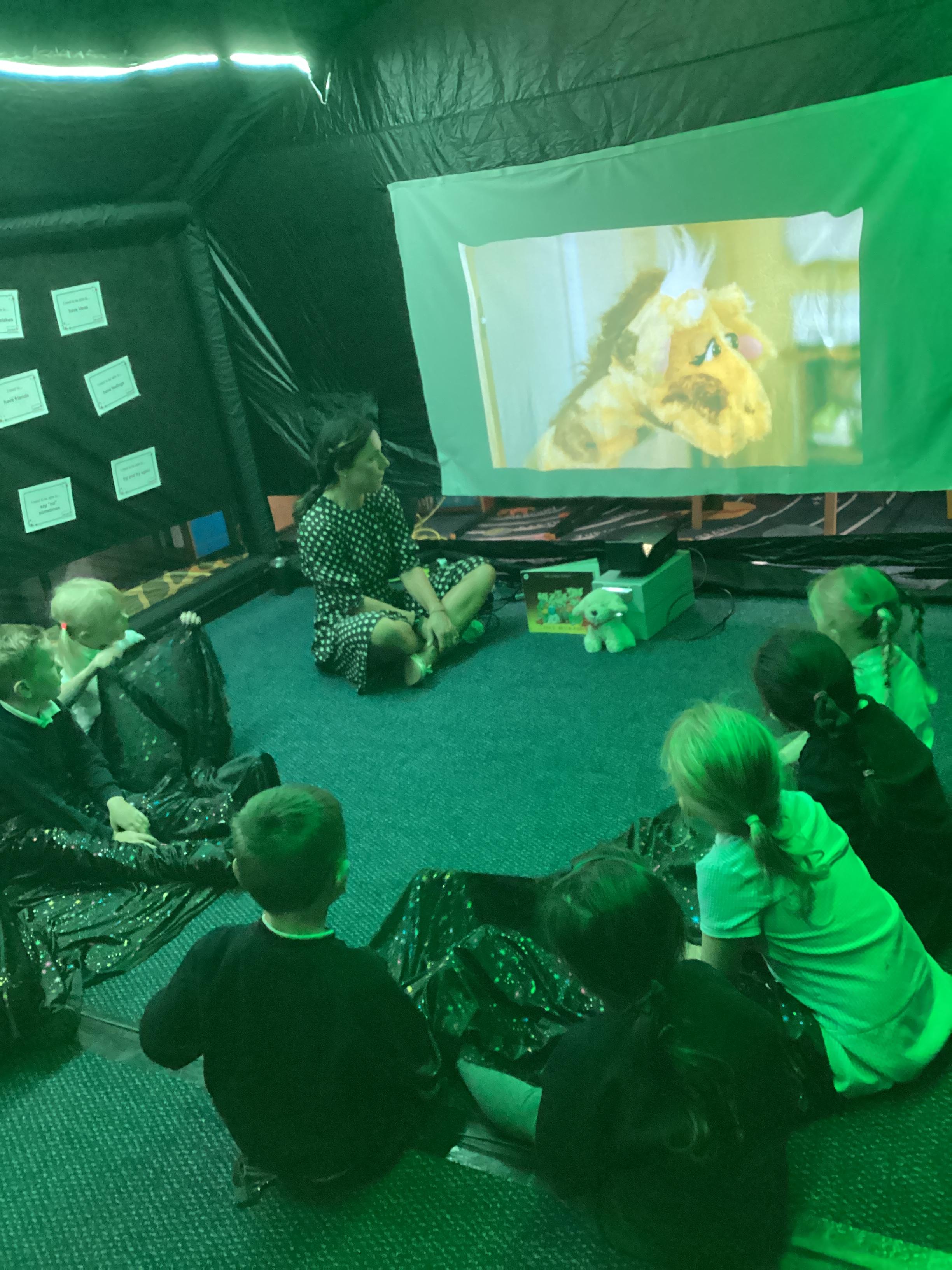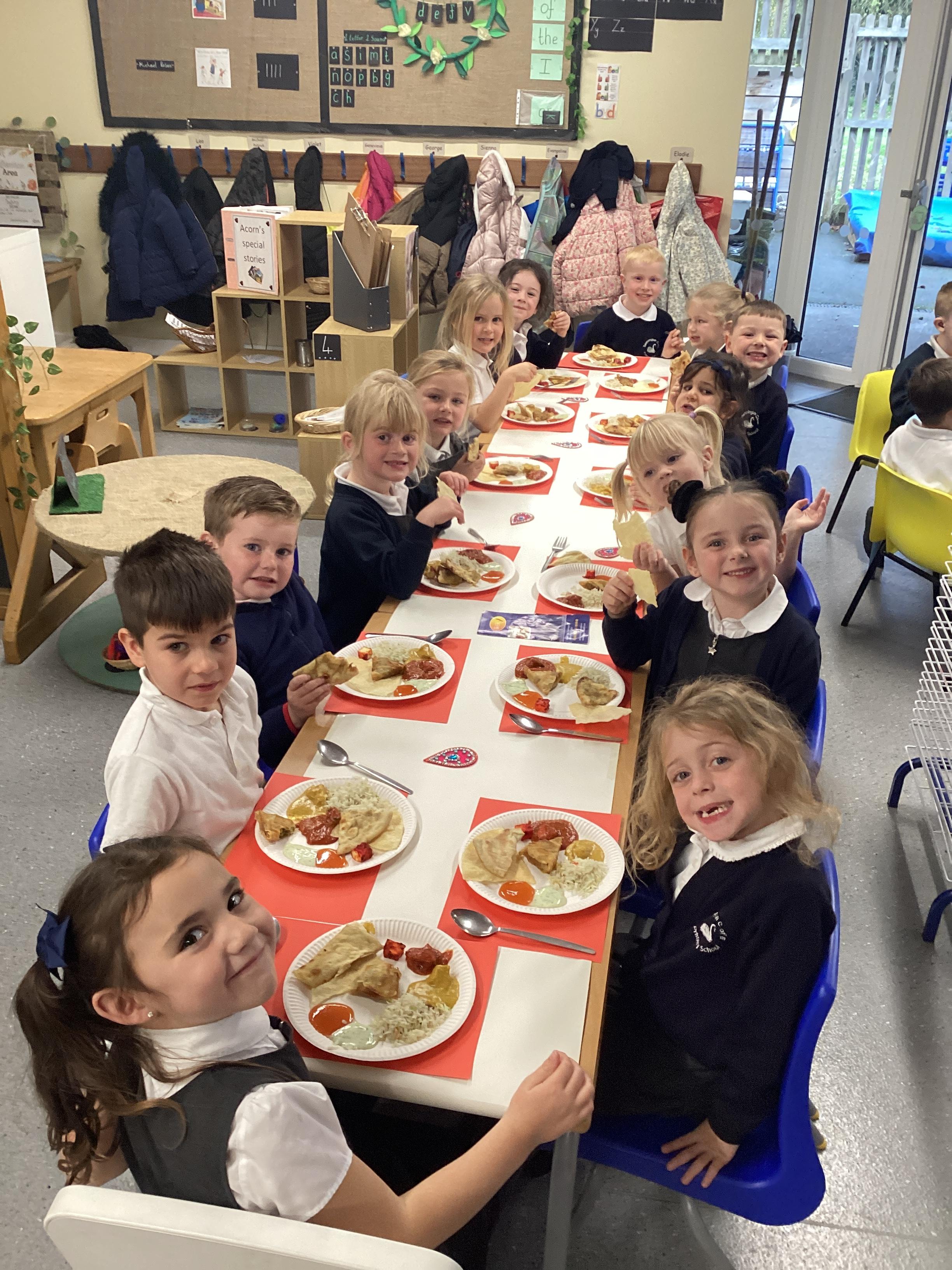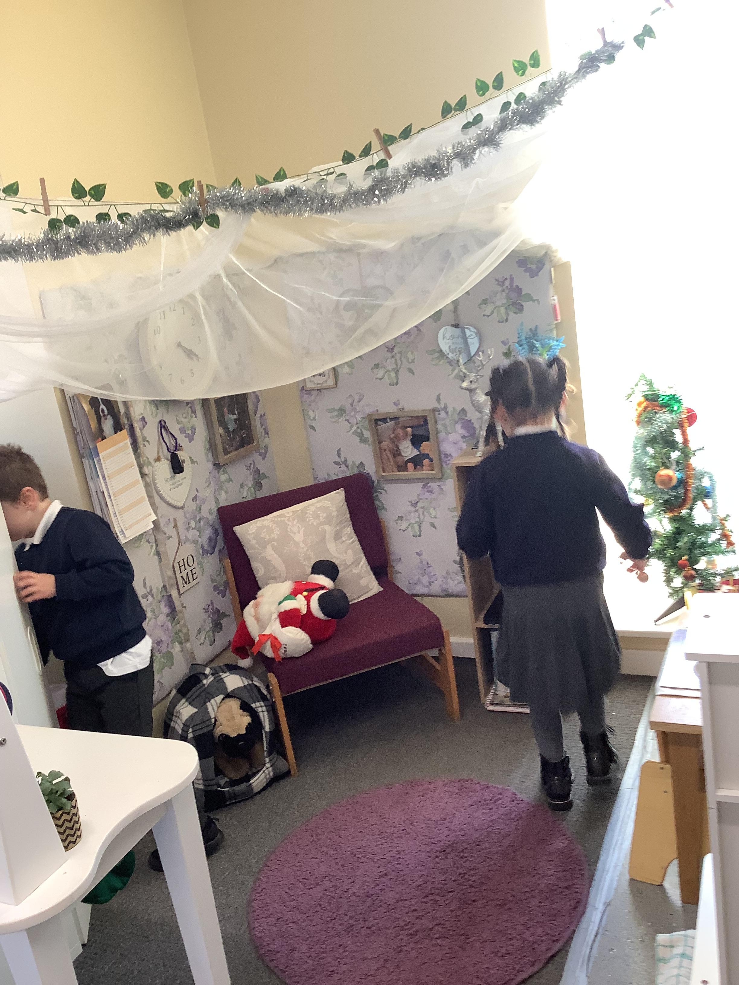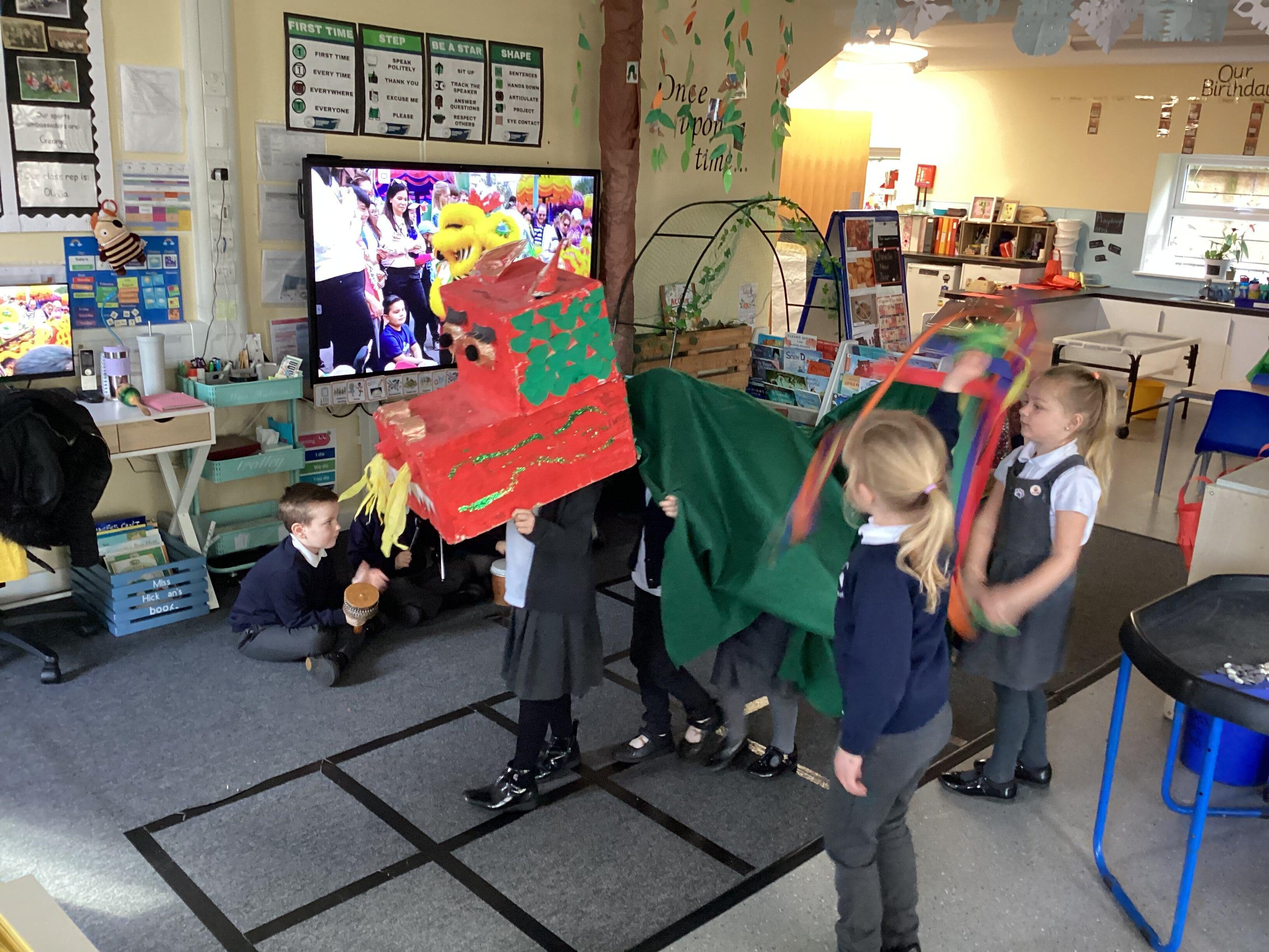 An exciting visit from another EYFS class- February 2024