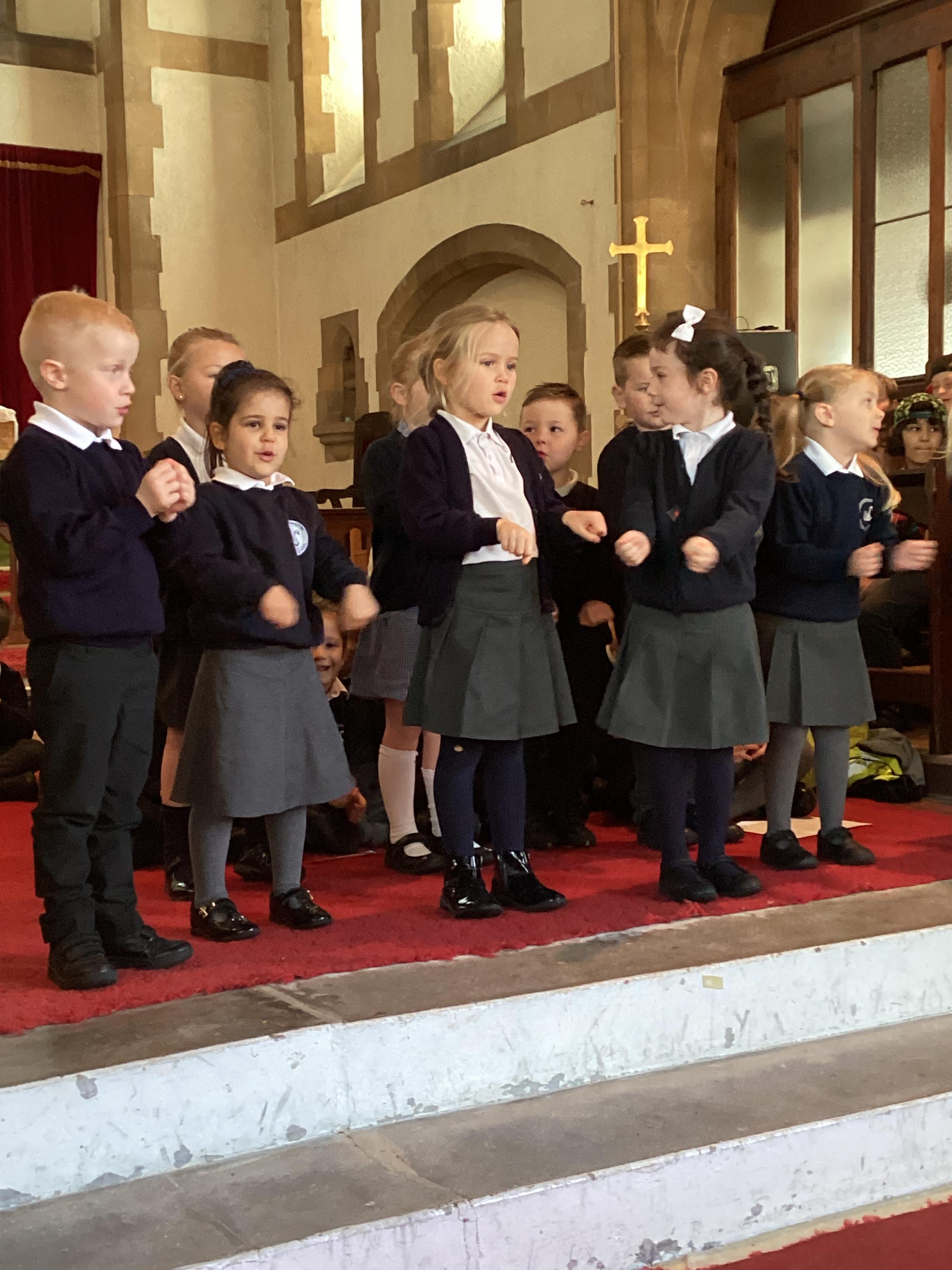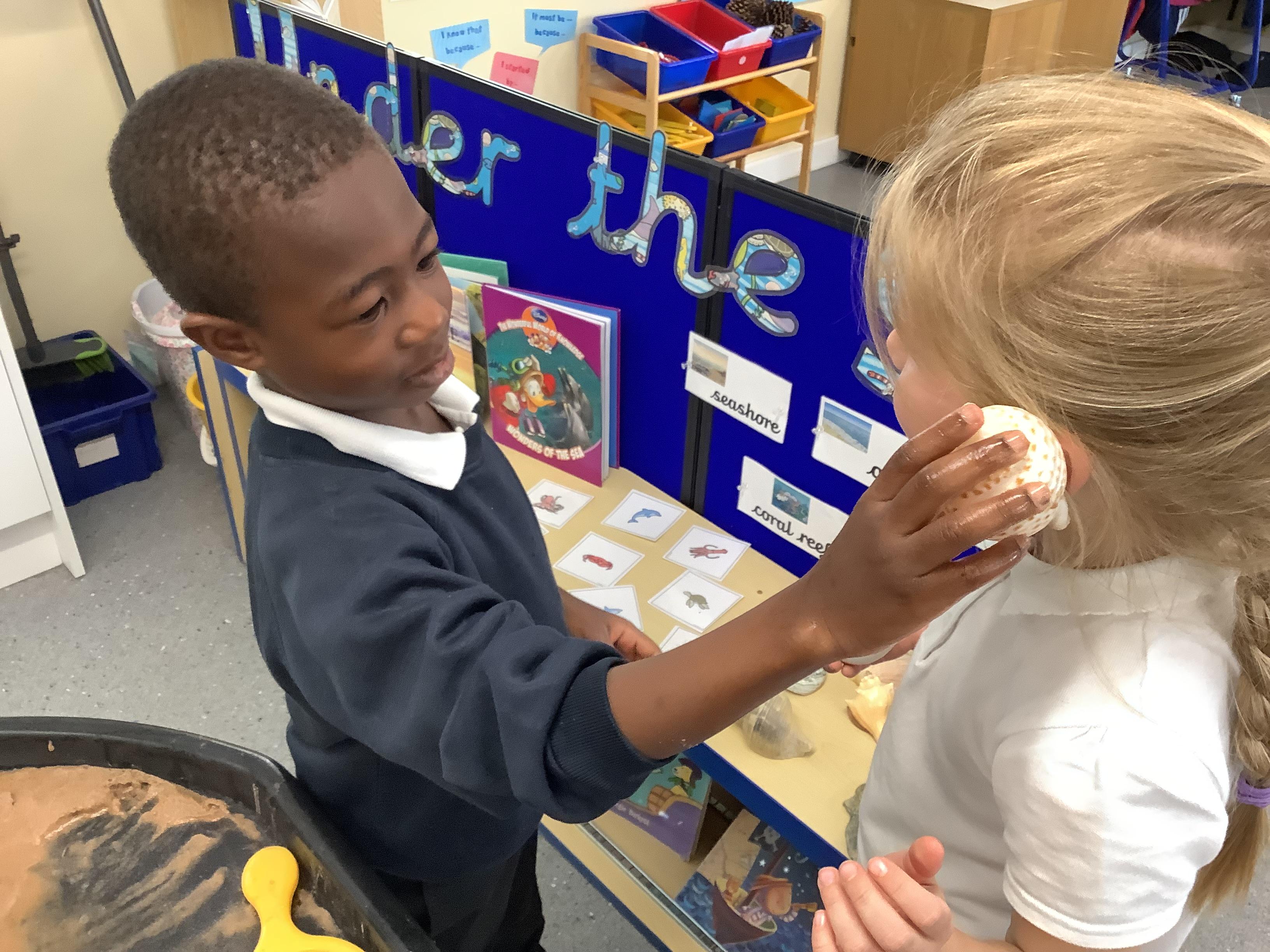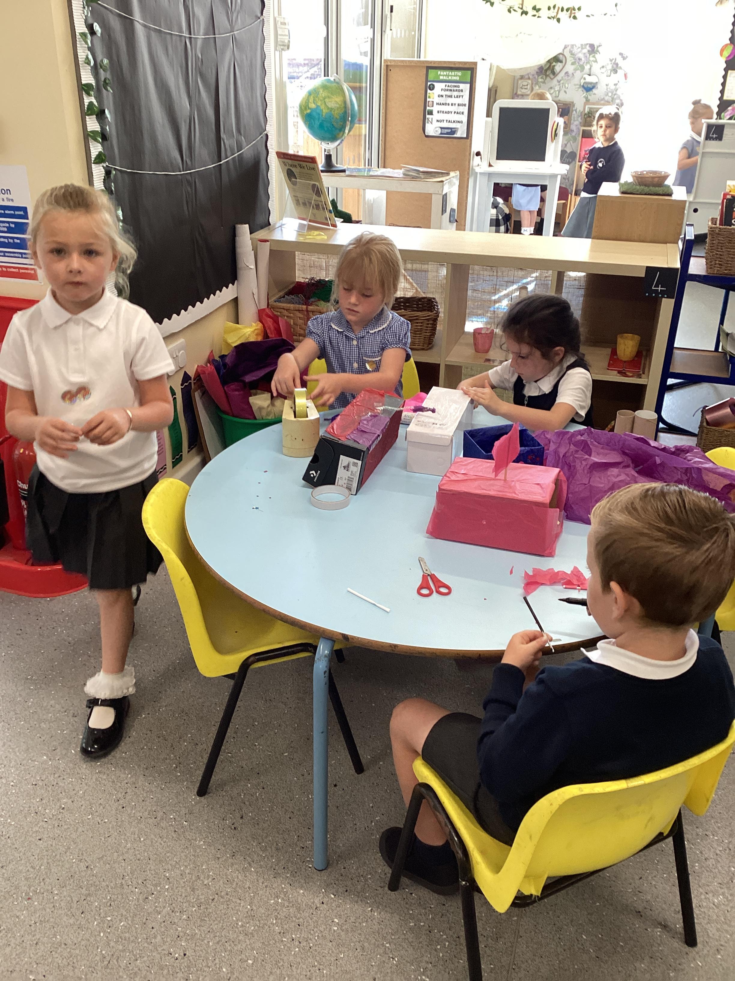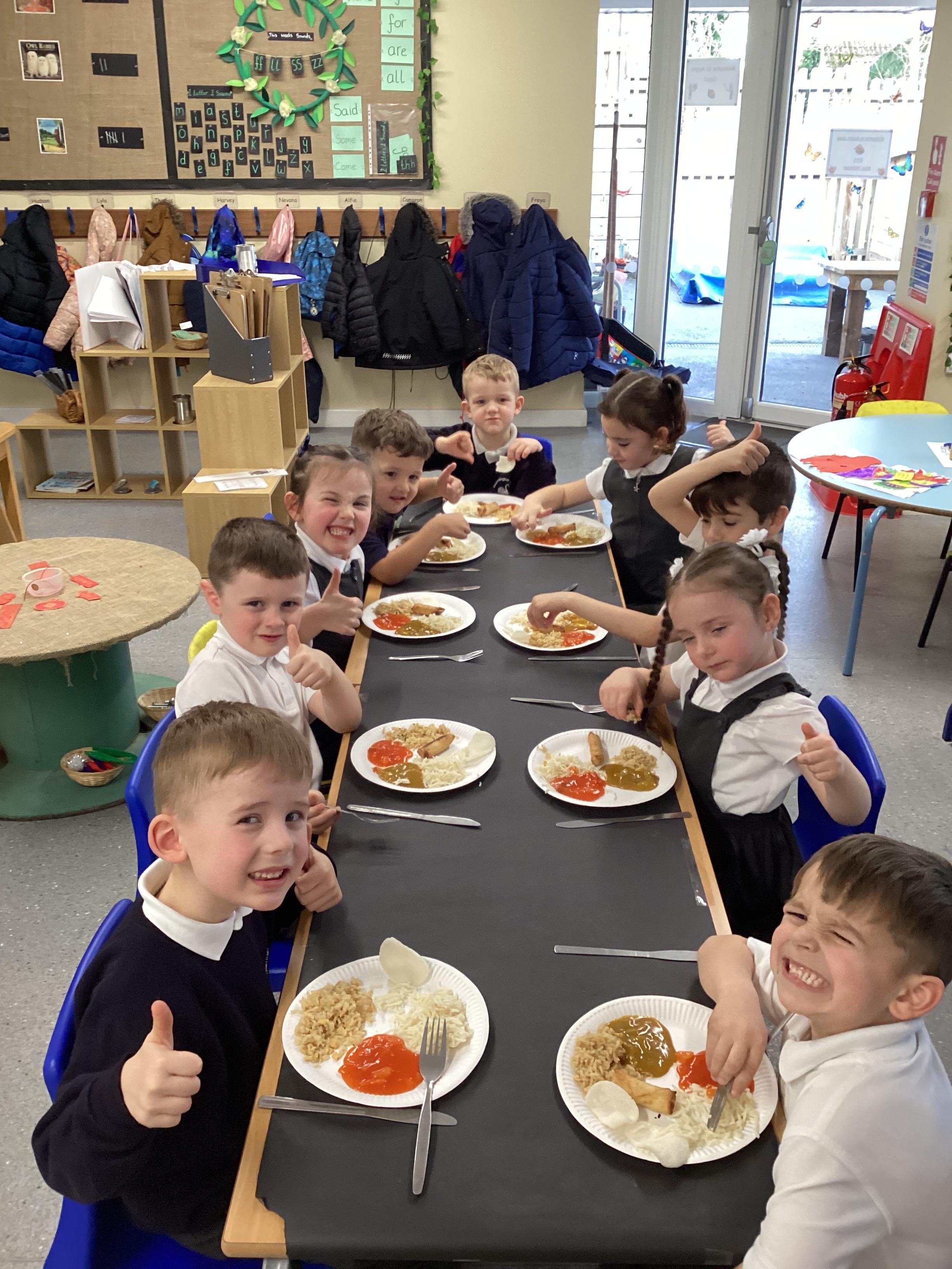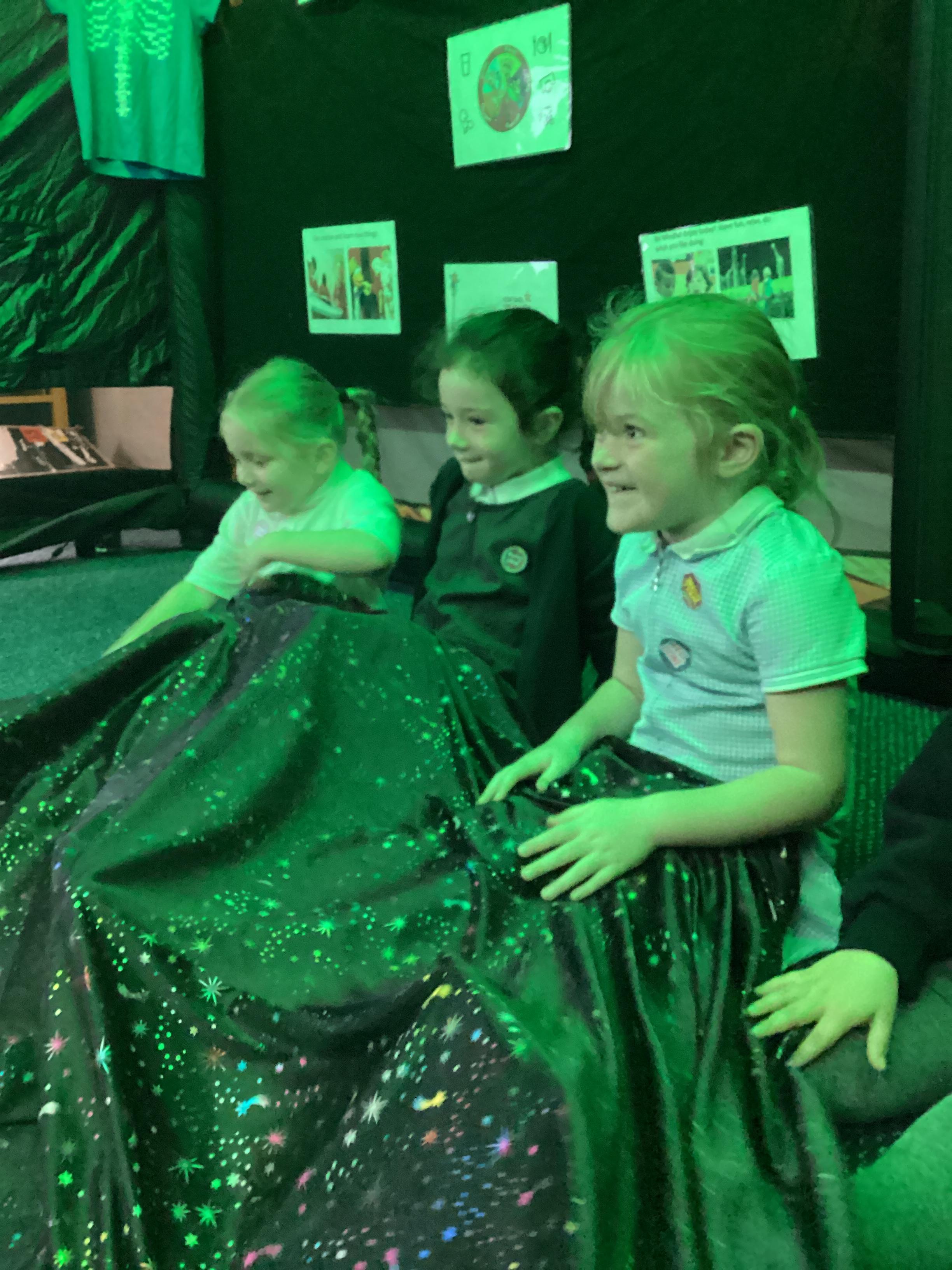 An exciting visit from another EYFS class- February 2024