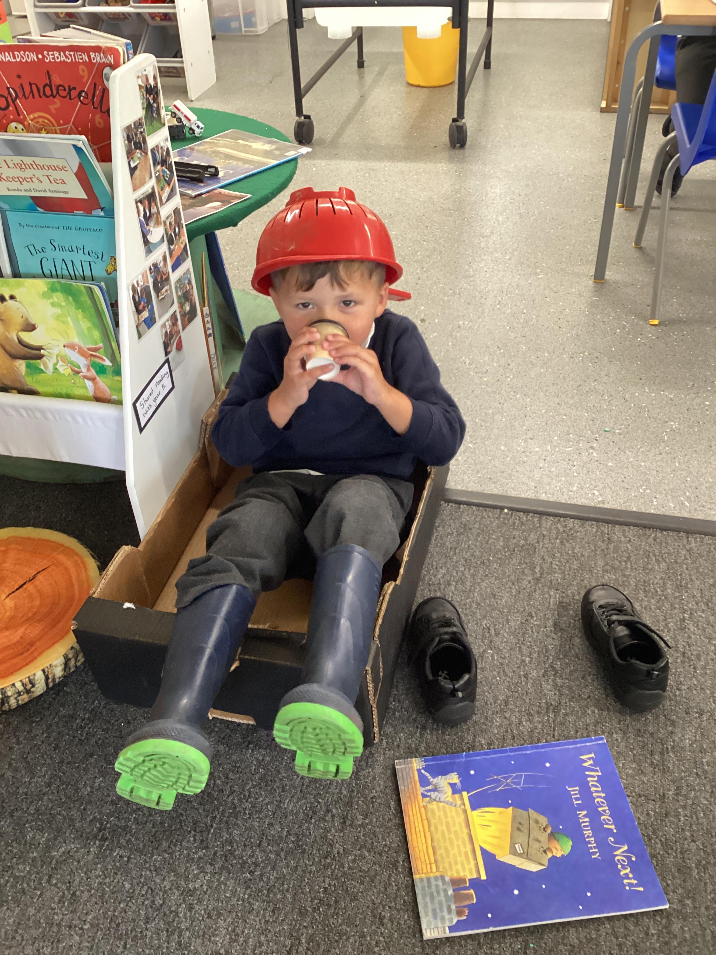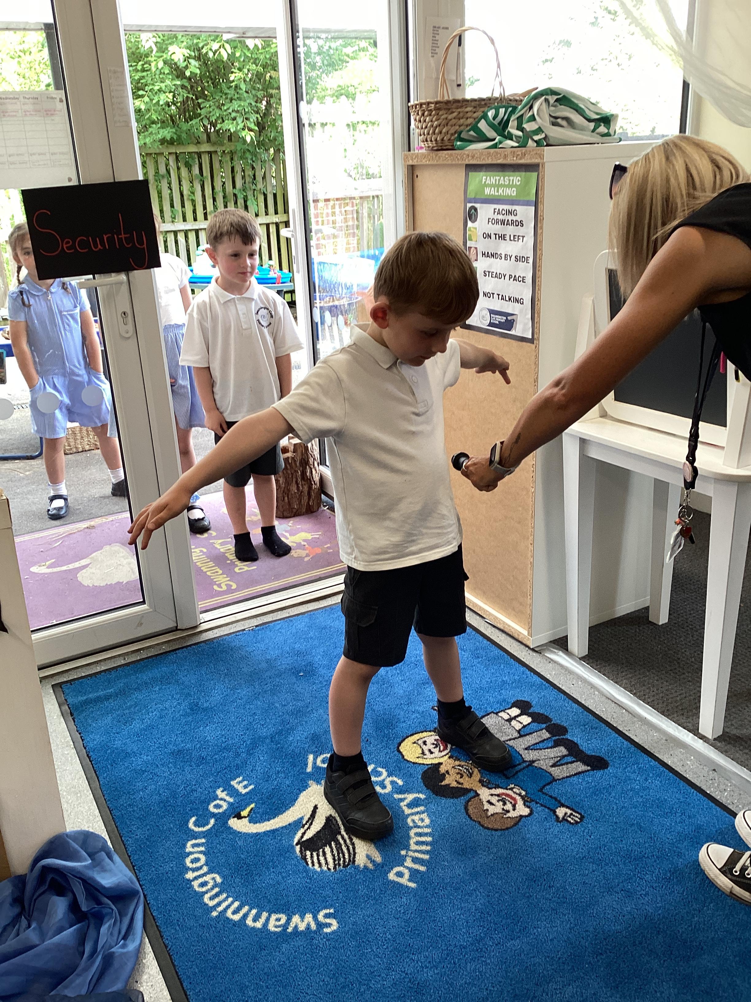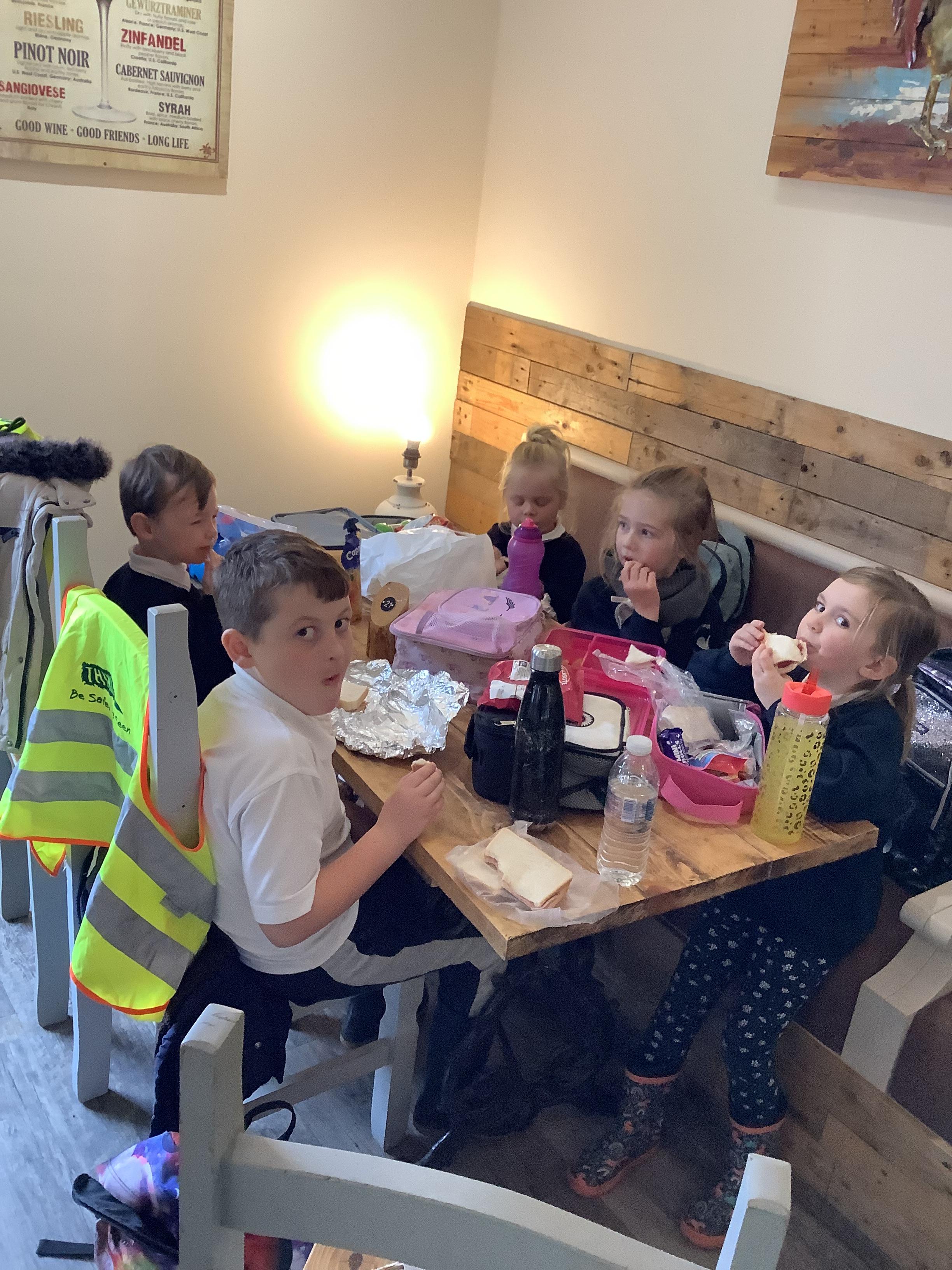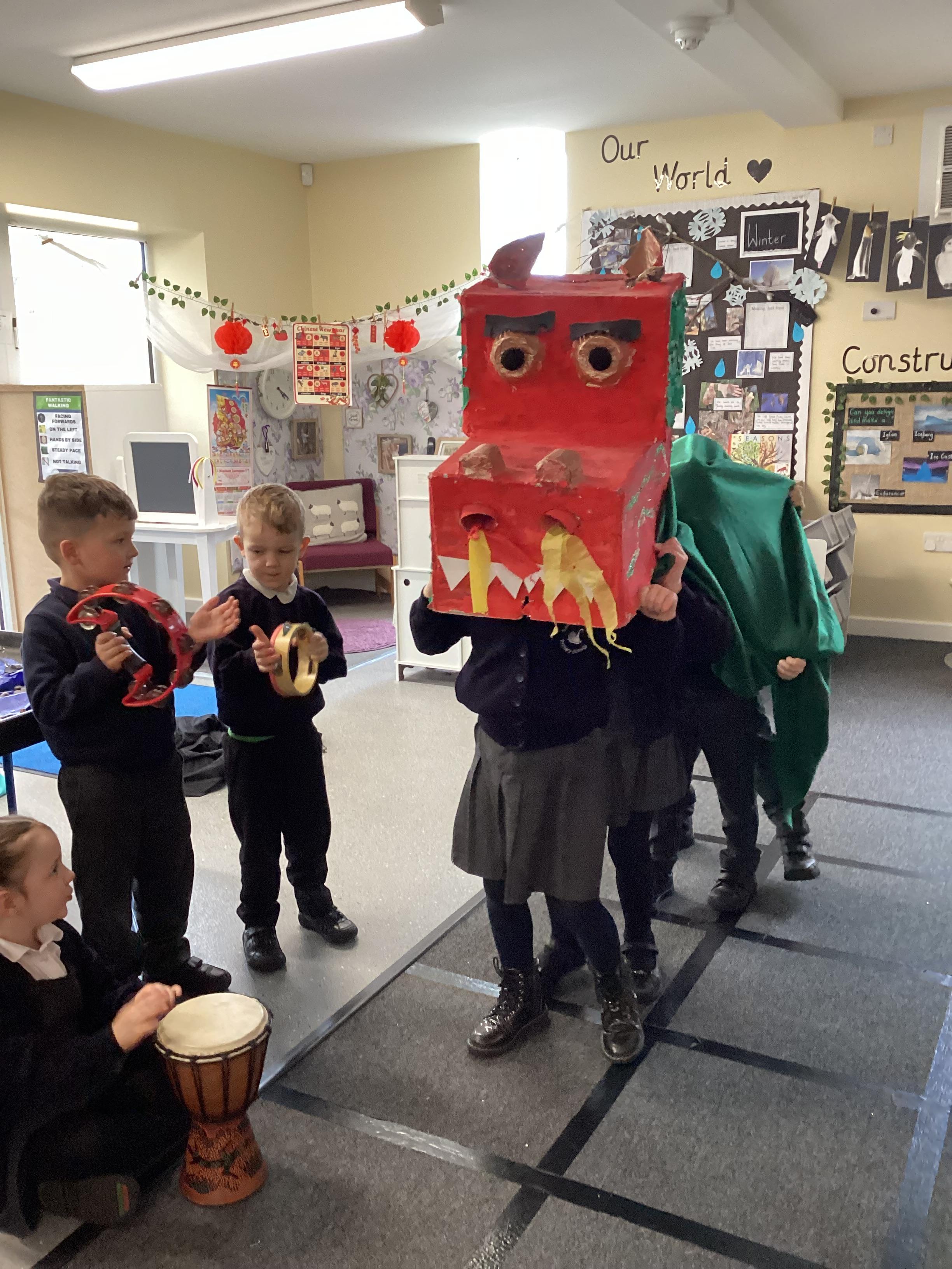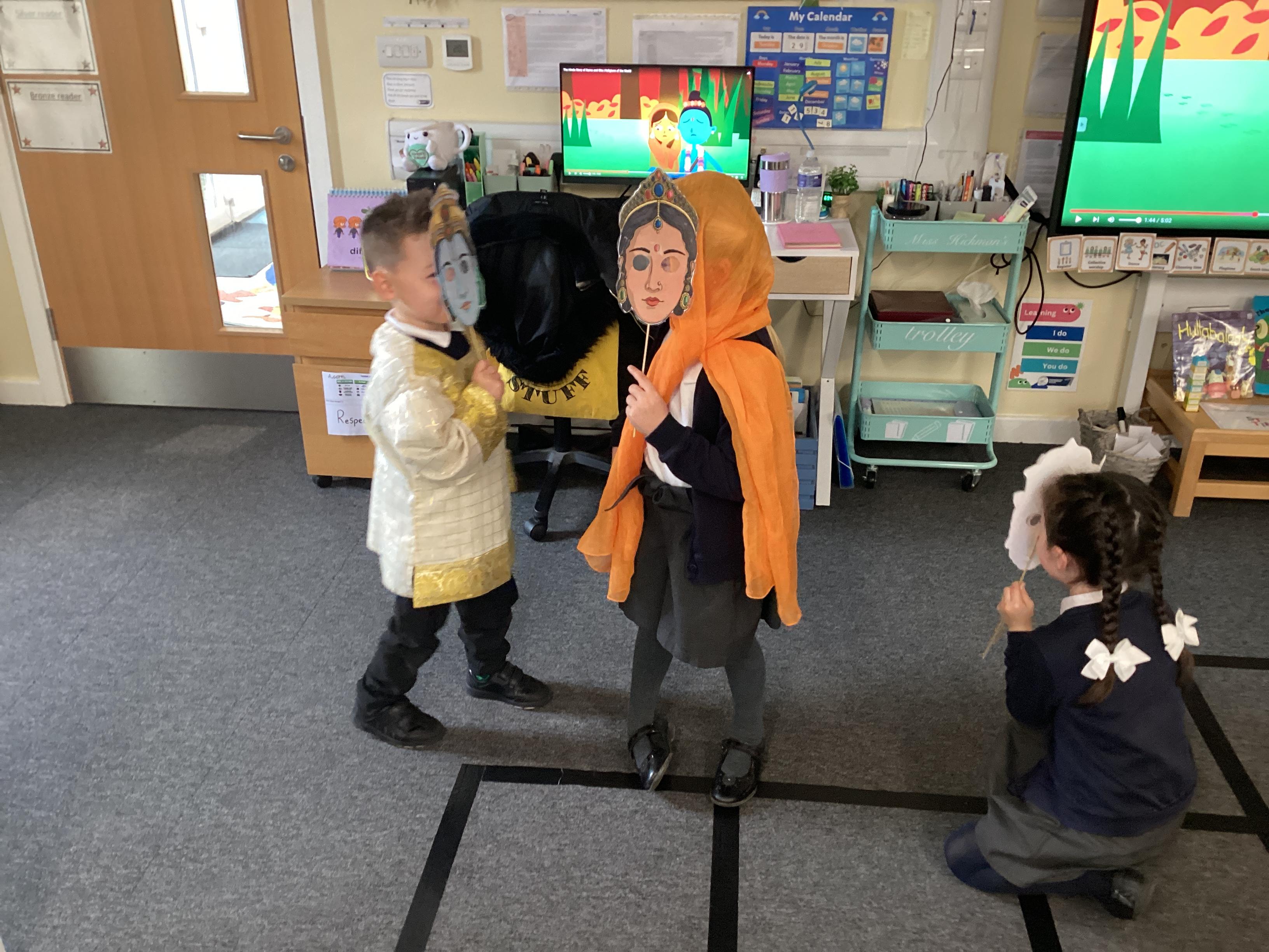 An exciting visit from another EYFS class- February 2024