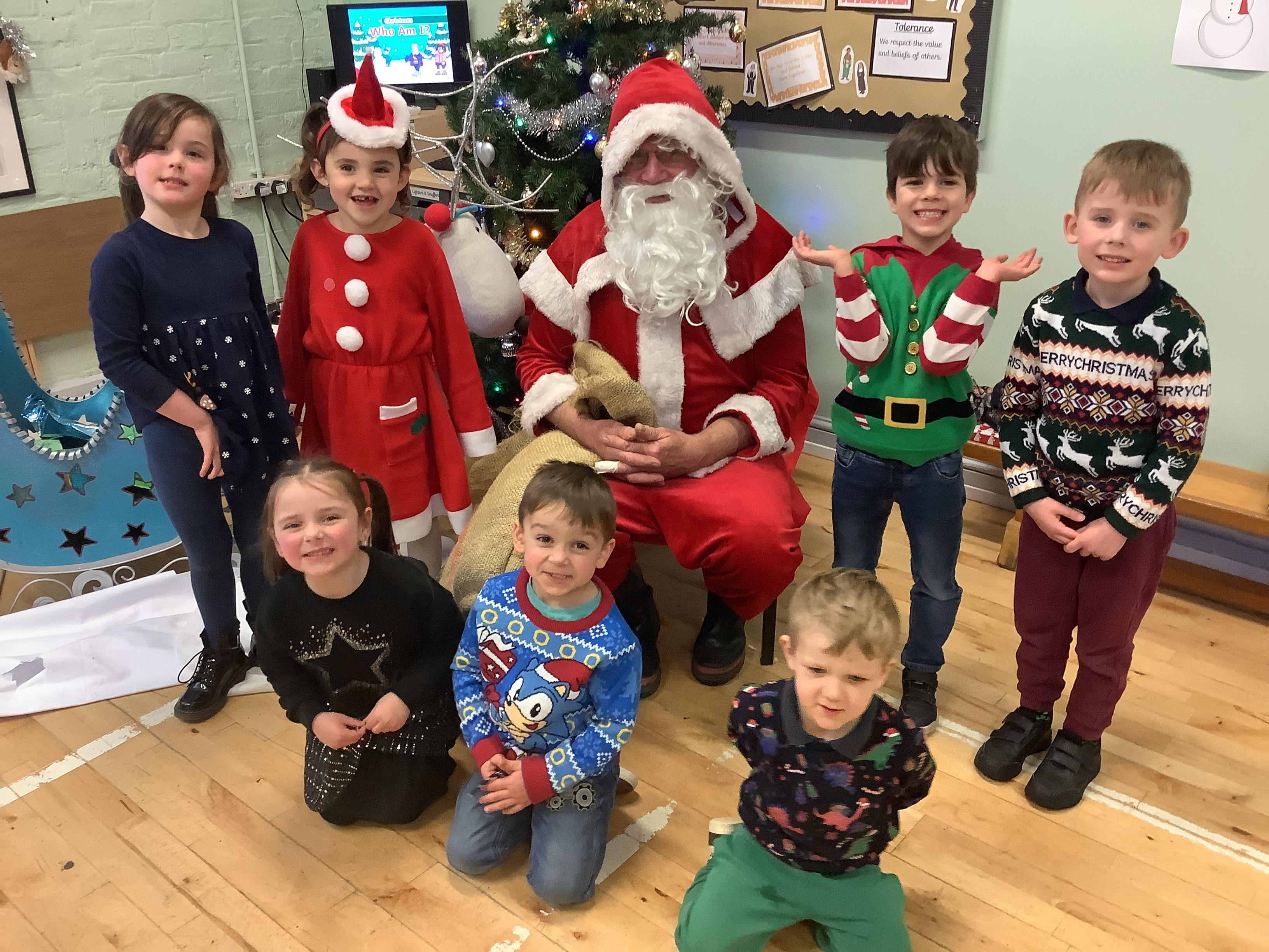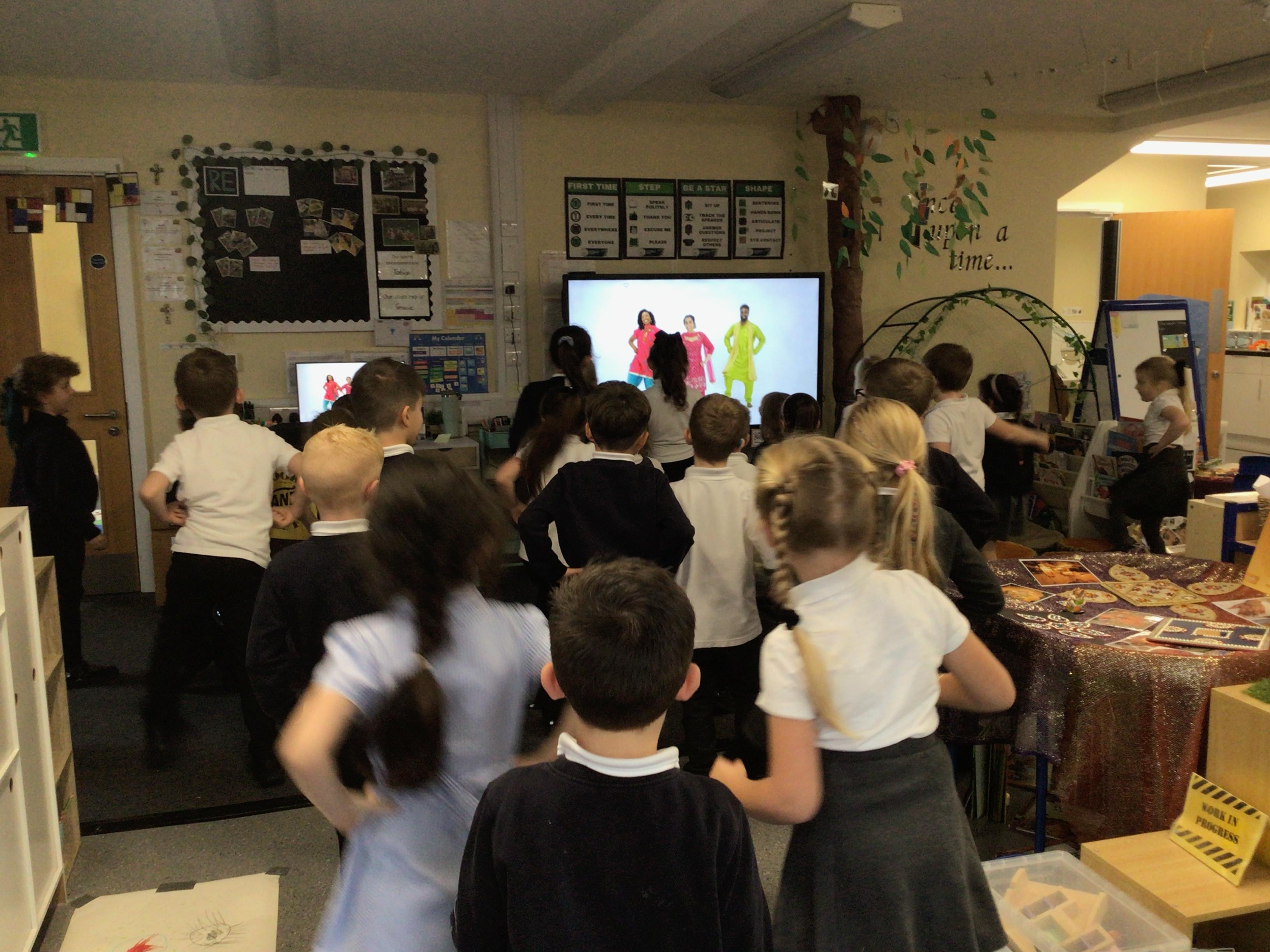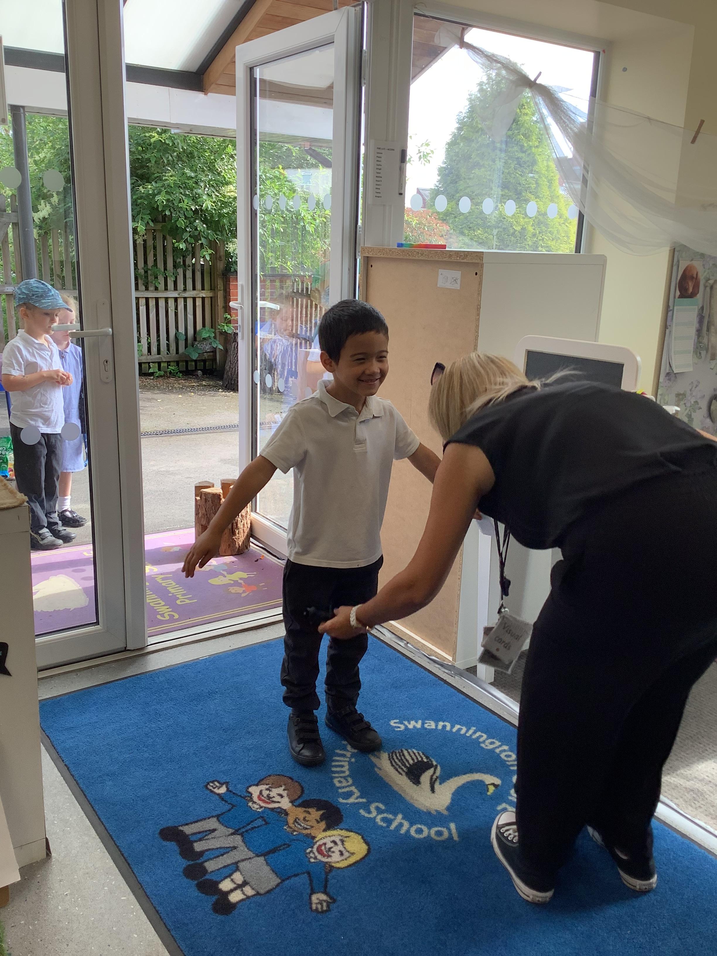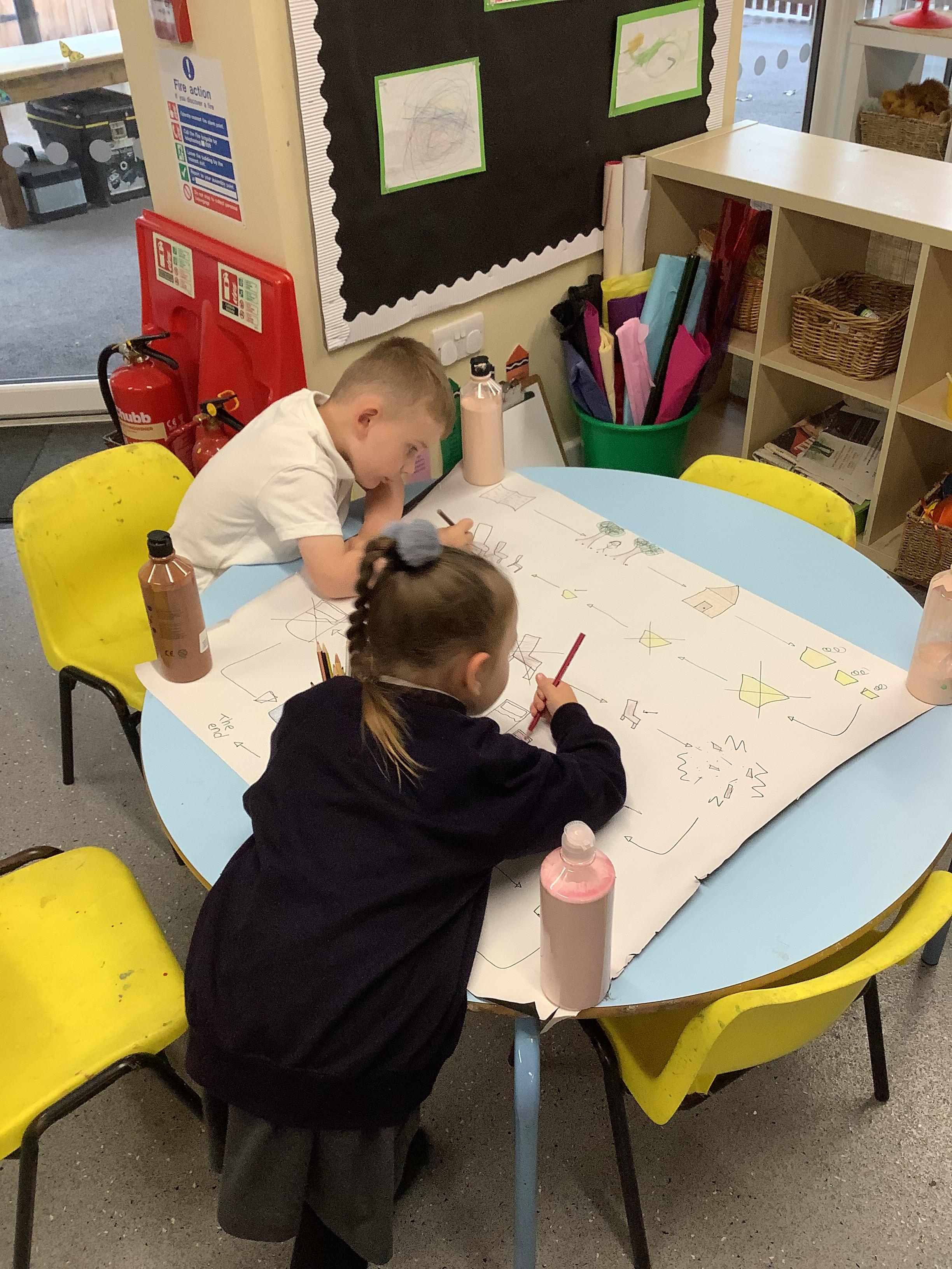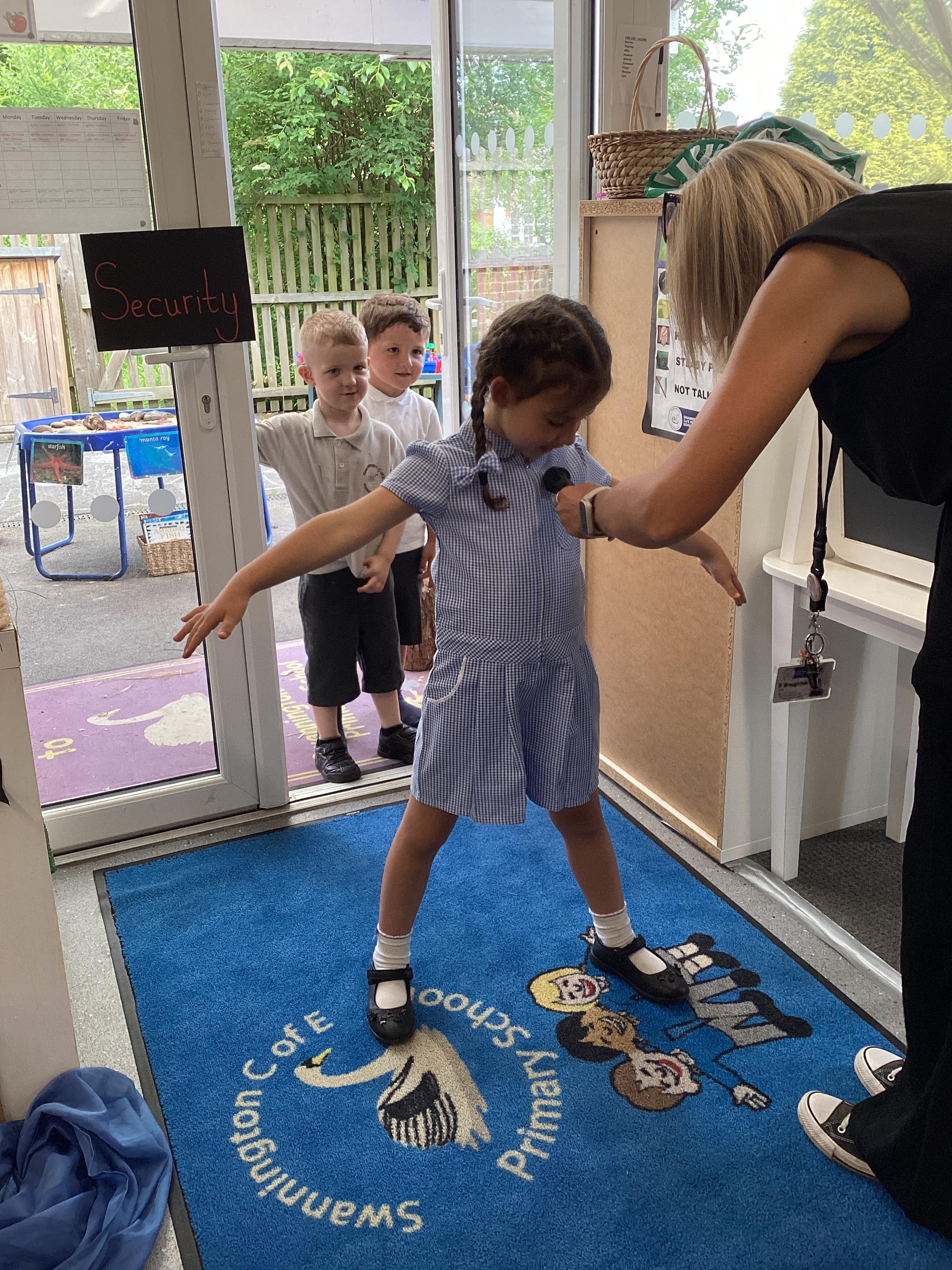 An exciting visit from another EYFS class- February 2024