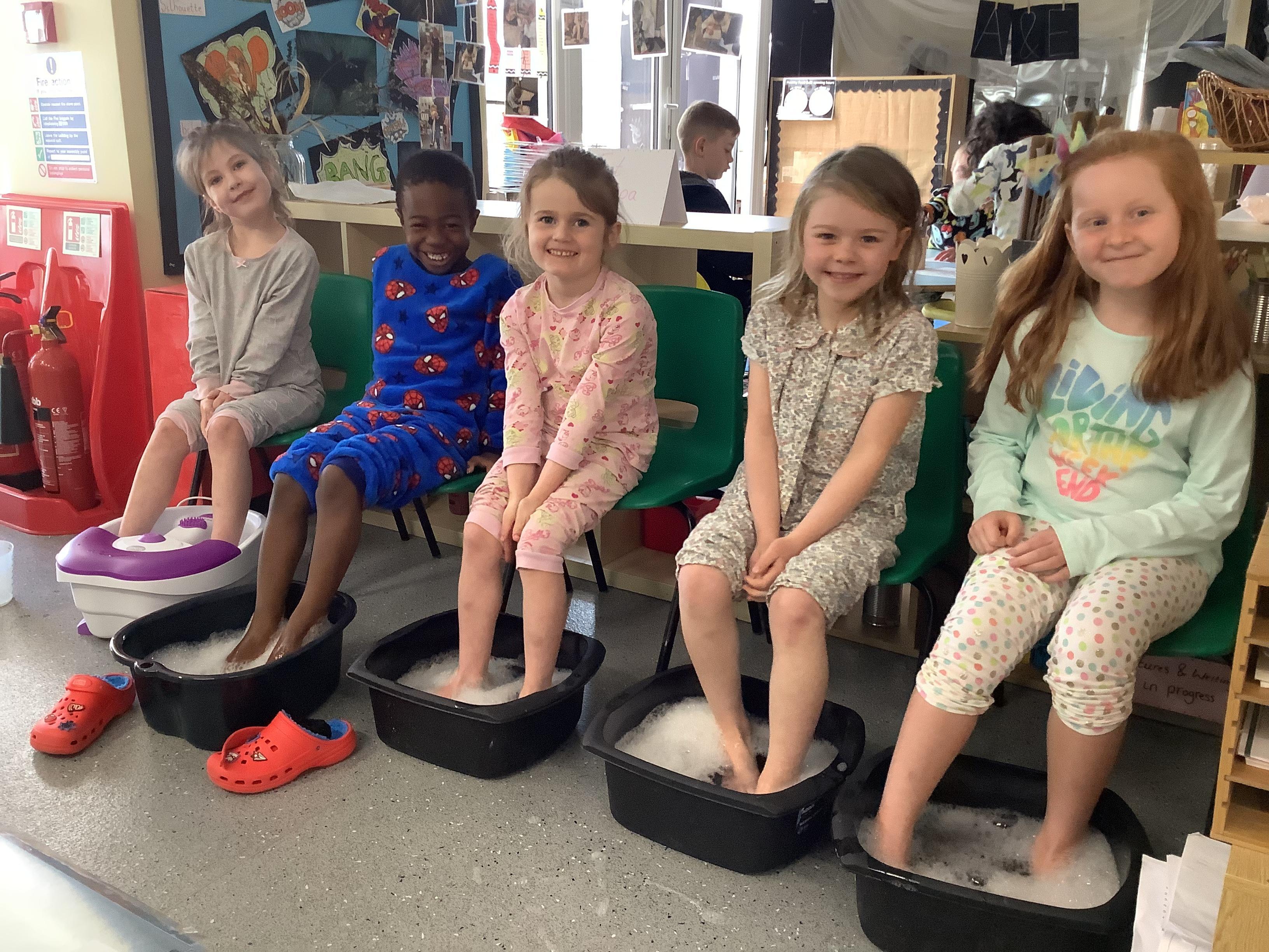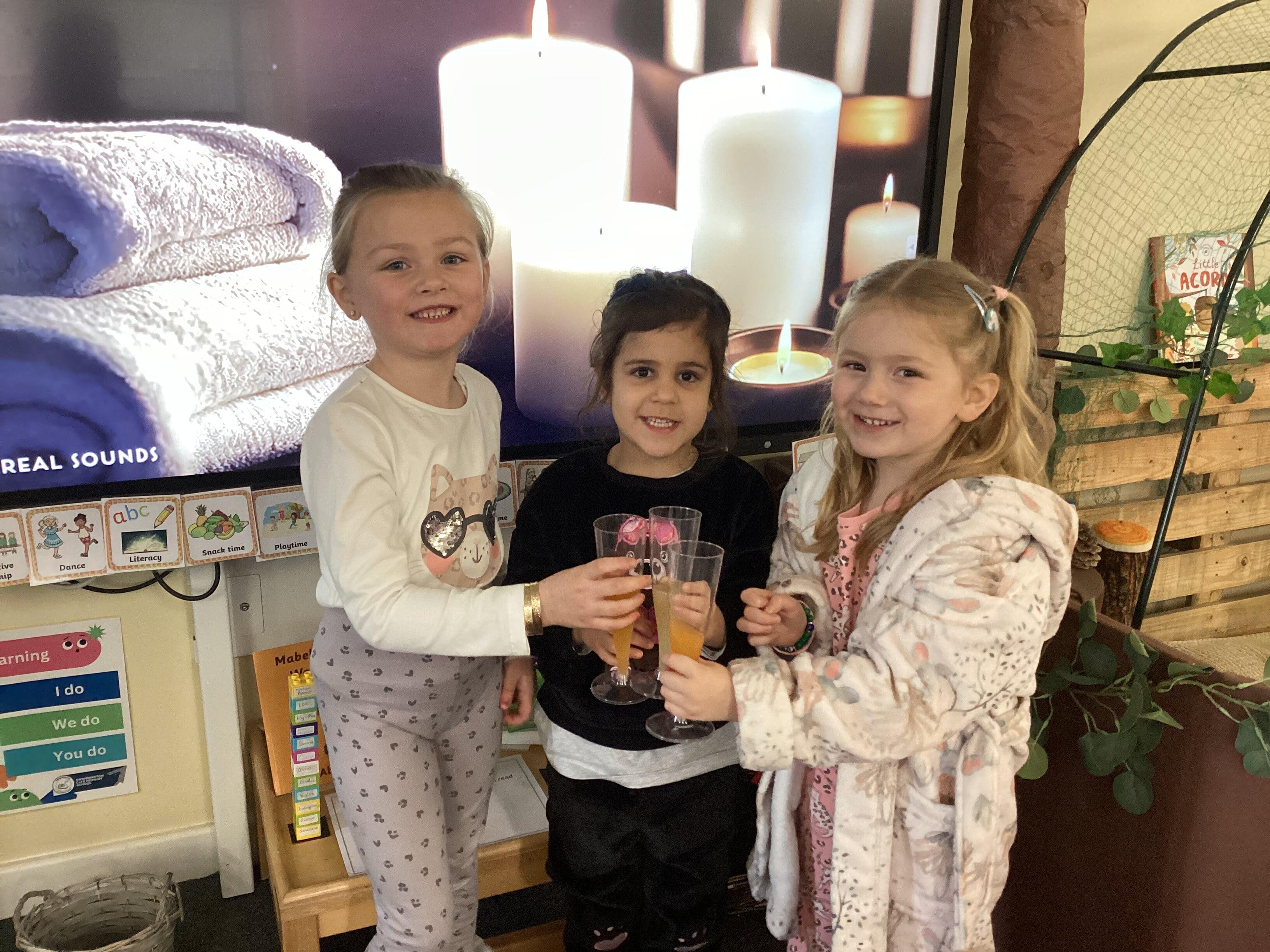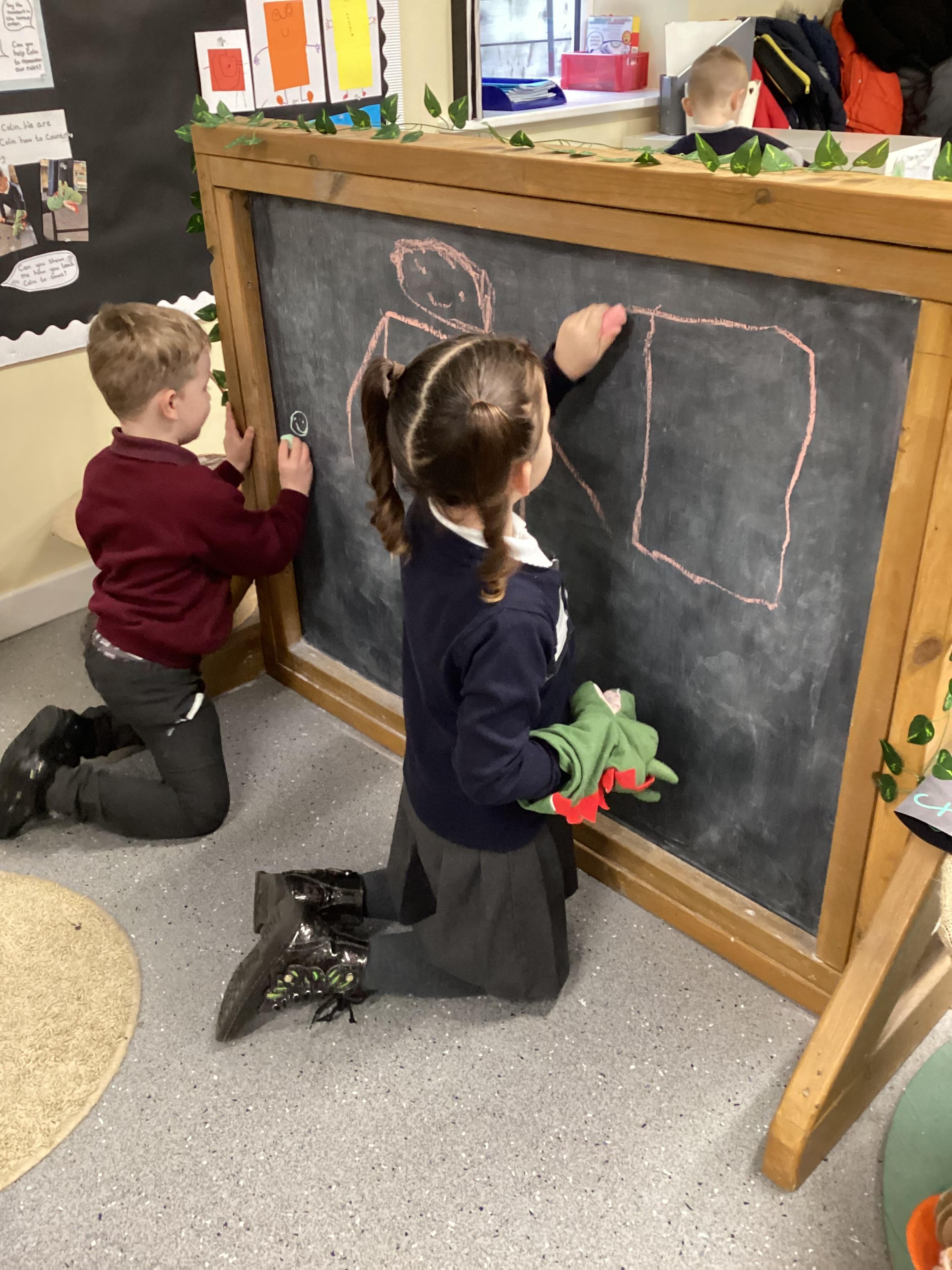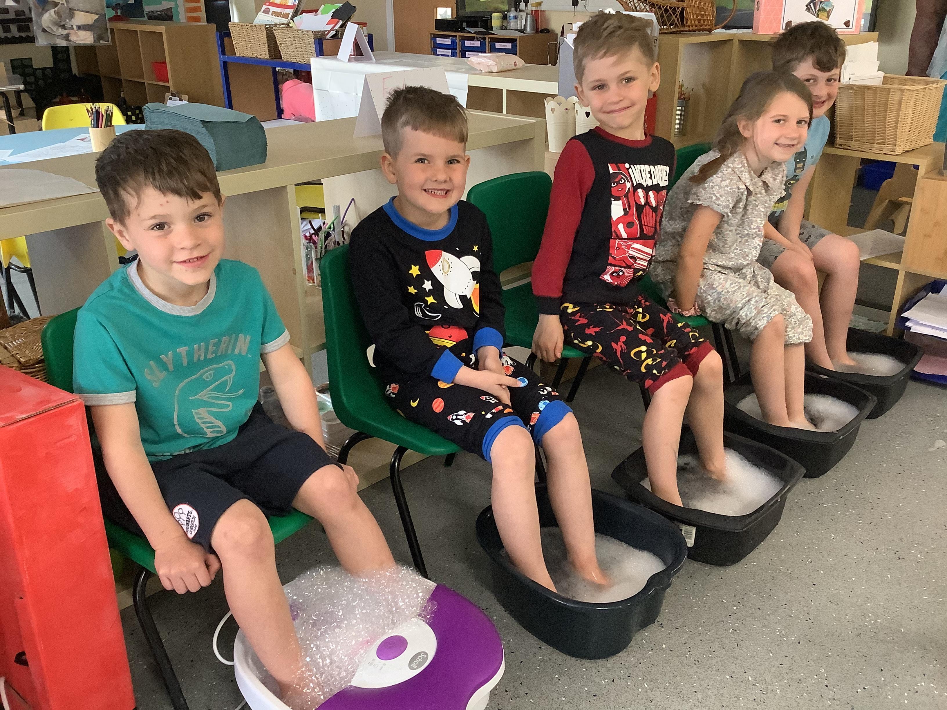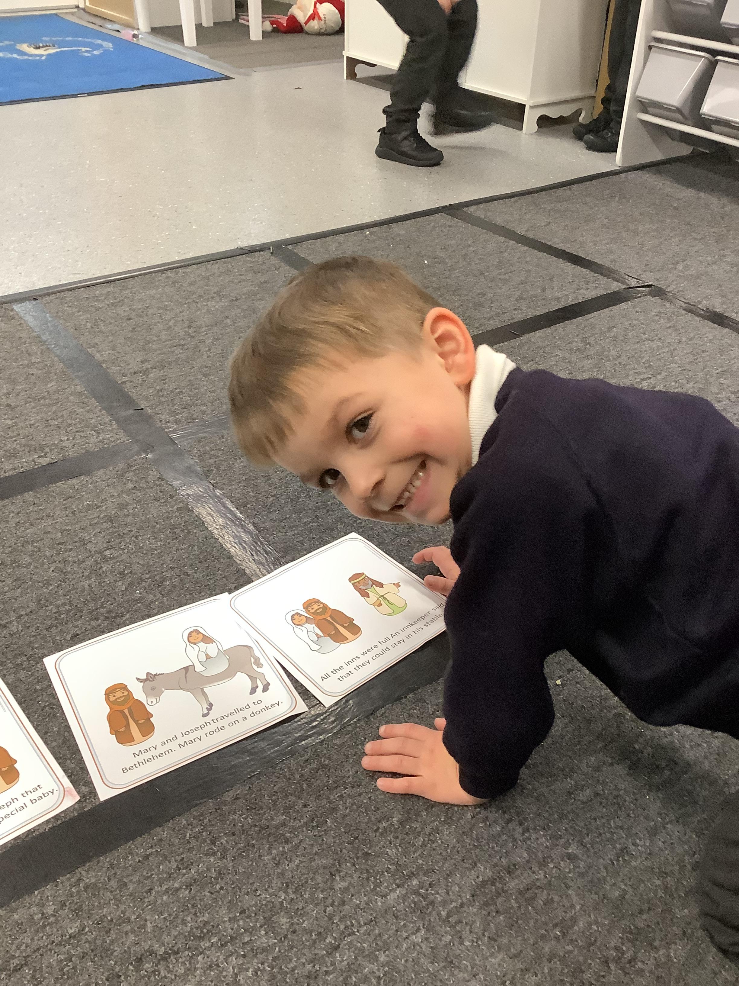 An exciting visit from another EYFS class- February 2024