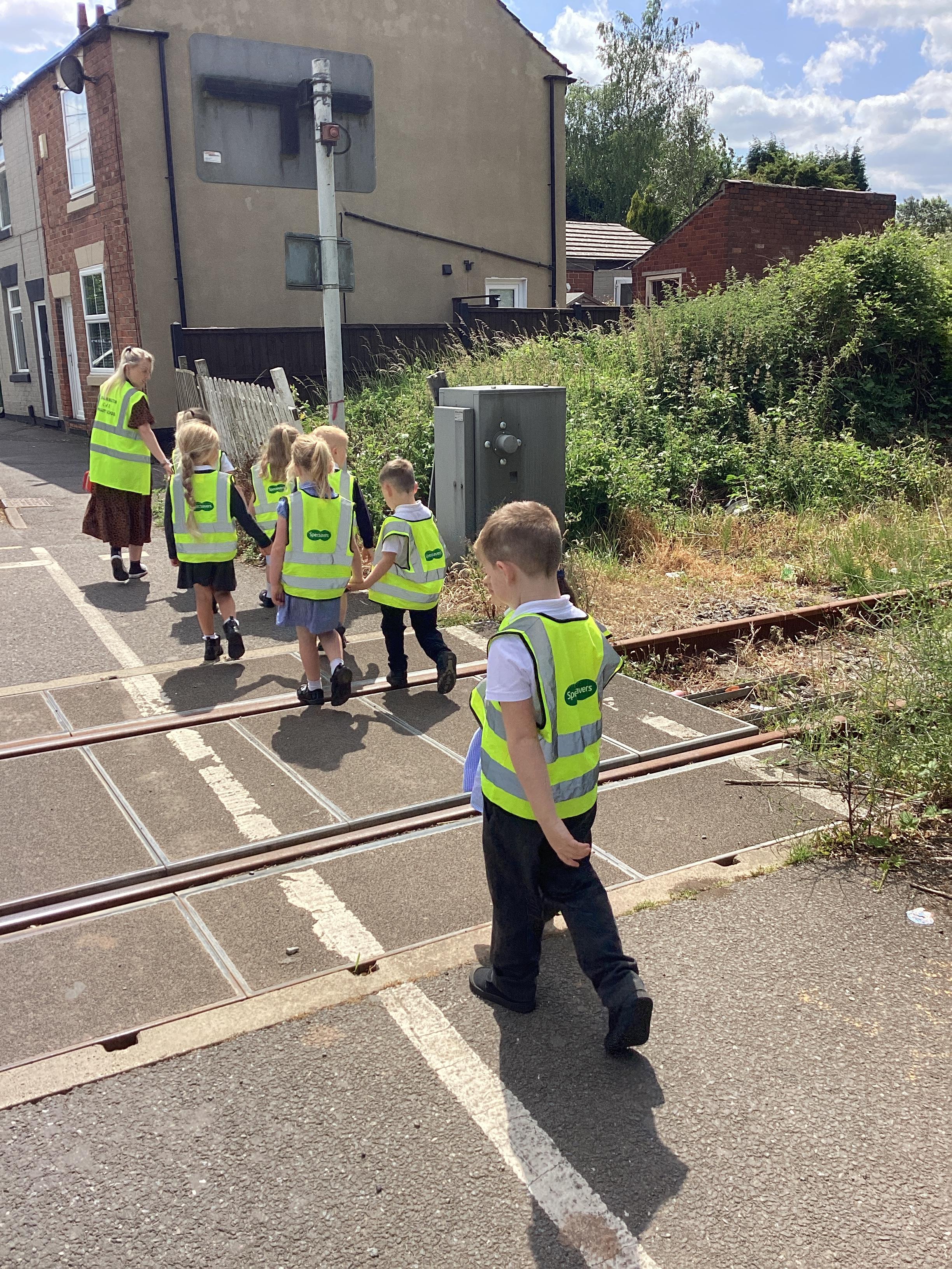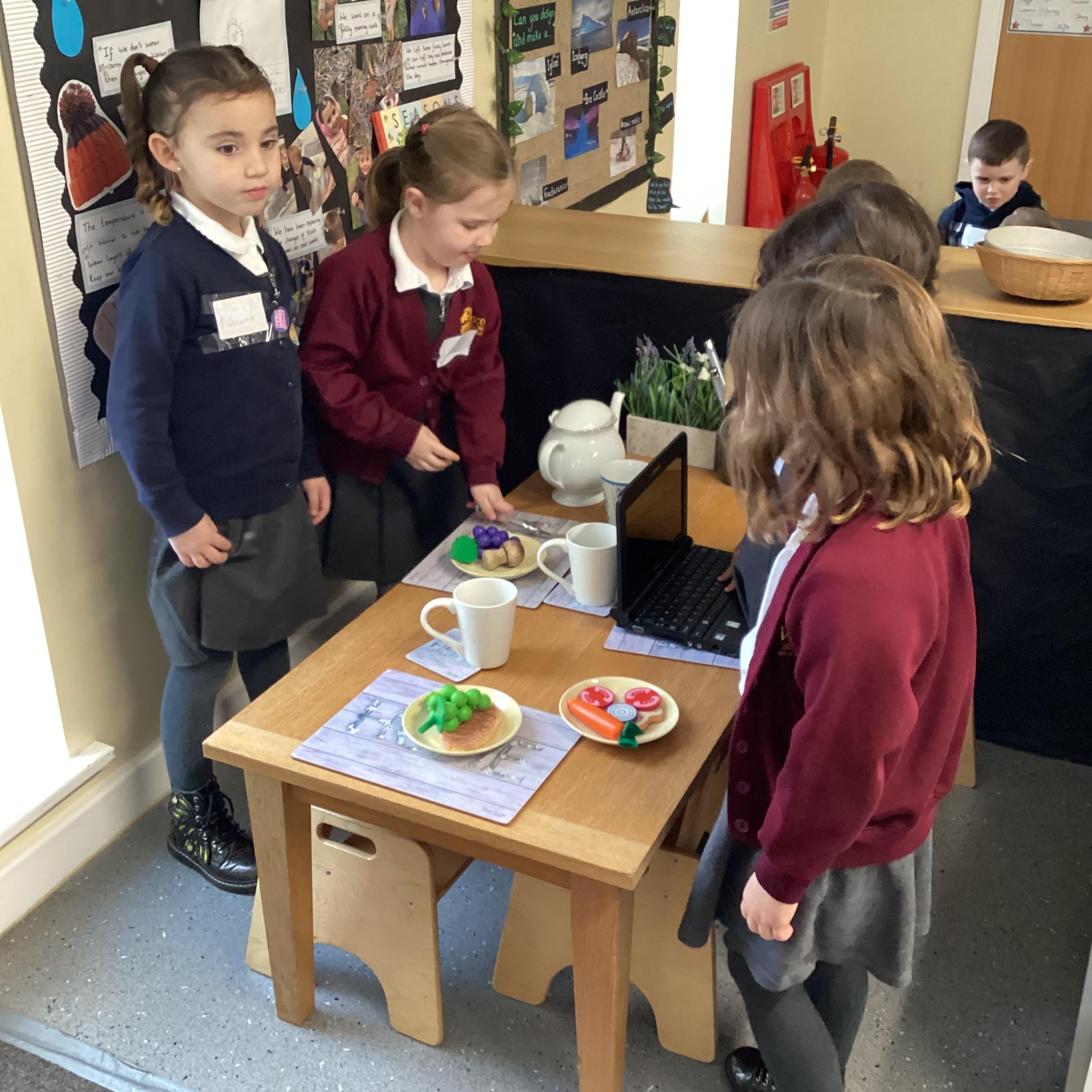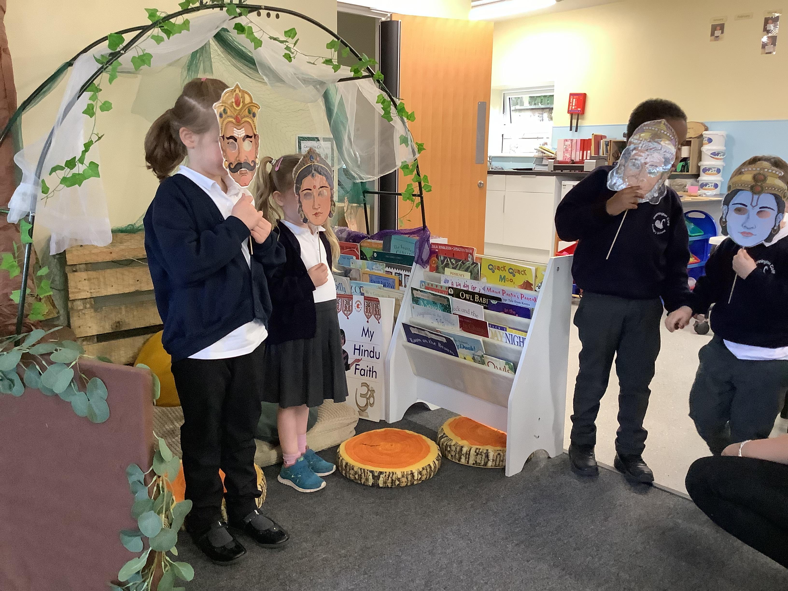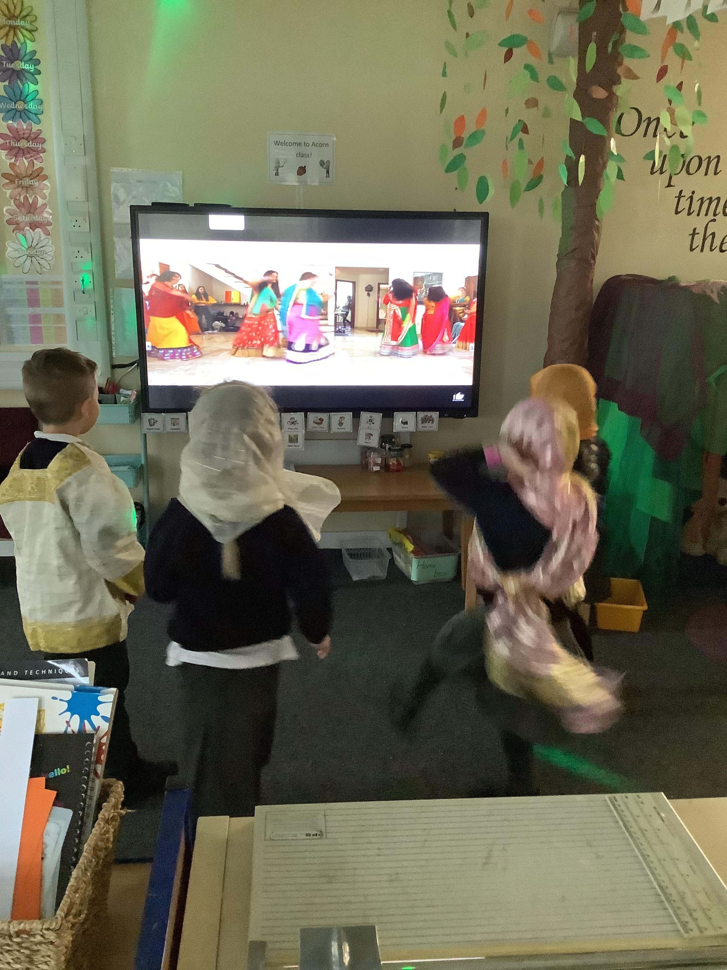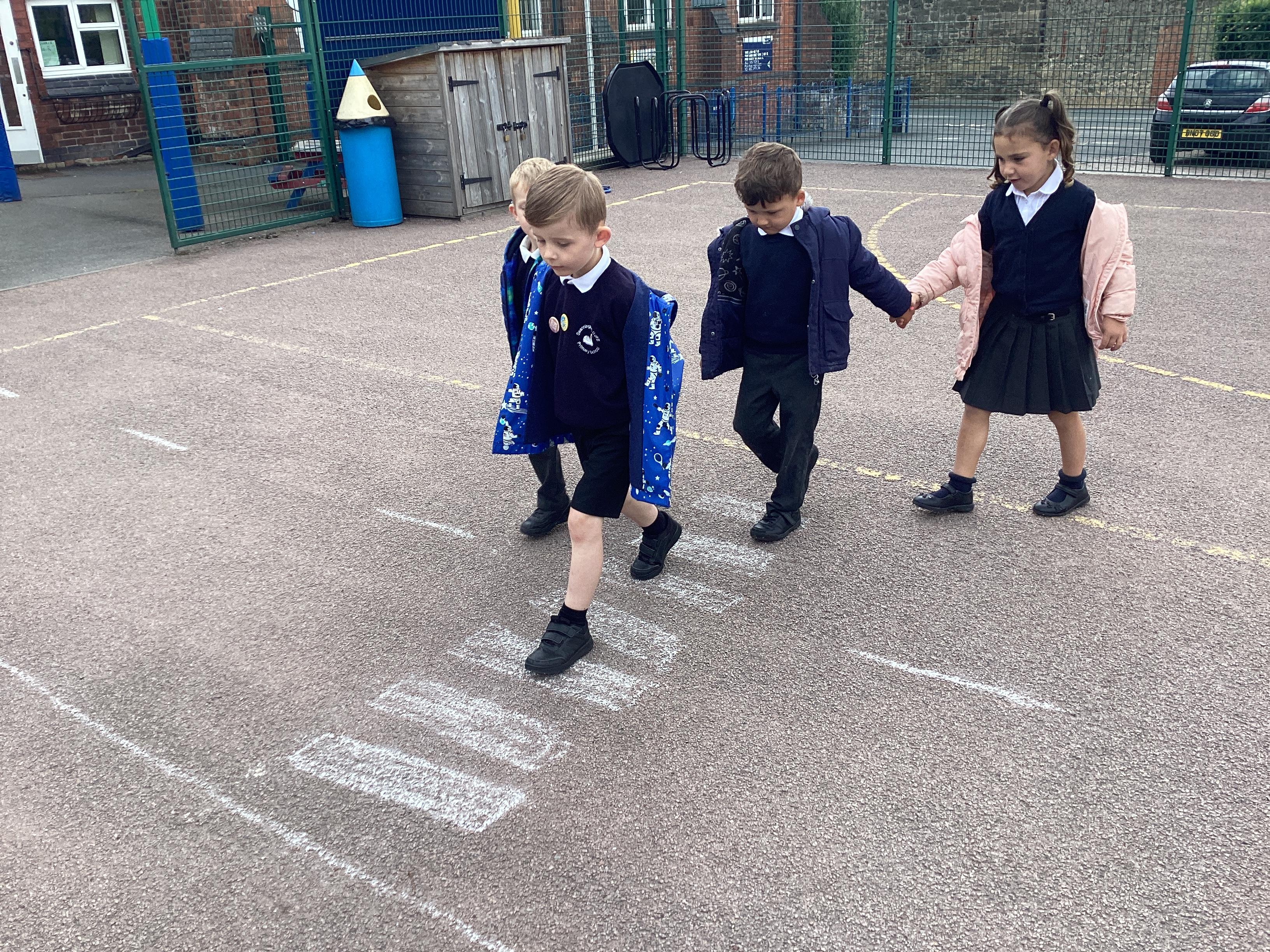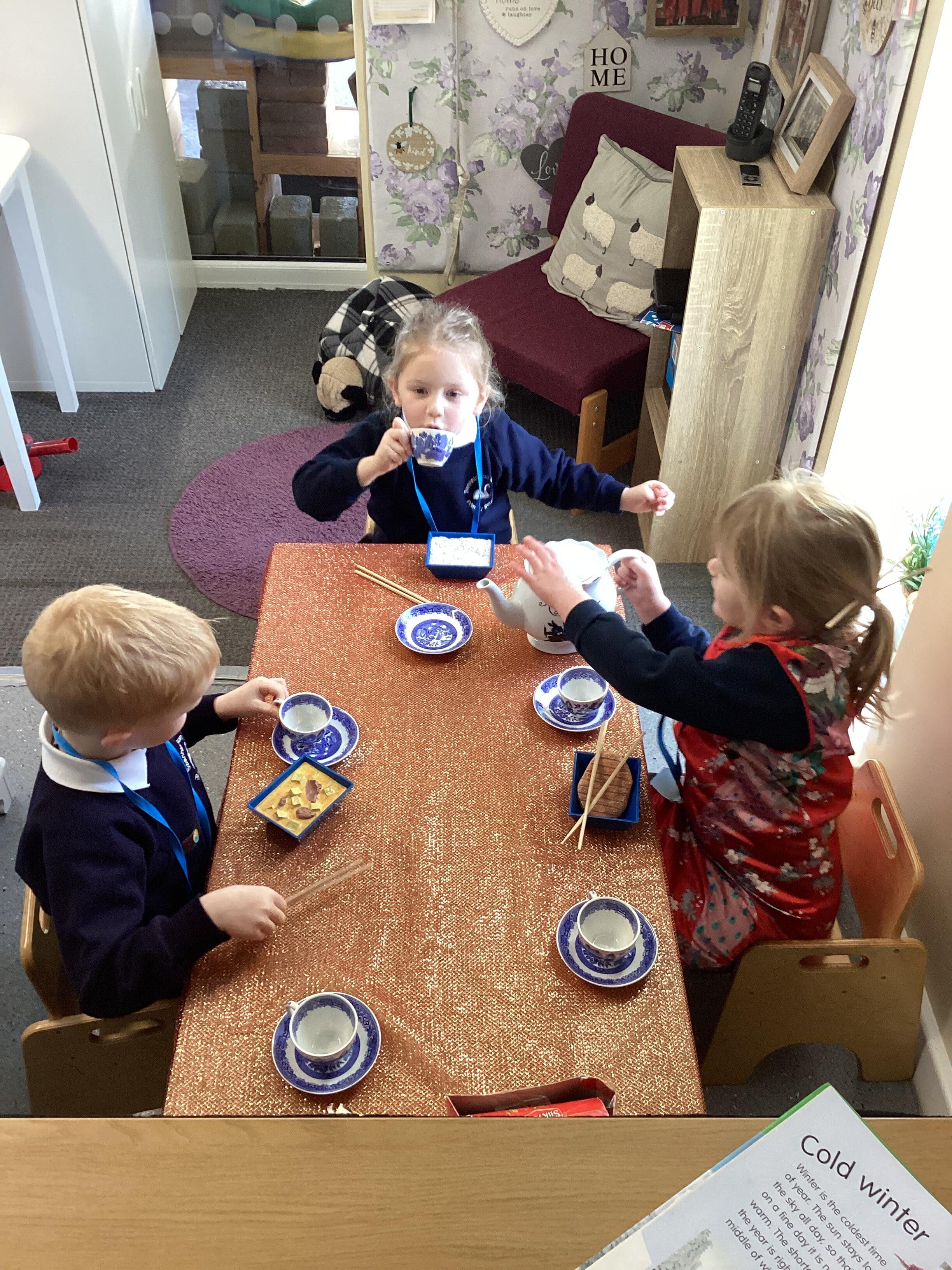 An exciting visit from another EYFS class- February 2024