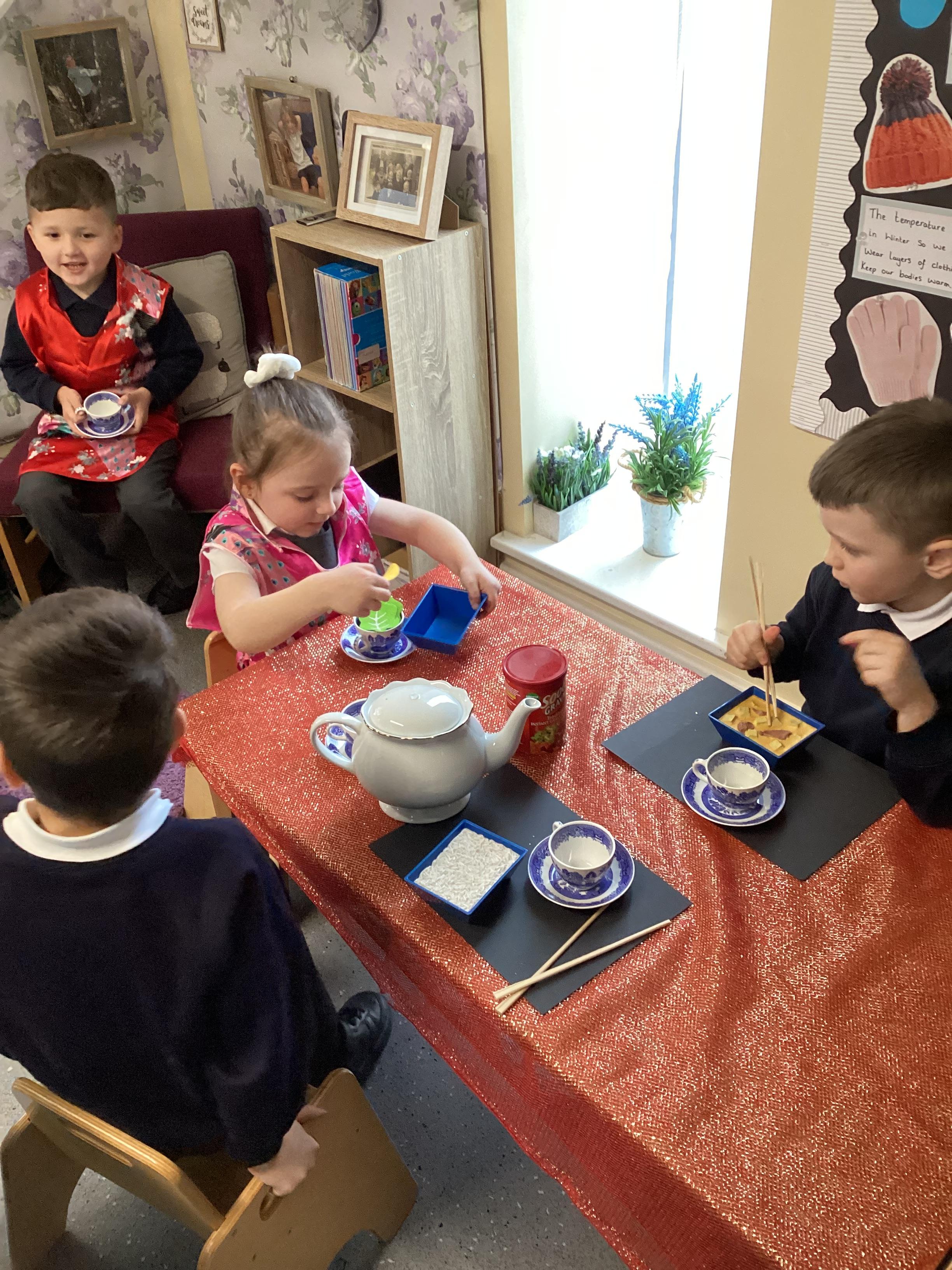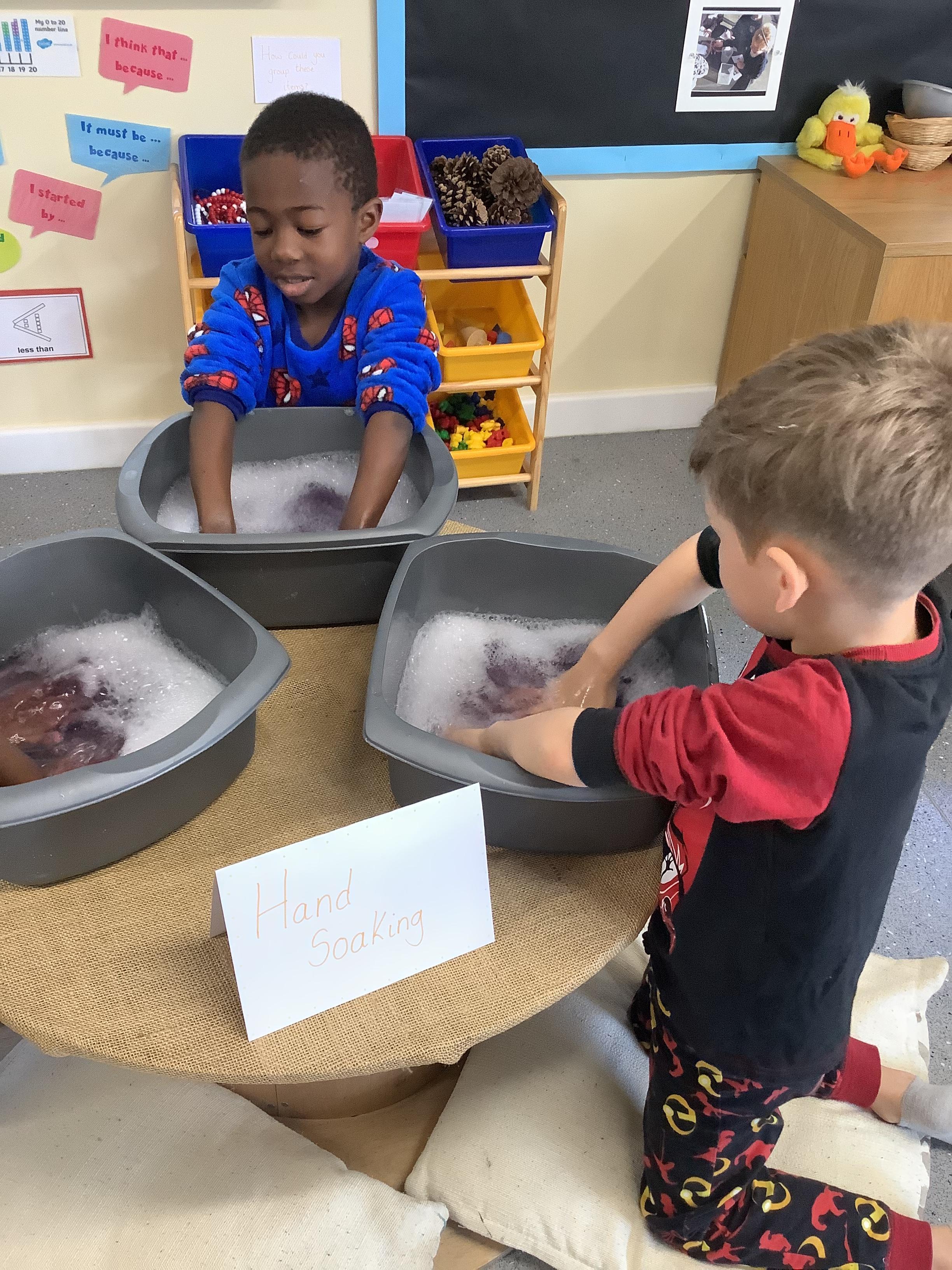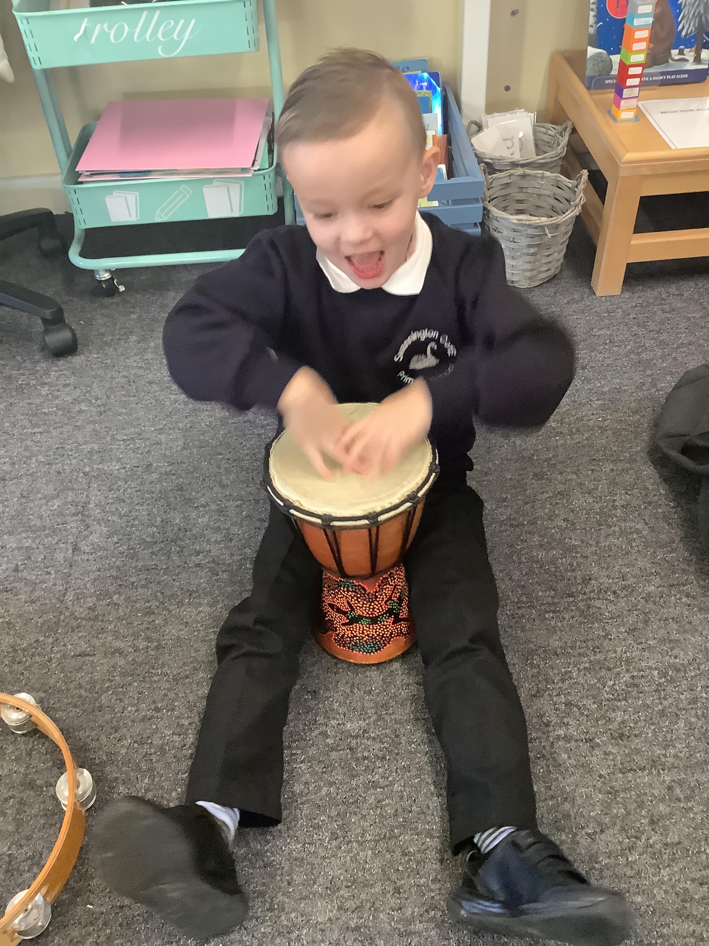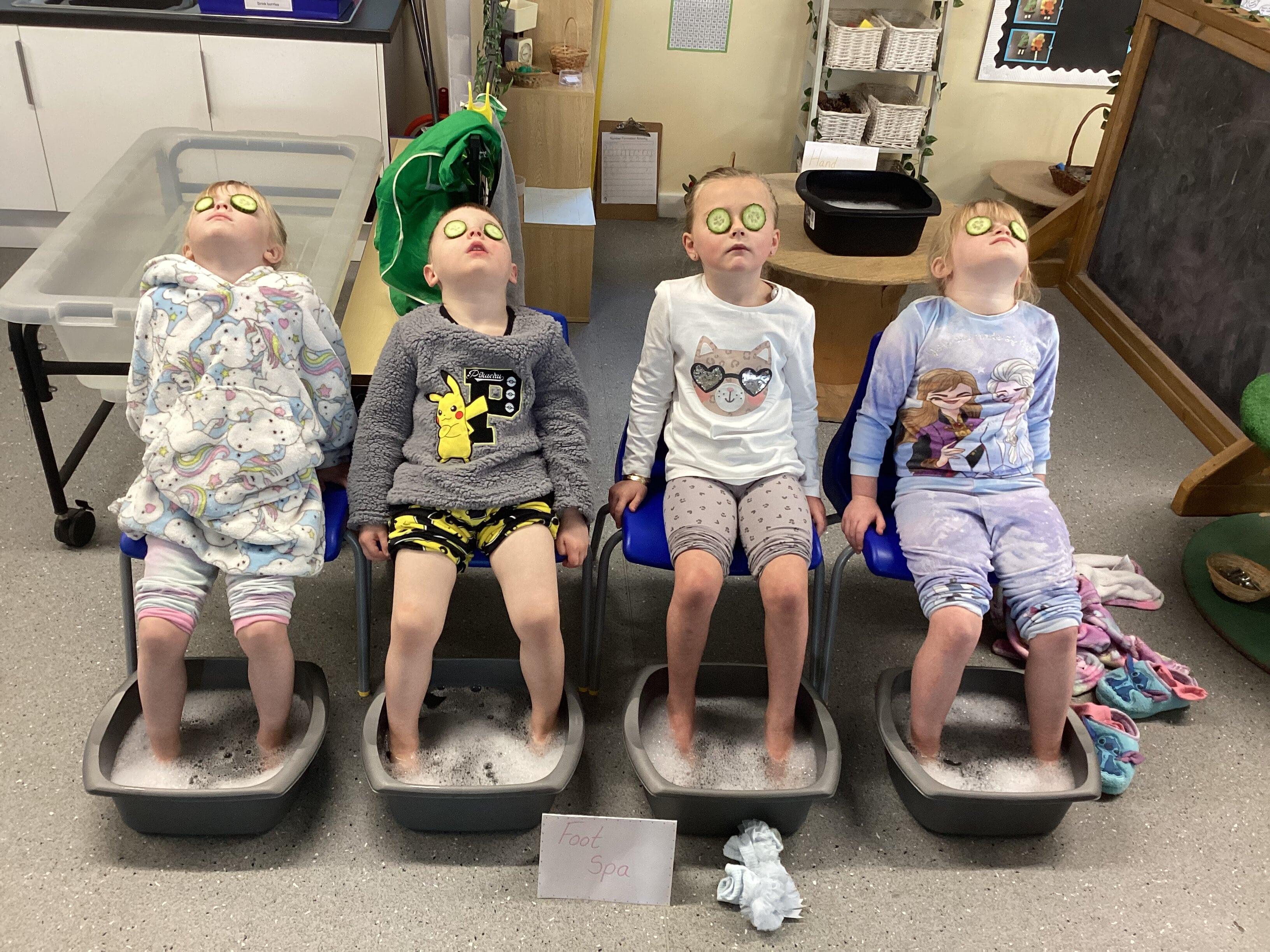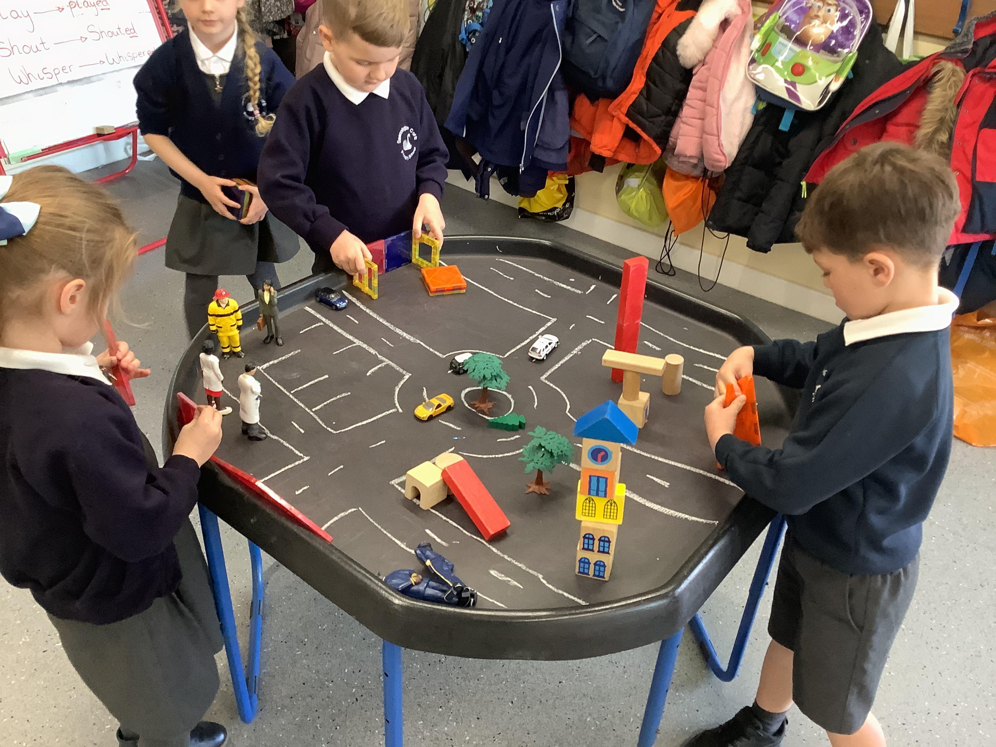 An exciting visit from another EYFS class- February 2024