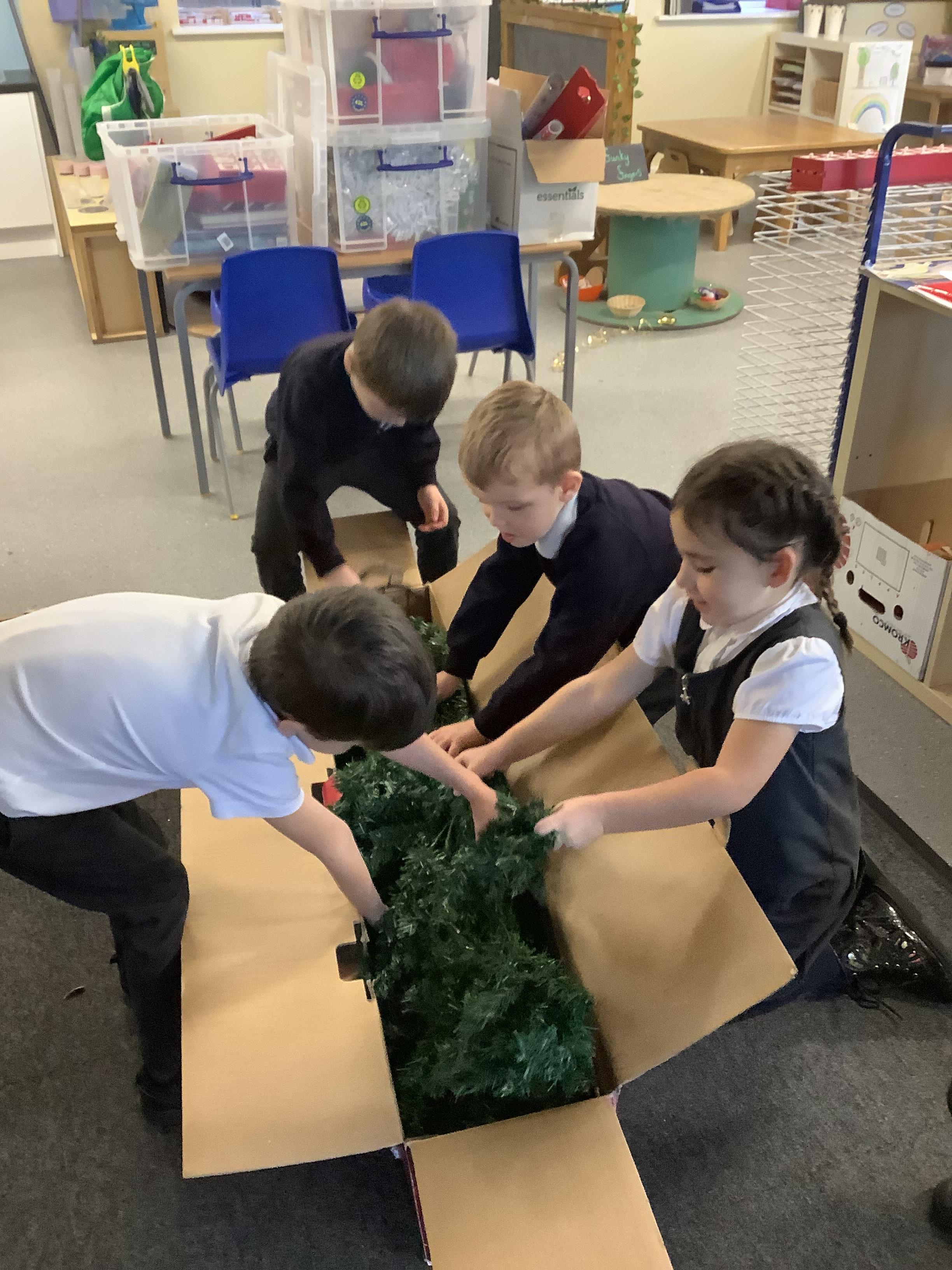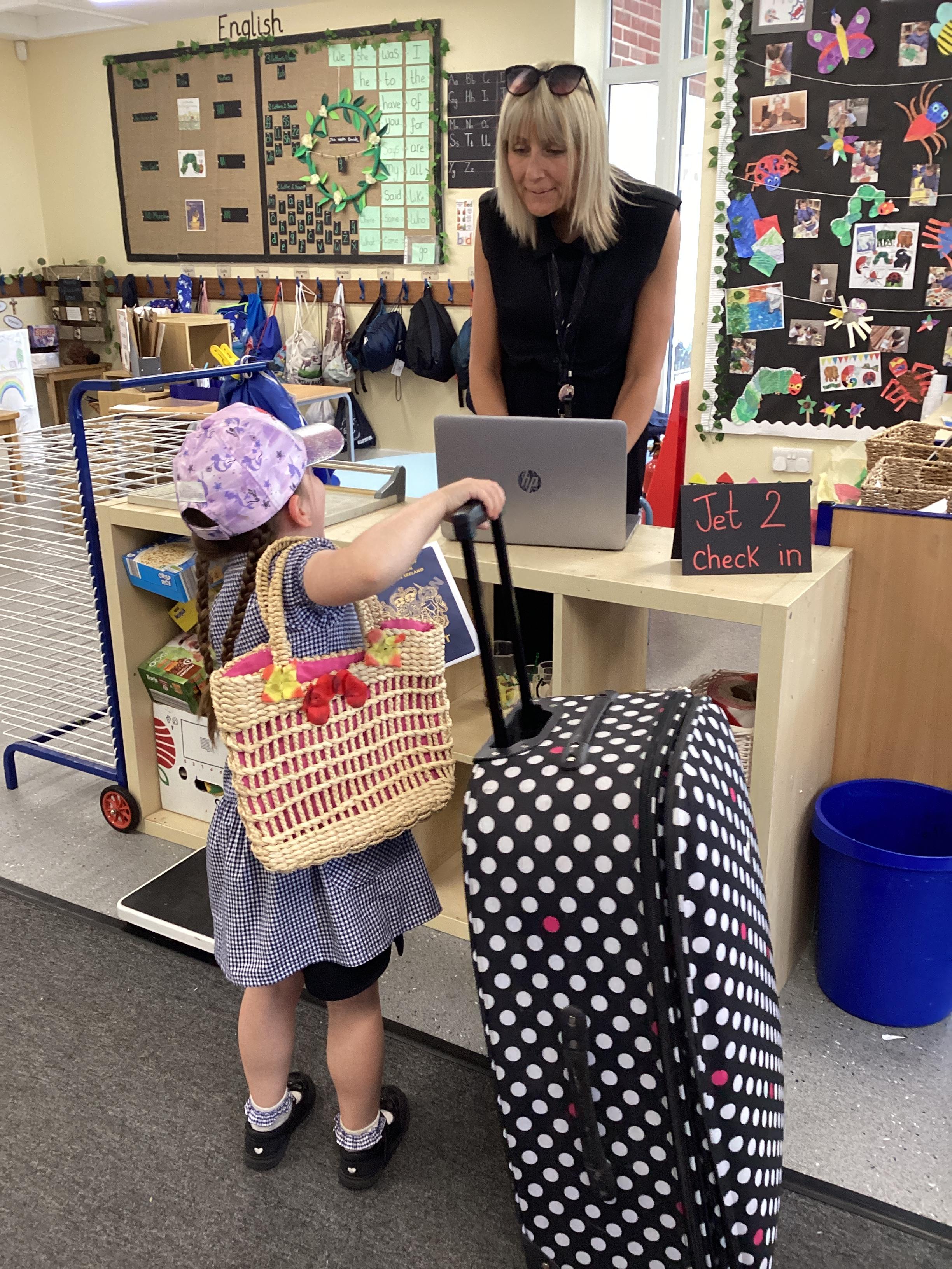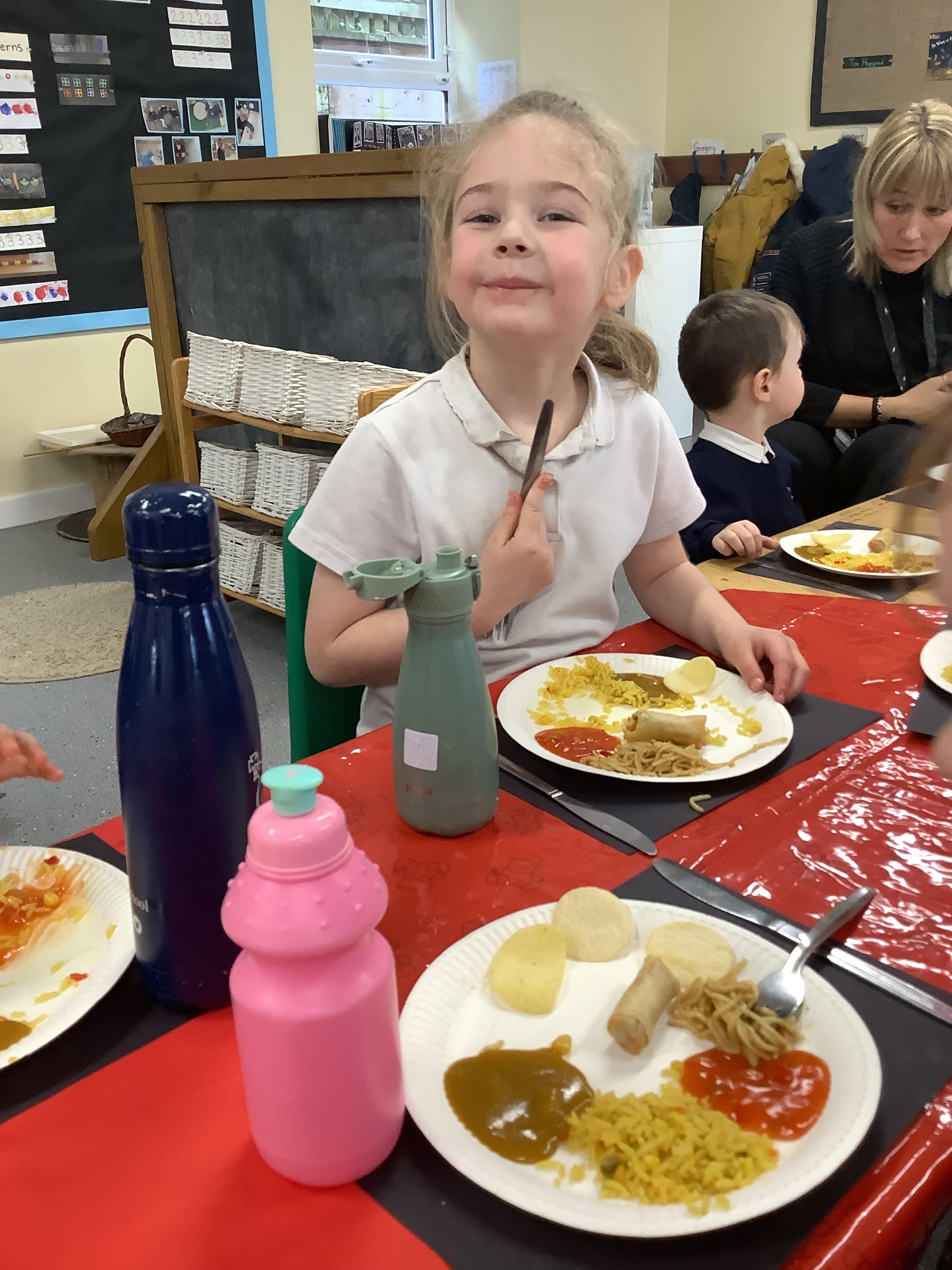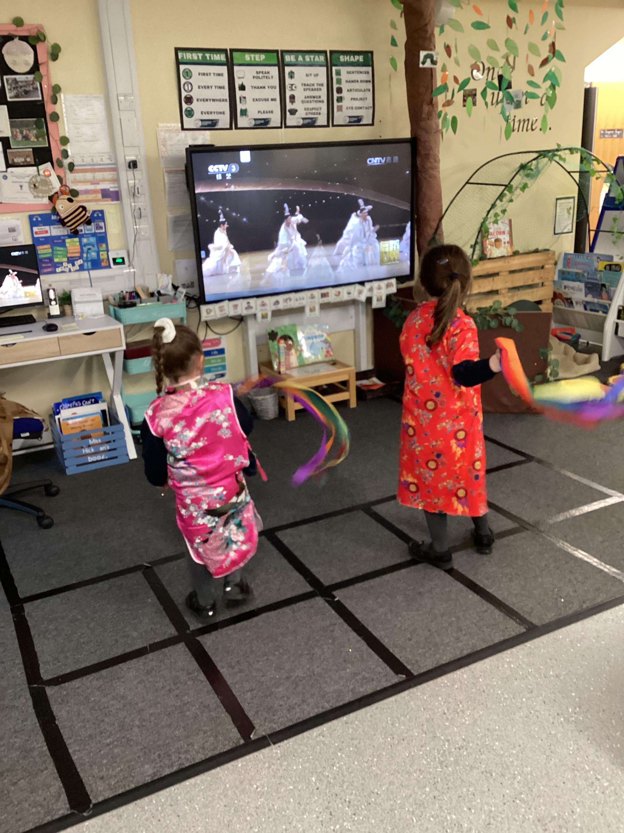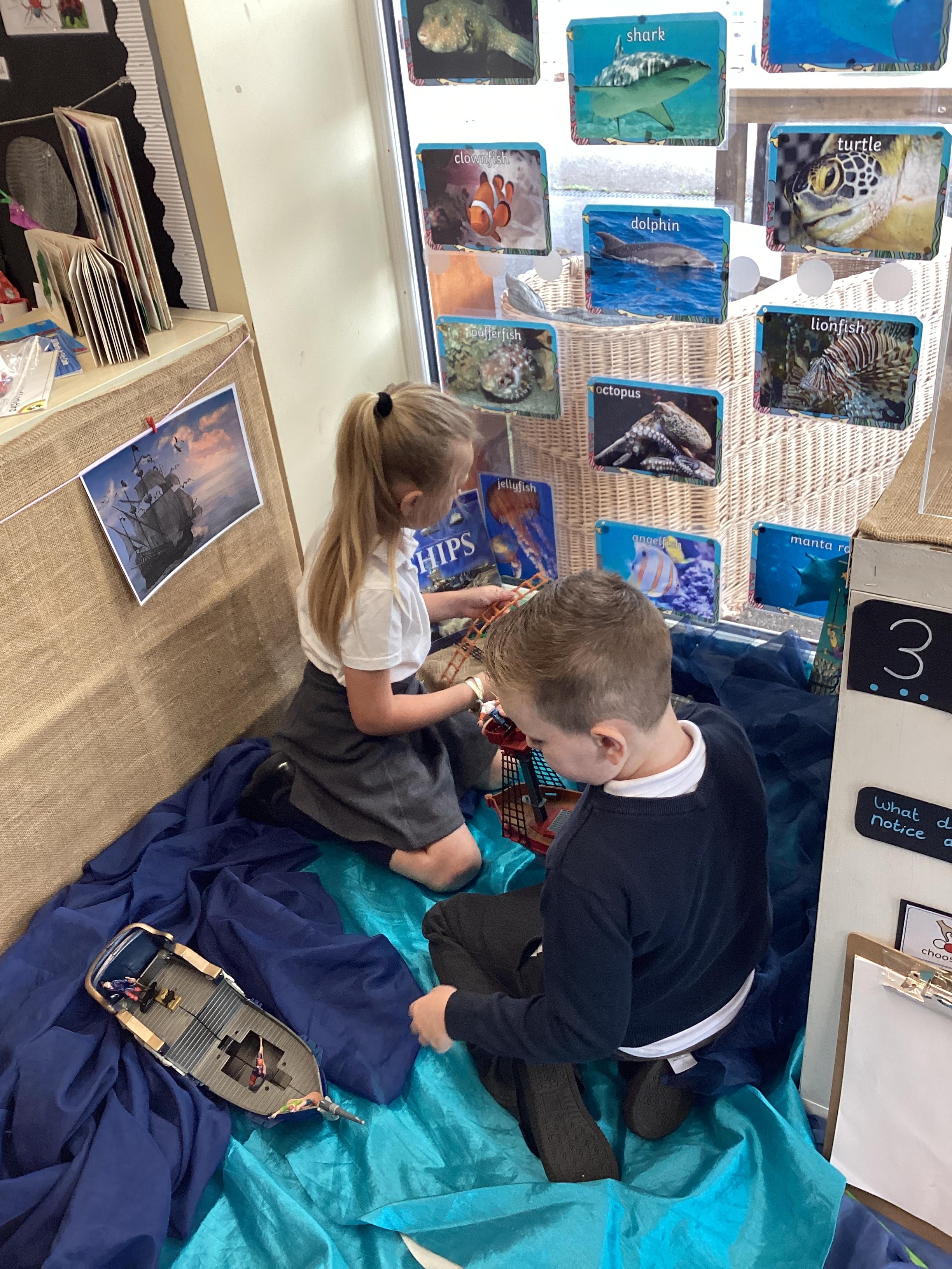 An exciting visit from another EYFS class- February 2024