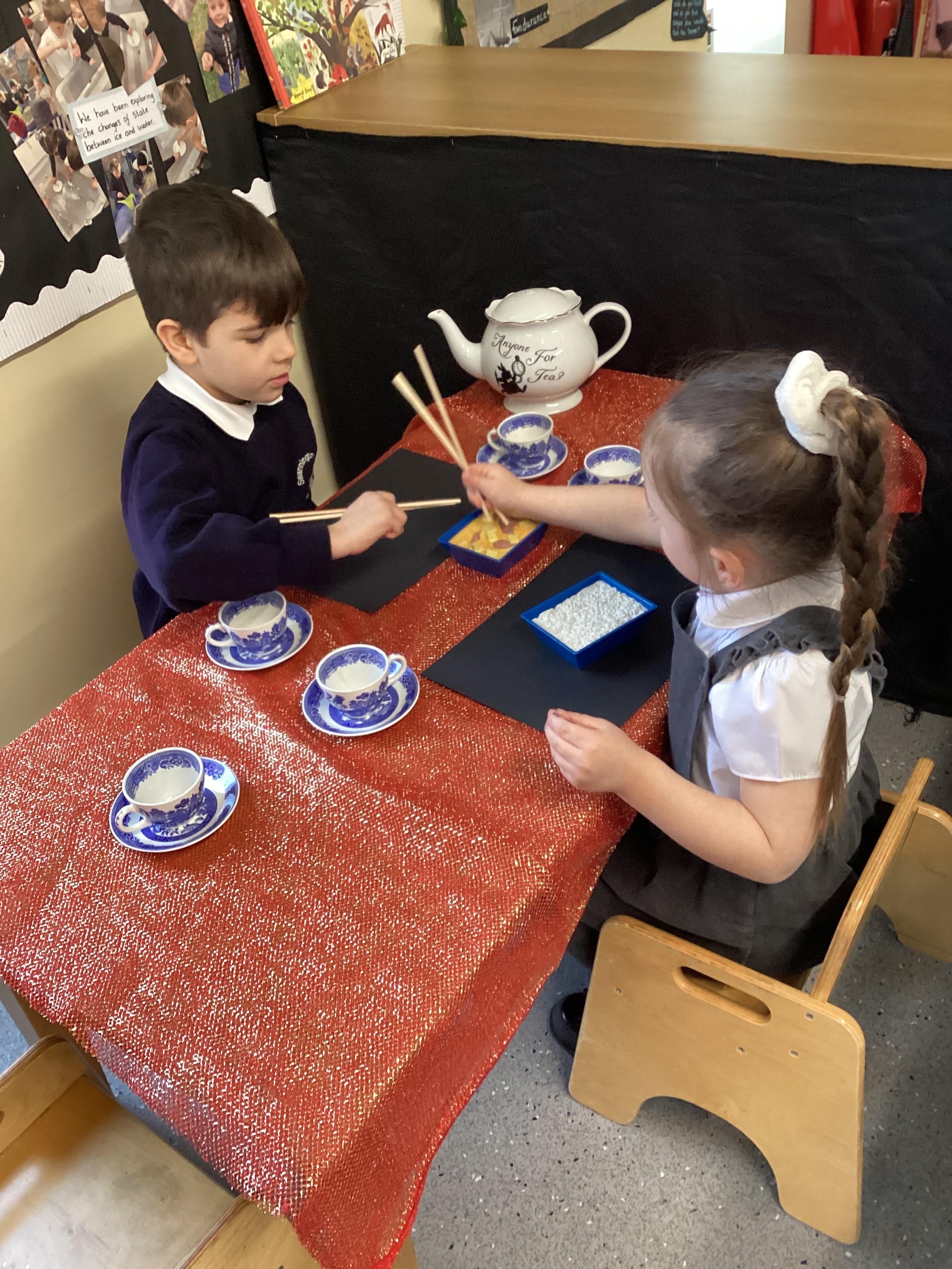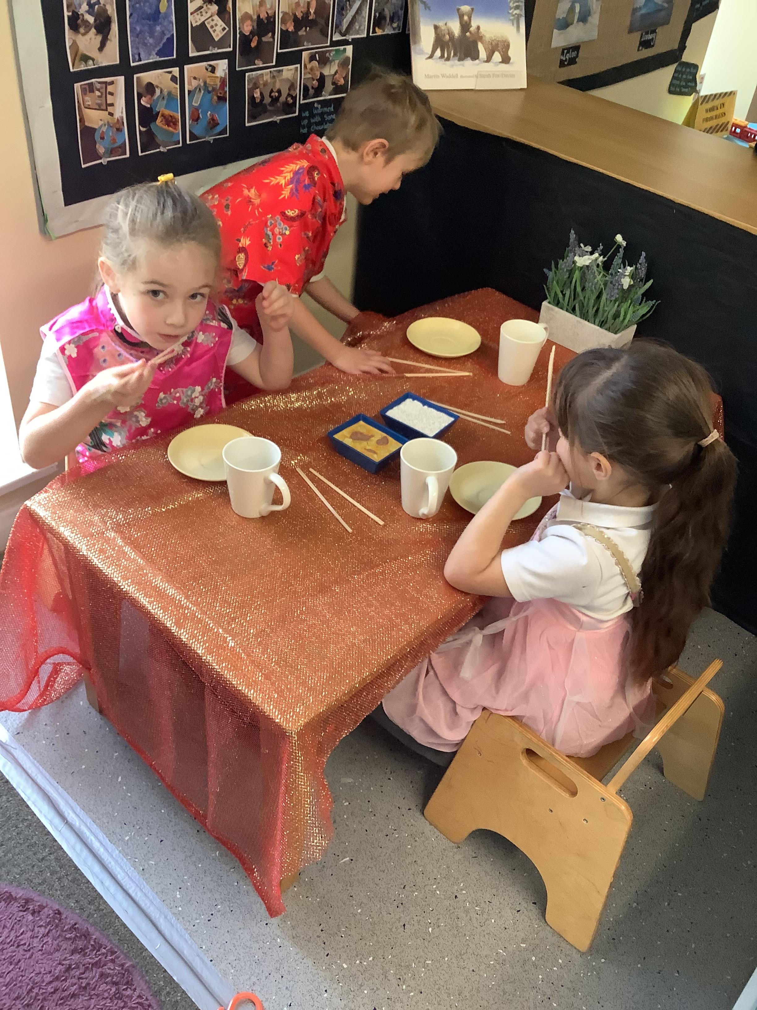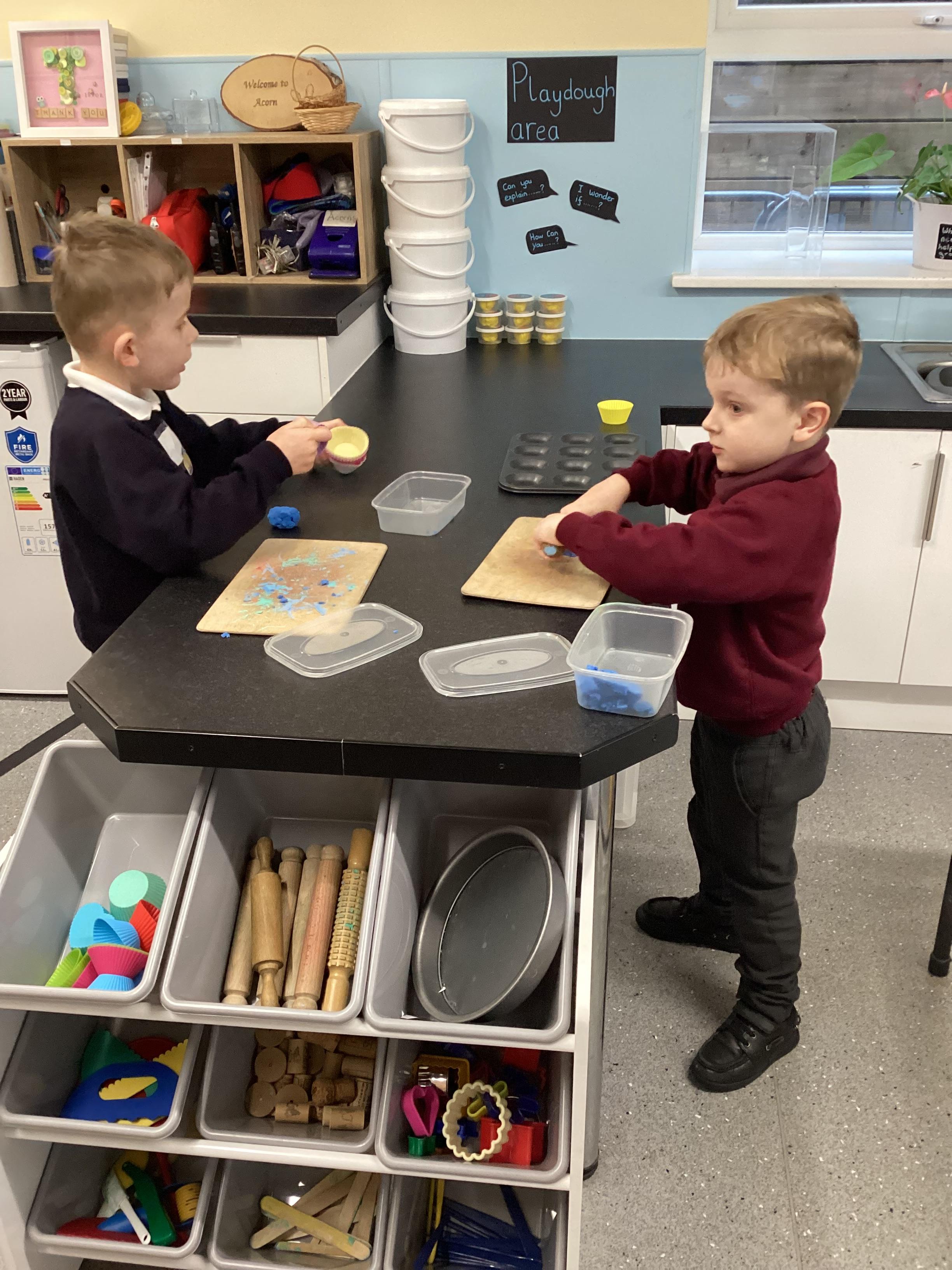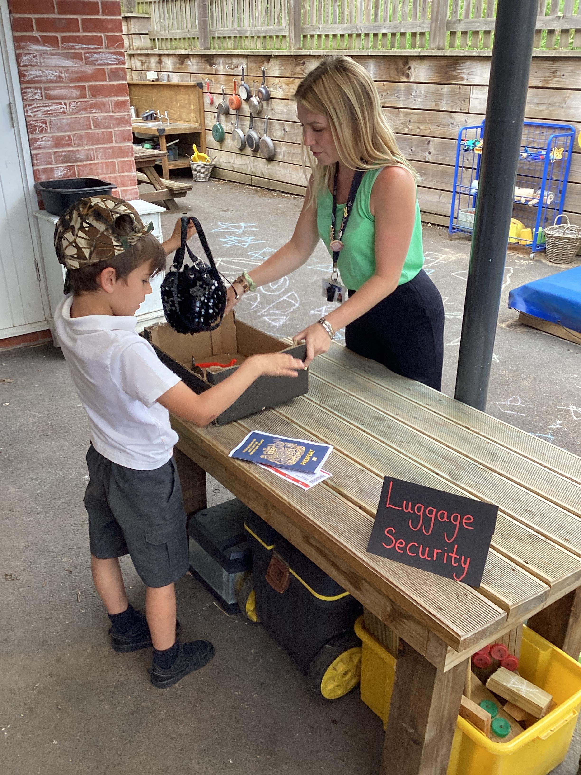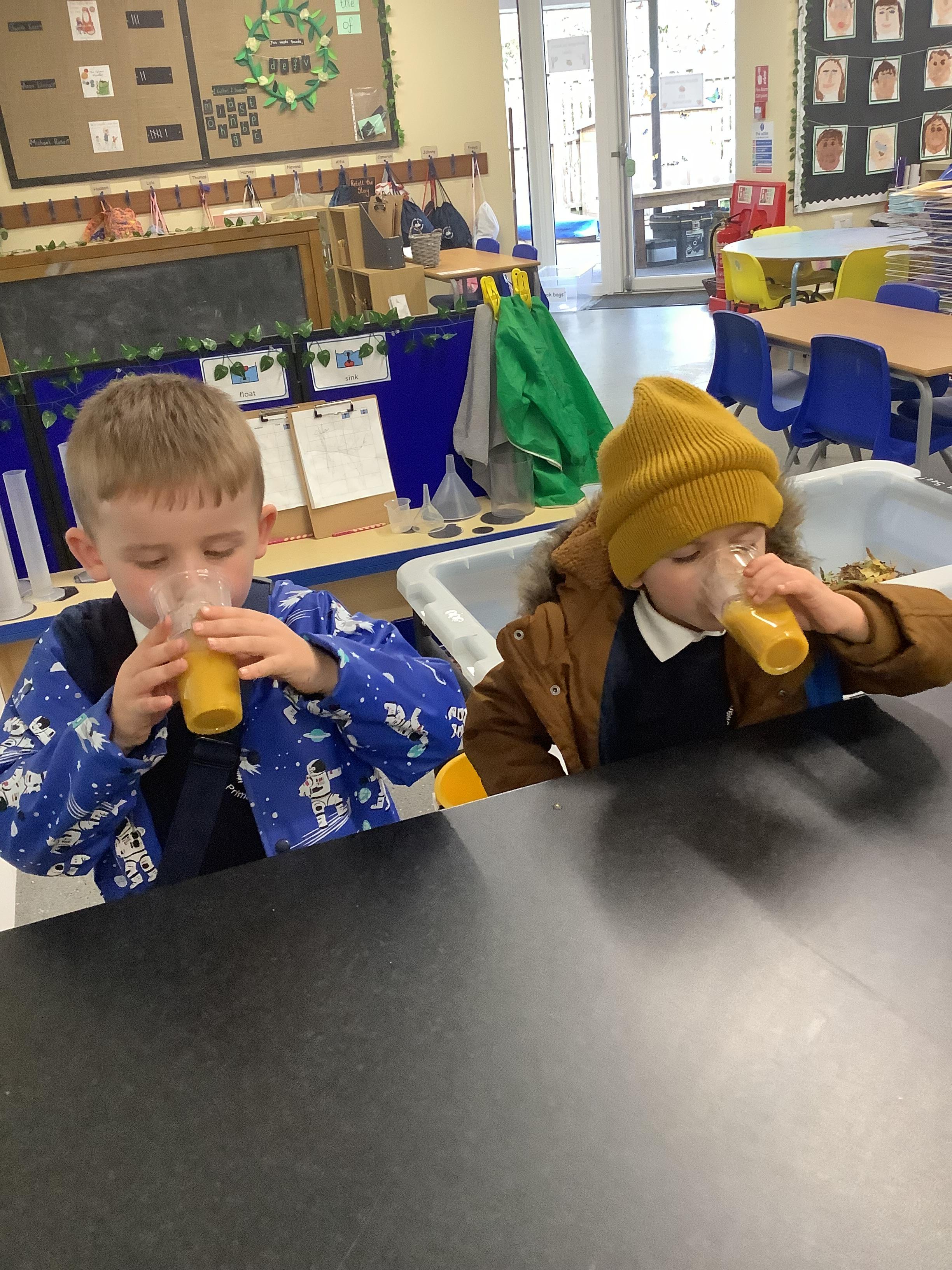 An exciting visit from another EYFS class- February 2024