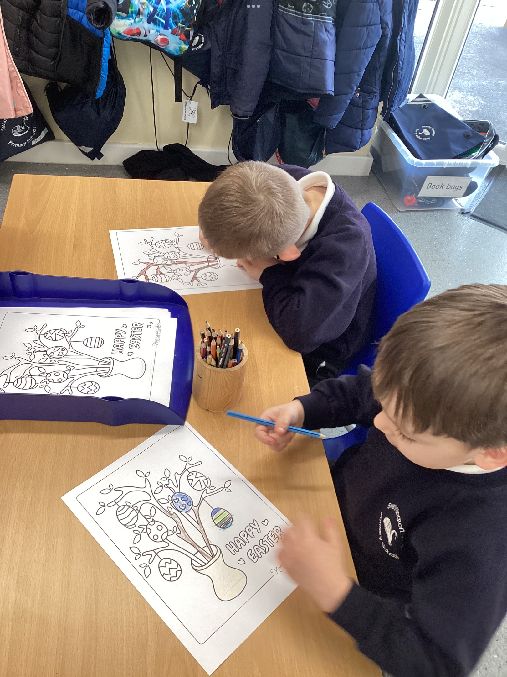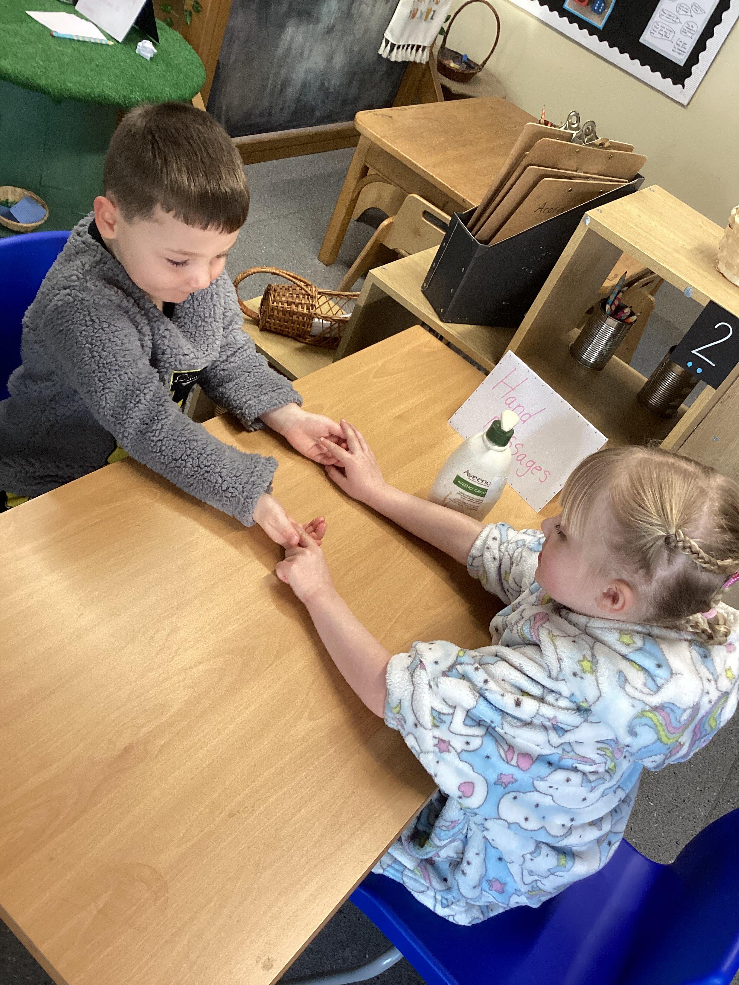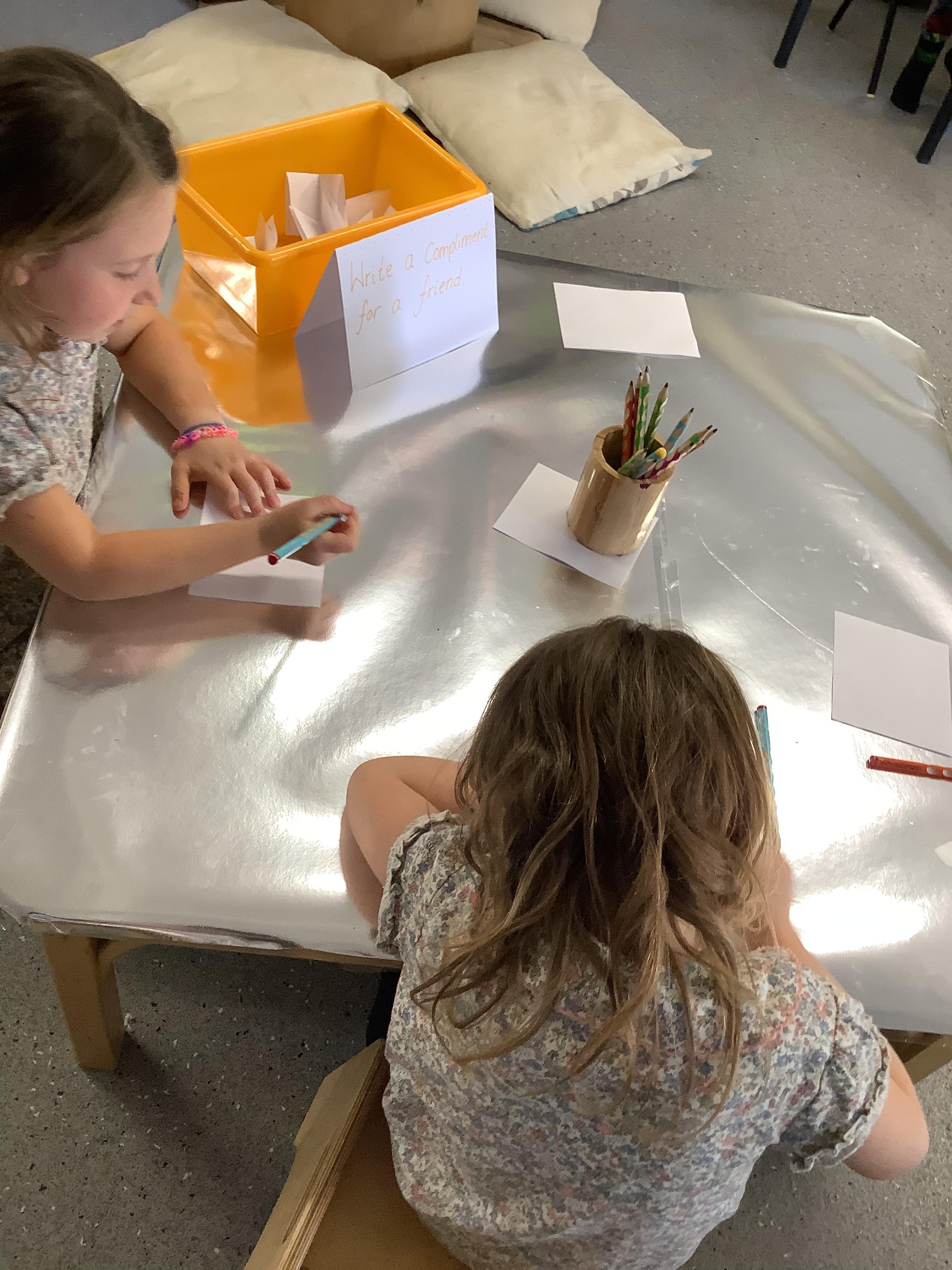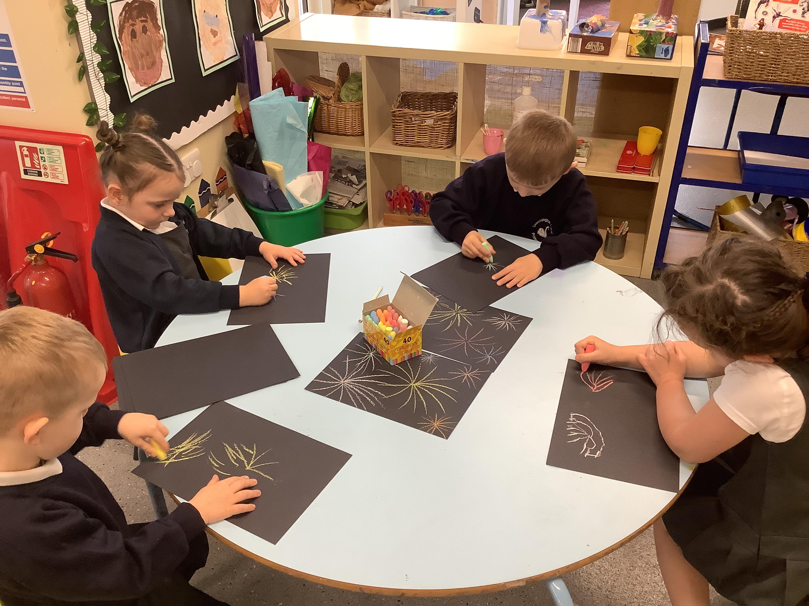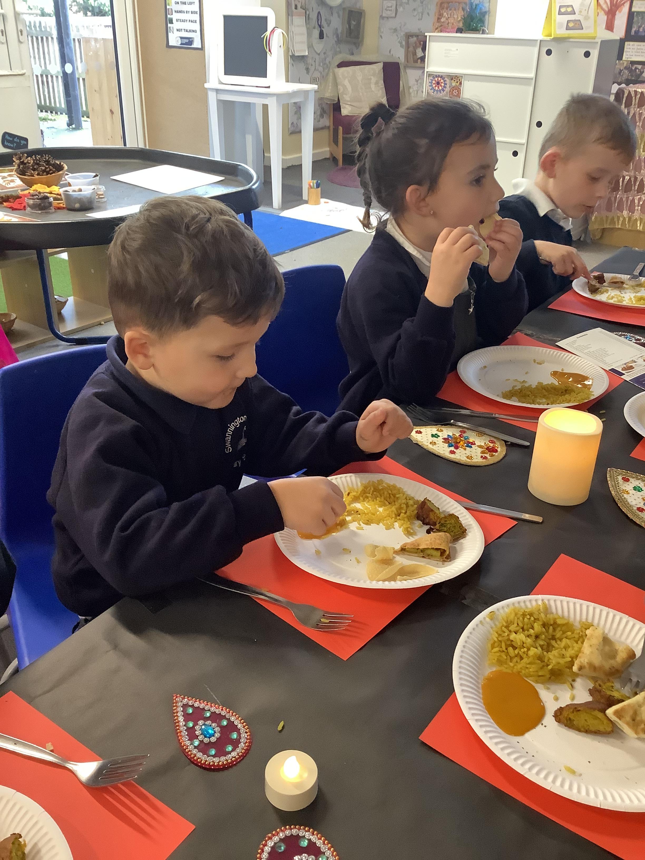 An exciting visit from another EYFS class- February 2024