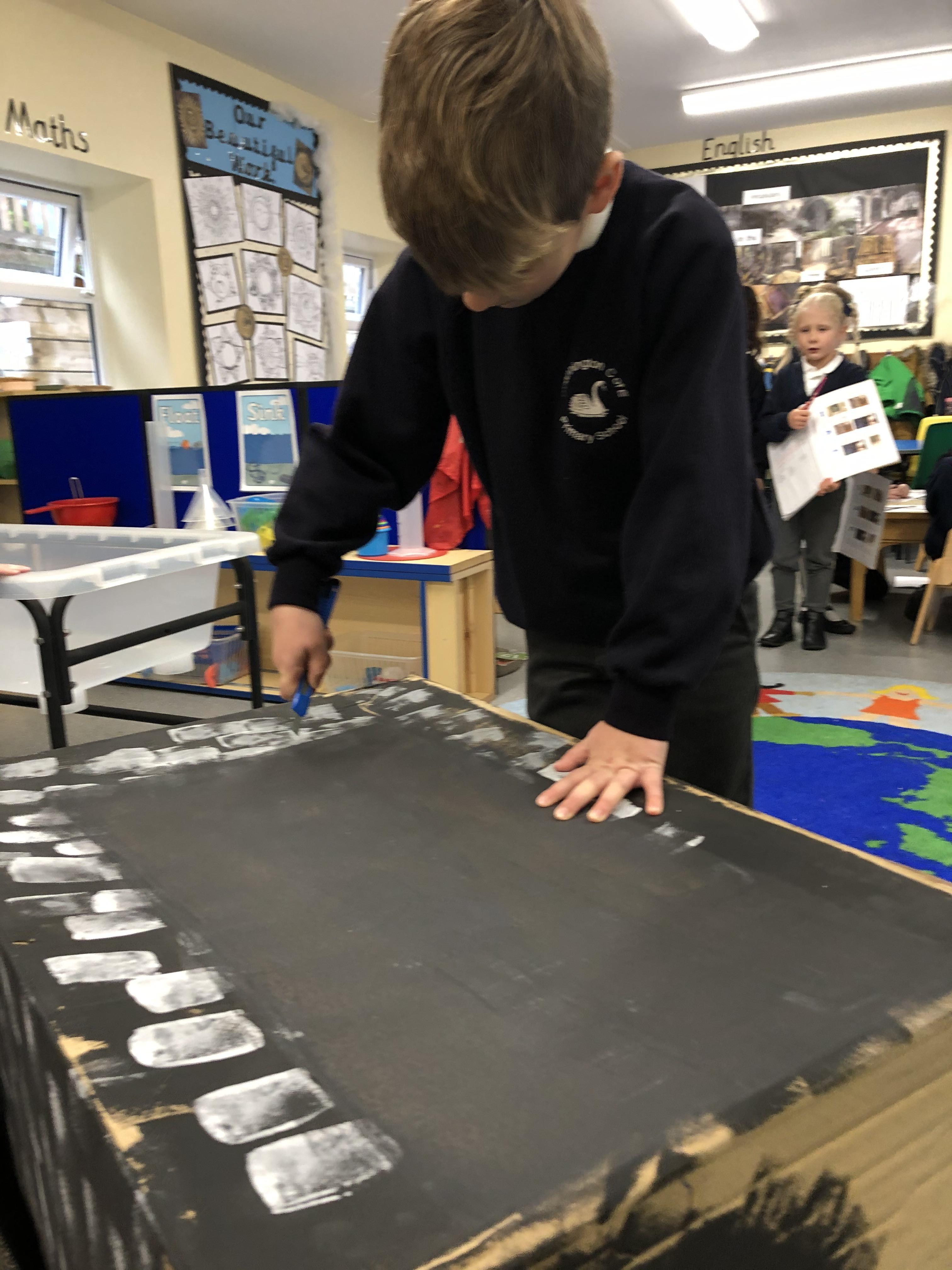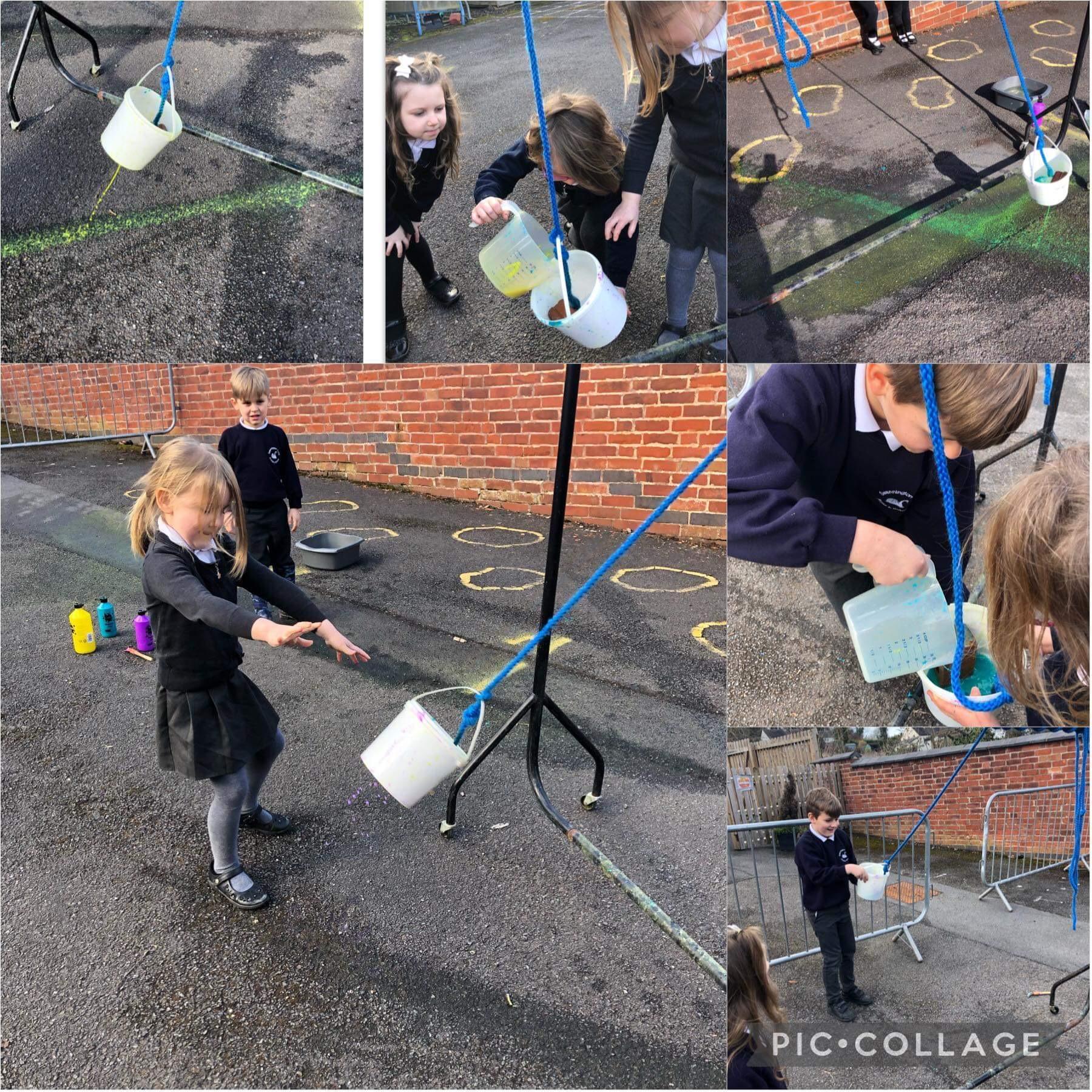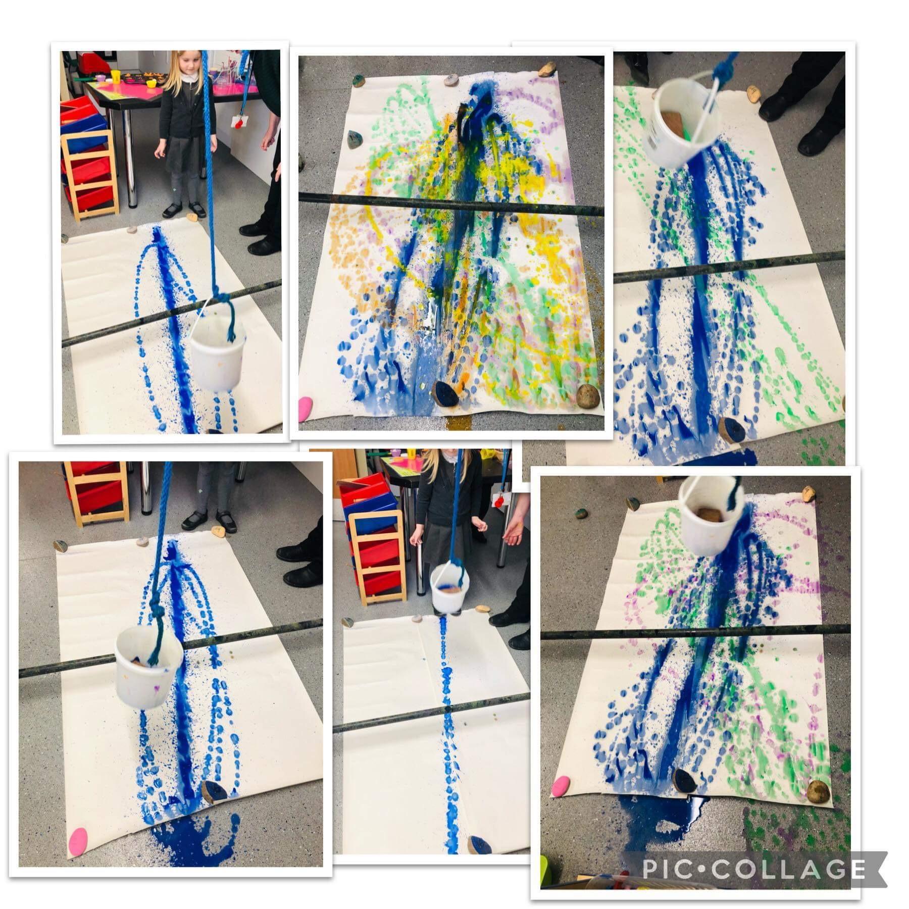 Art using a pendulum. Part of our investigations for Science Week.