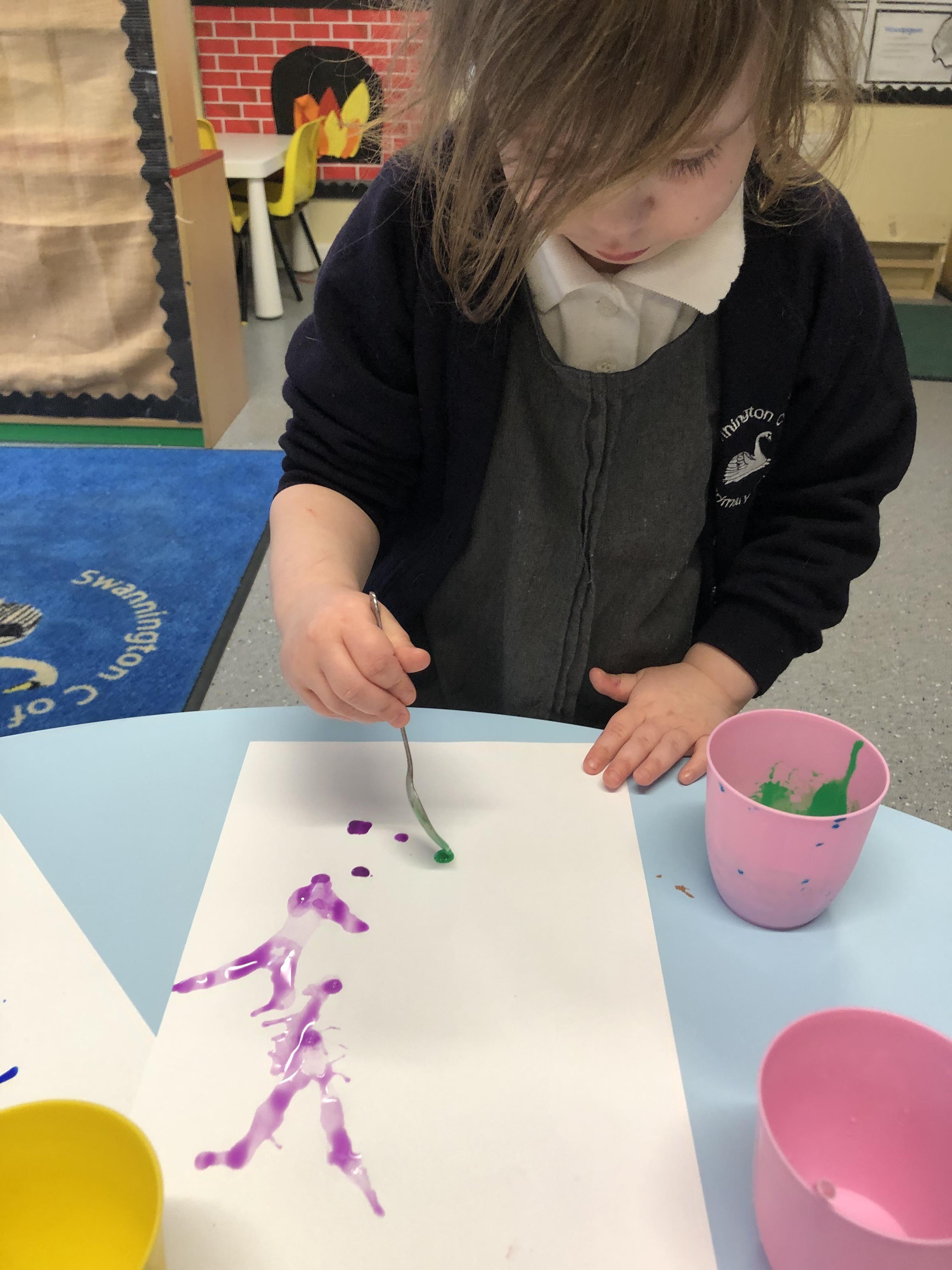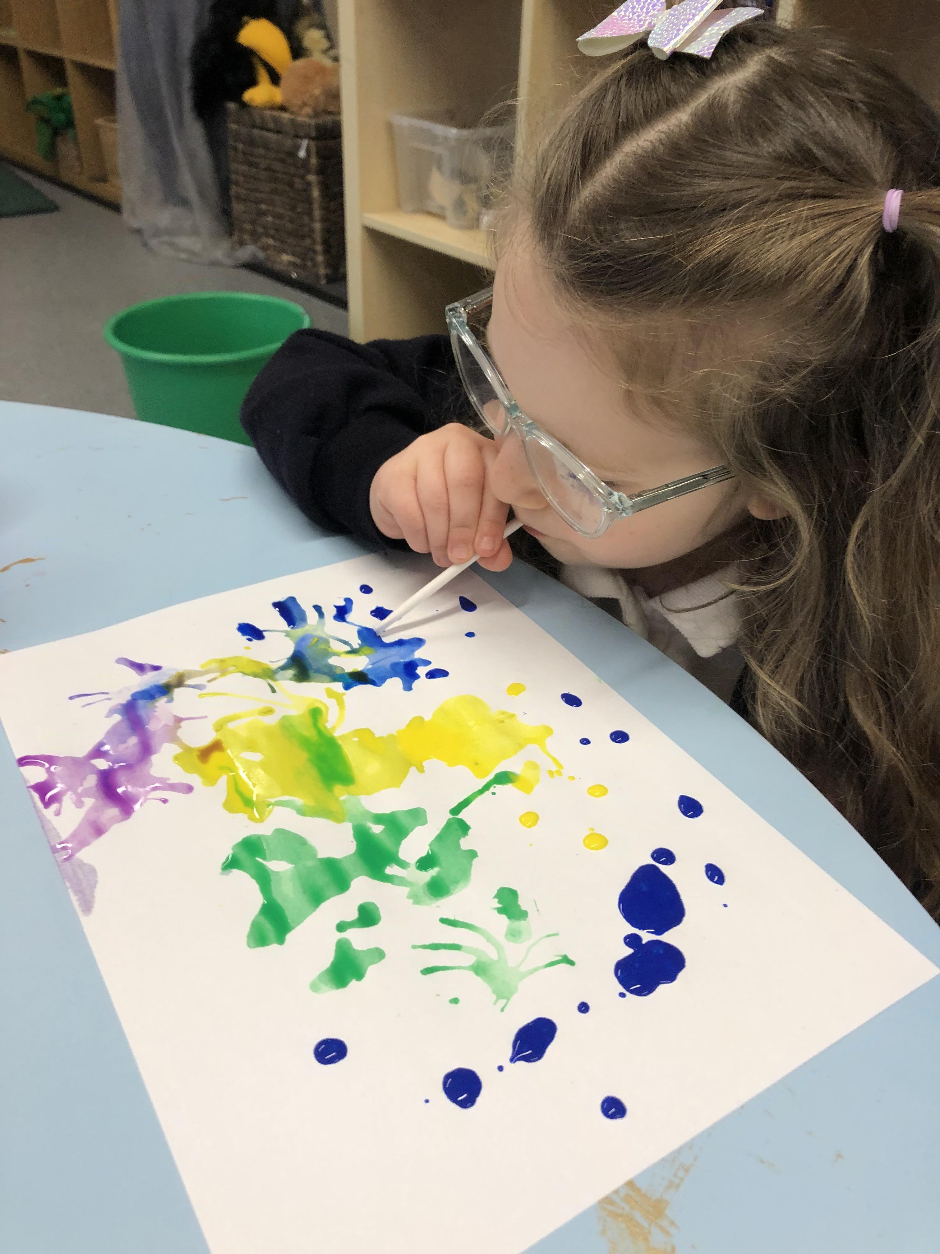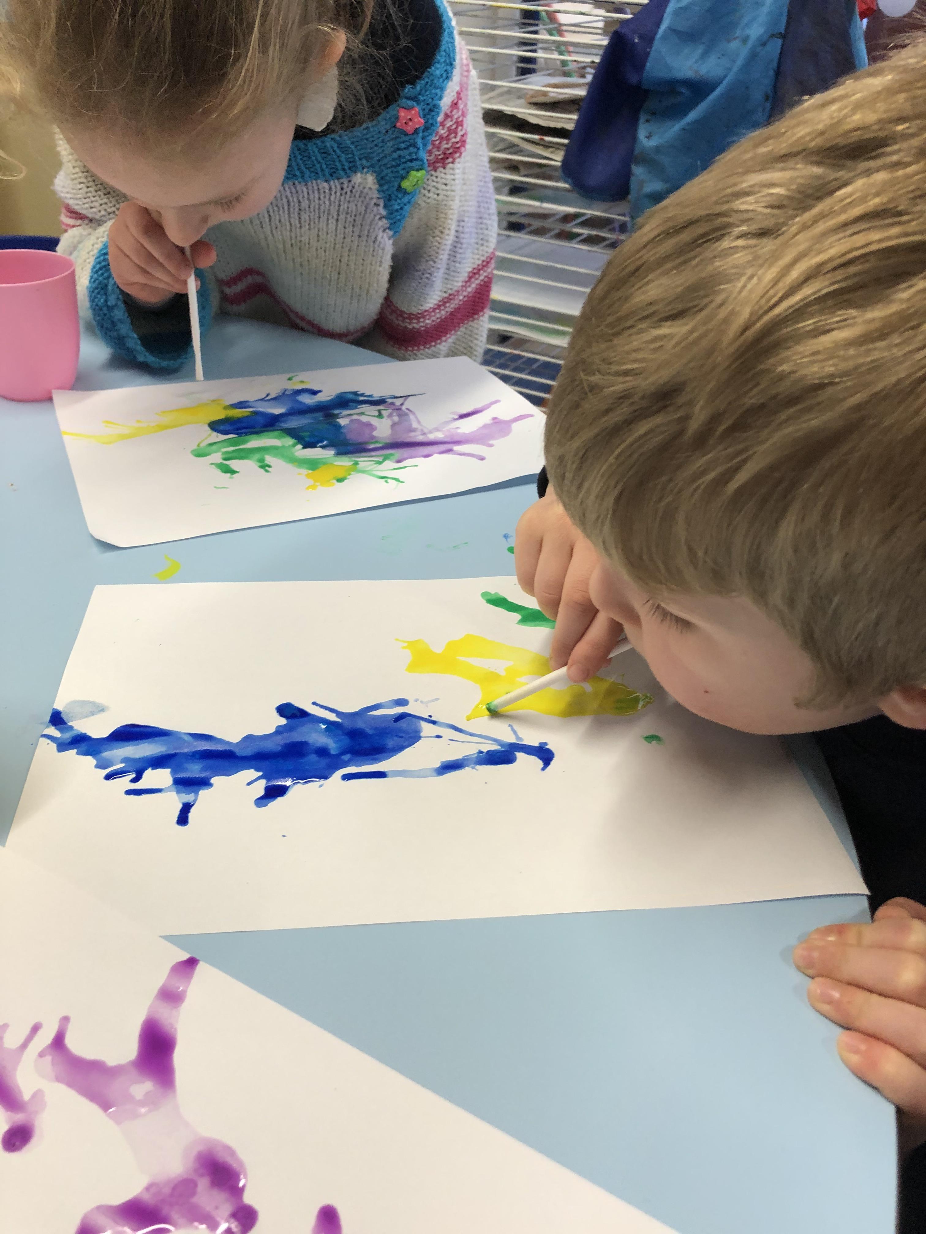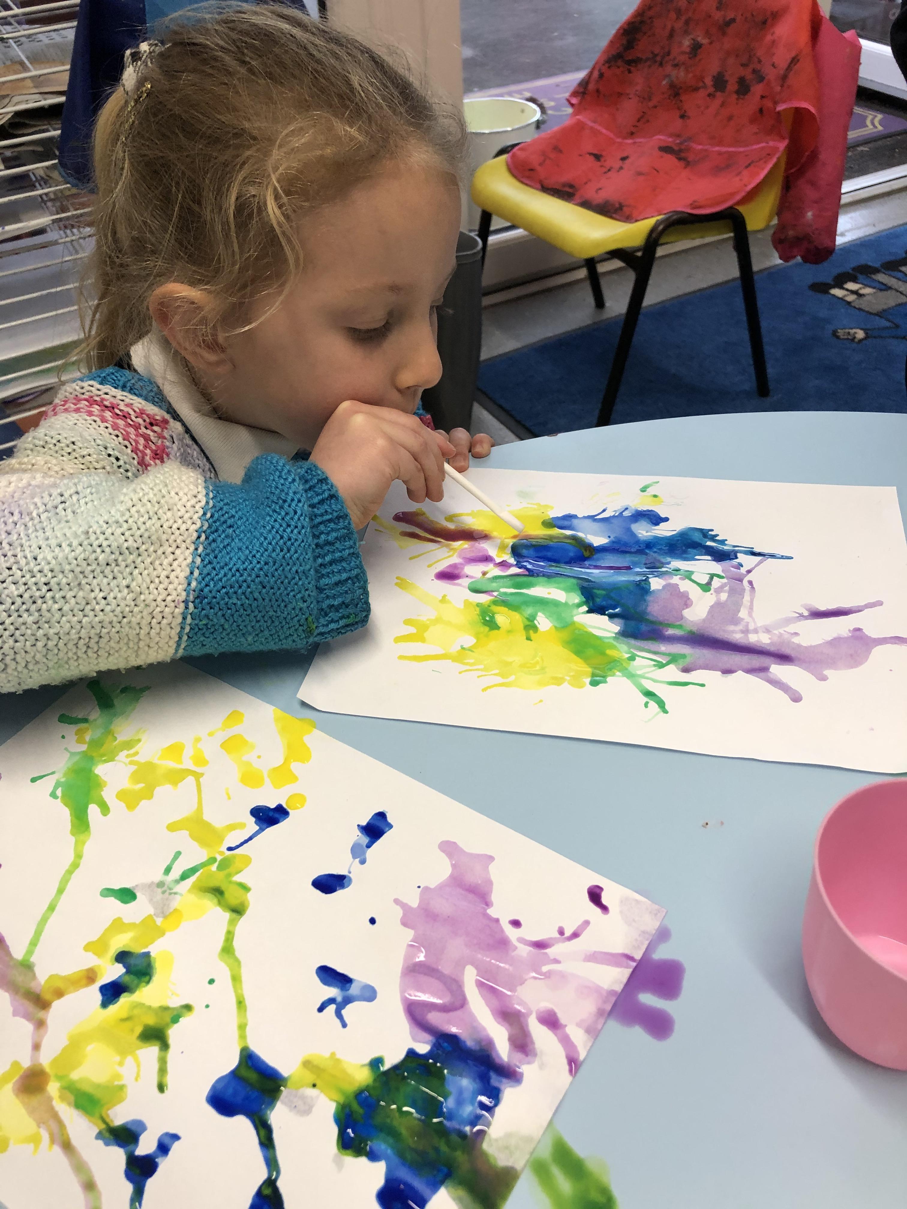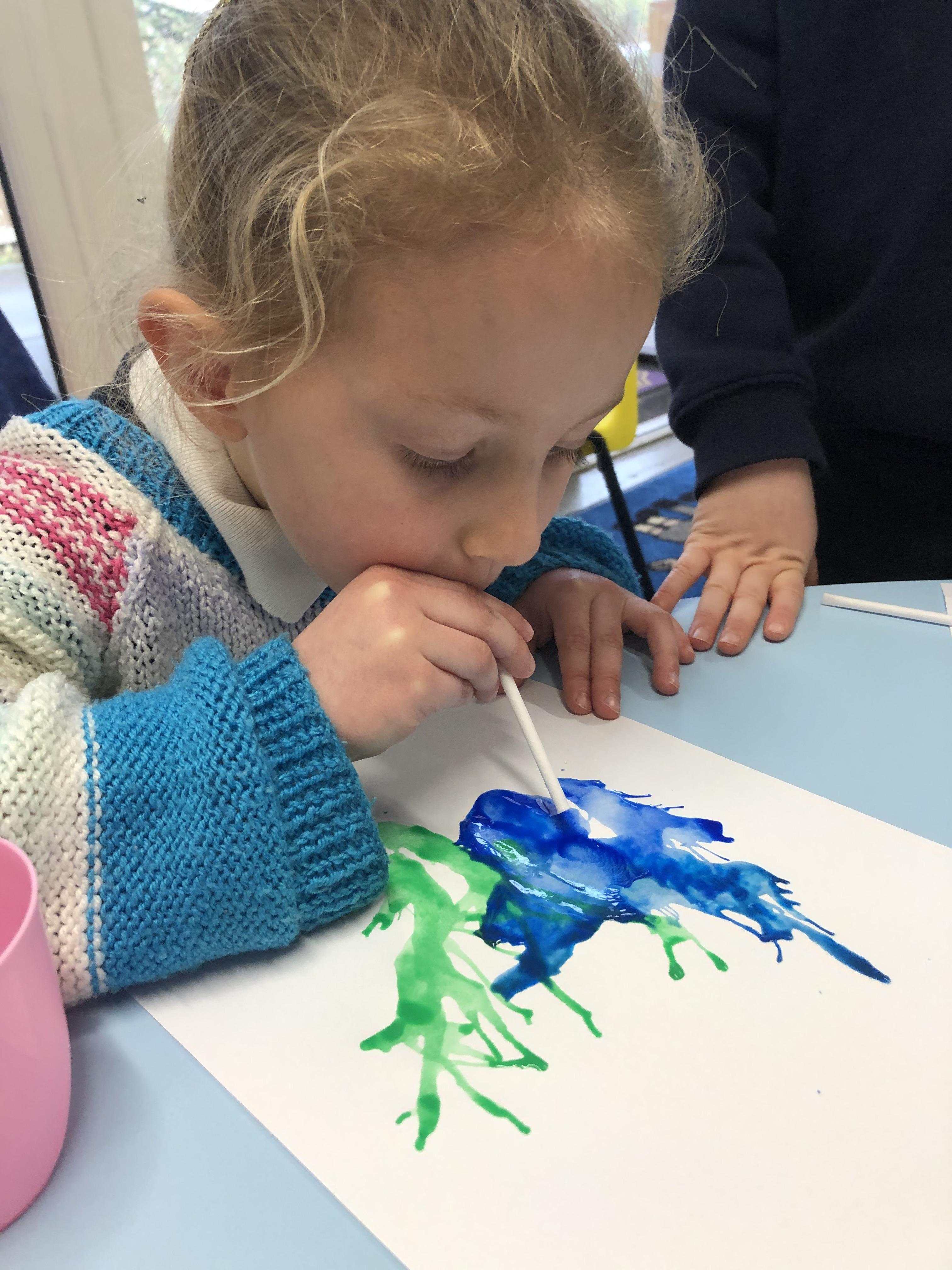 Air painting. As part of our investigations into air we explored how we can manipulate paint through using our breath and a straw.