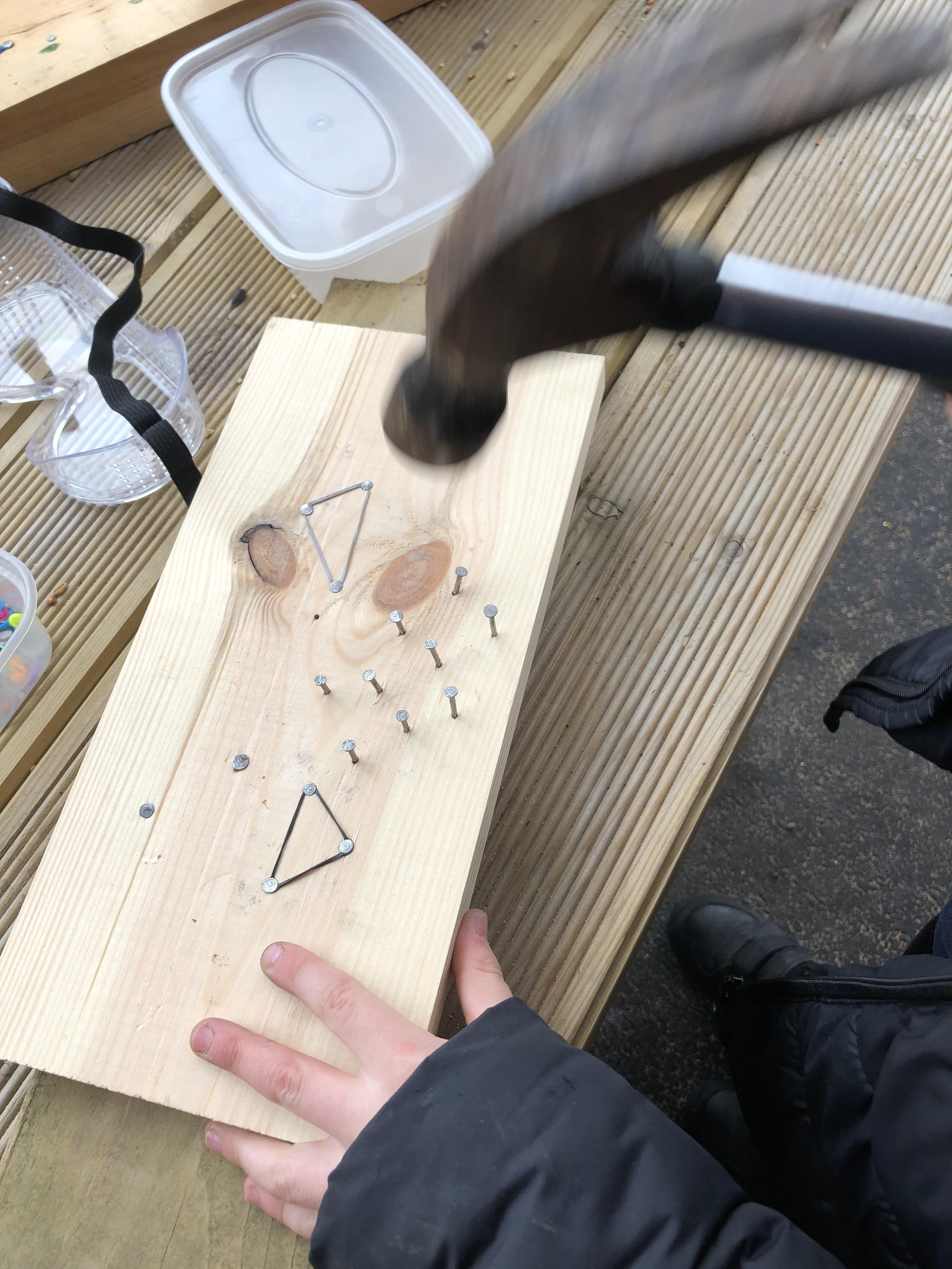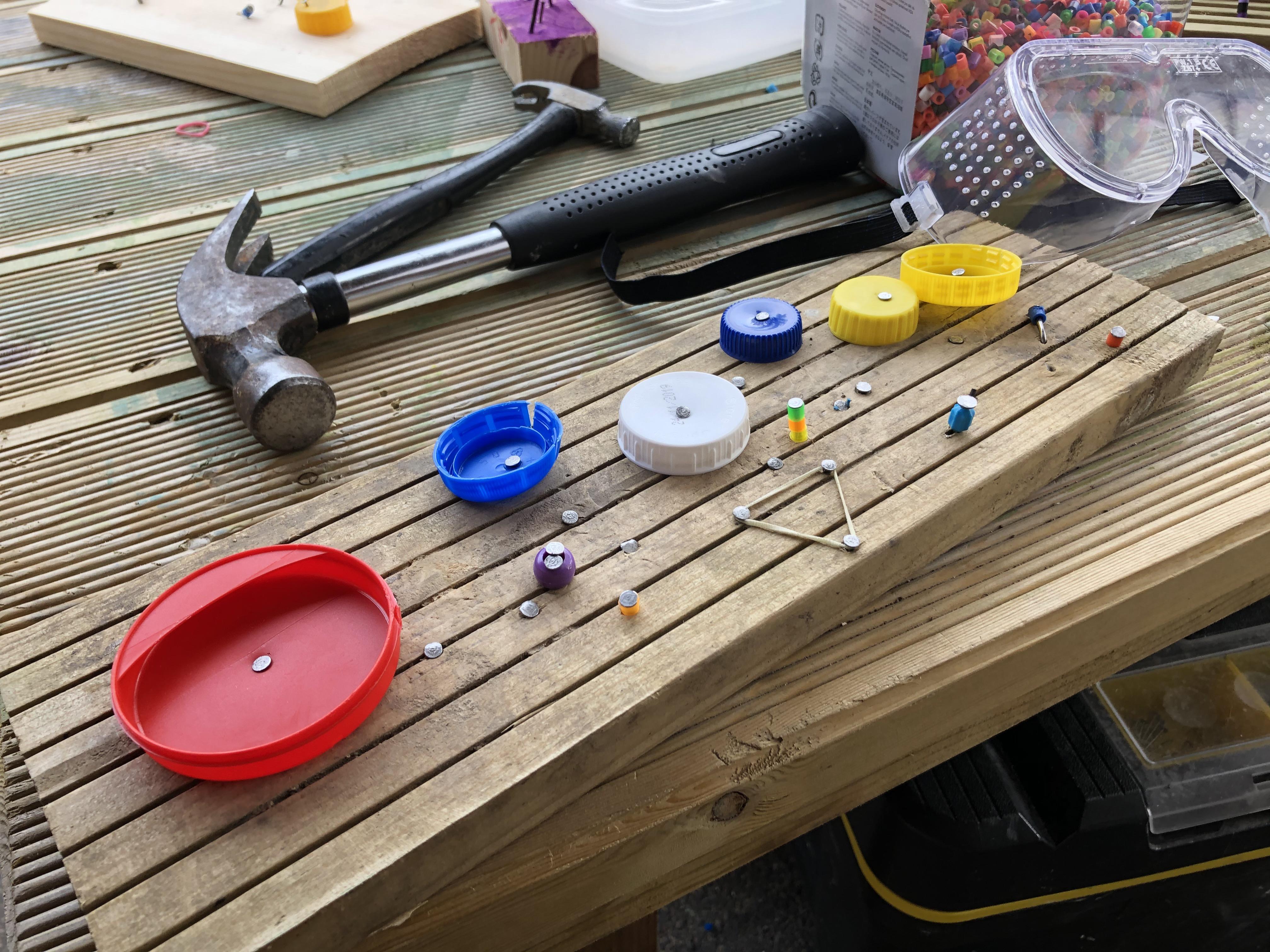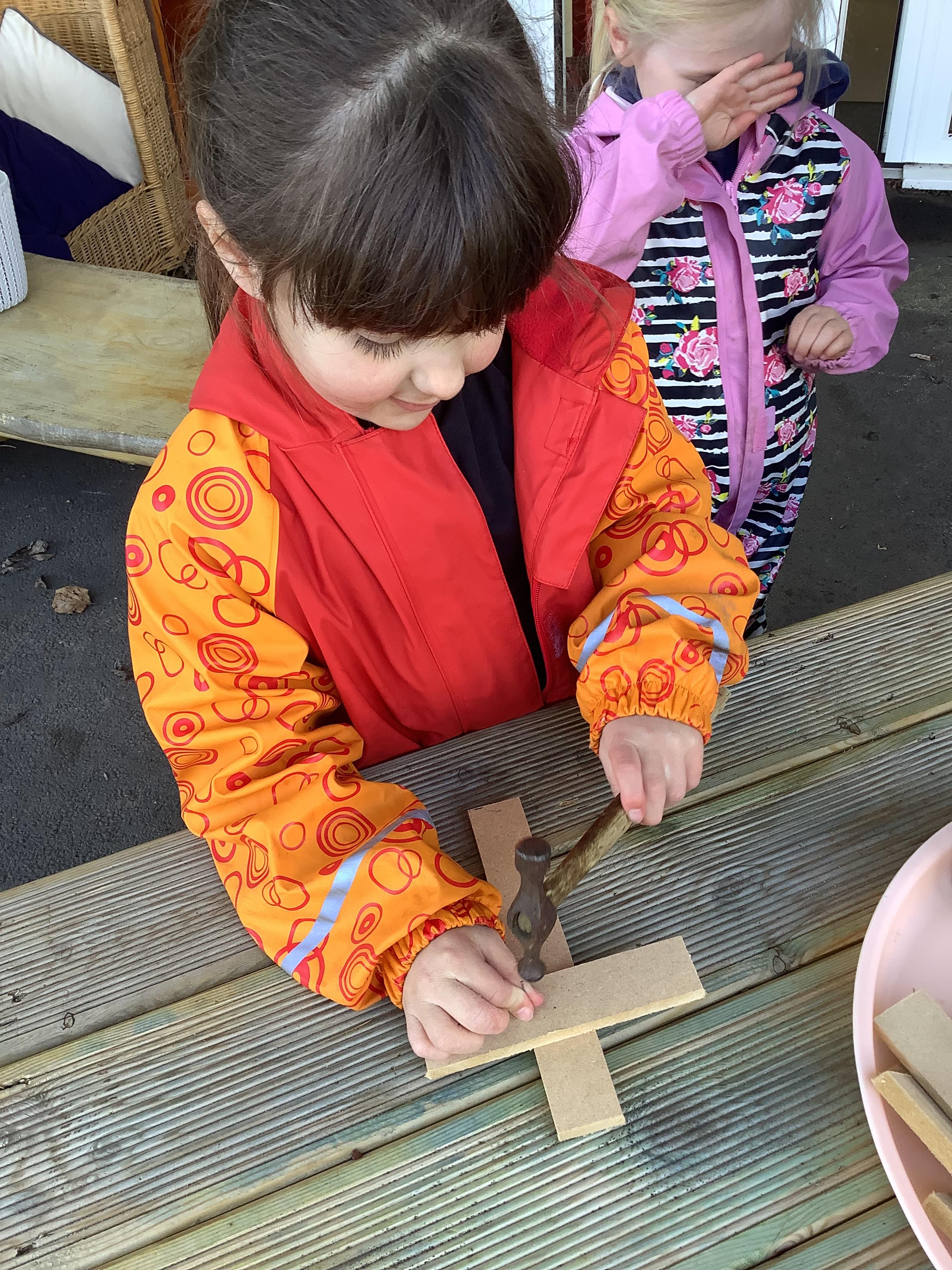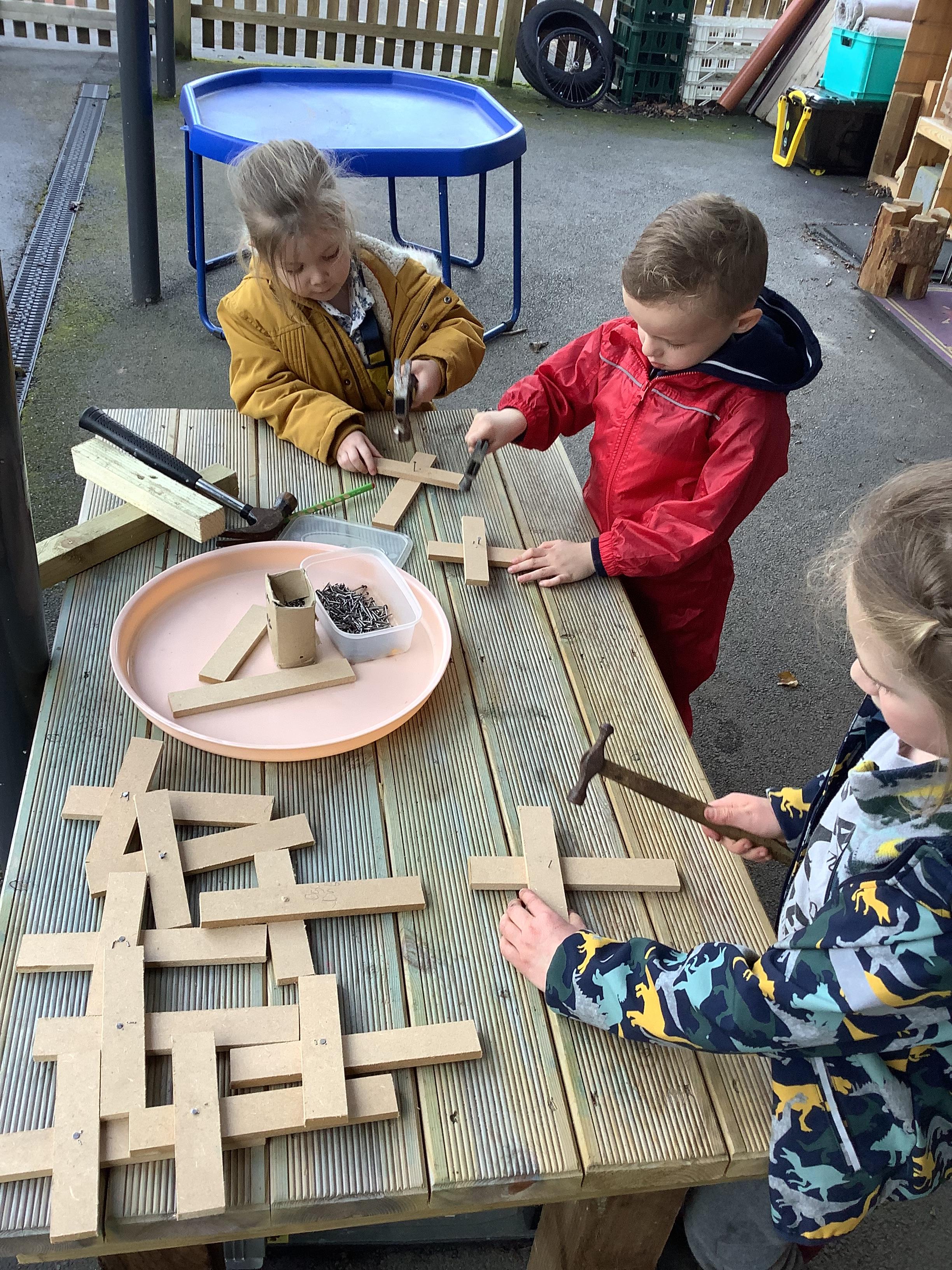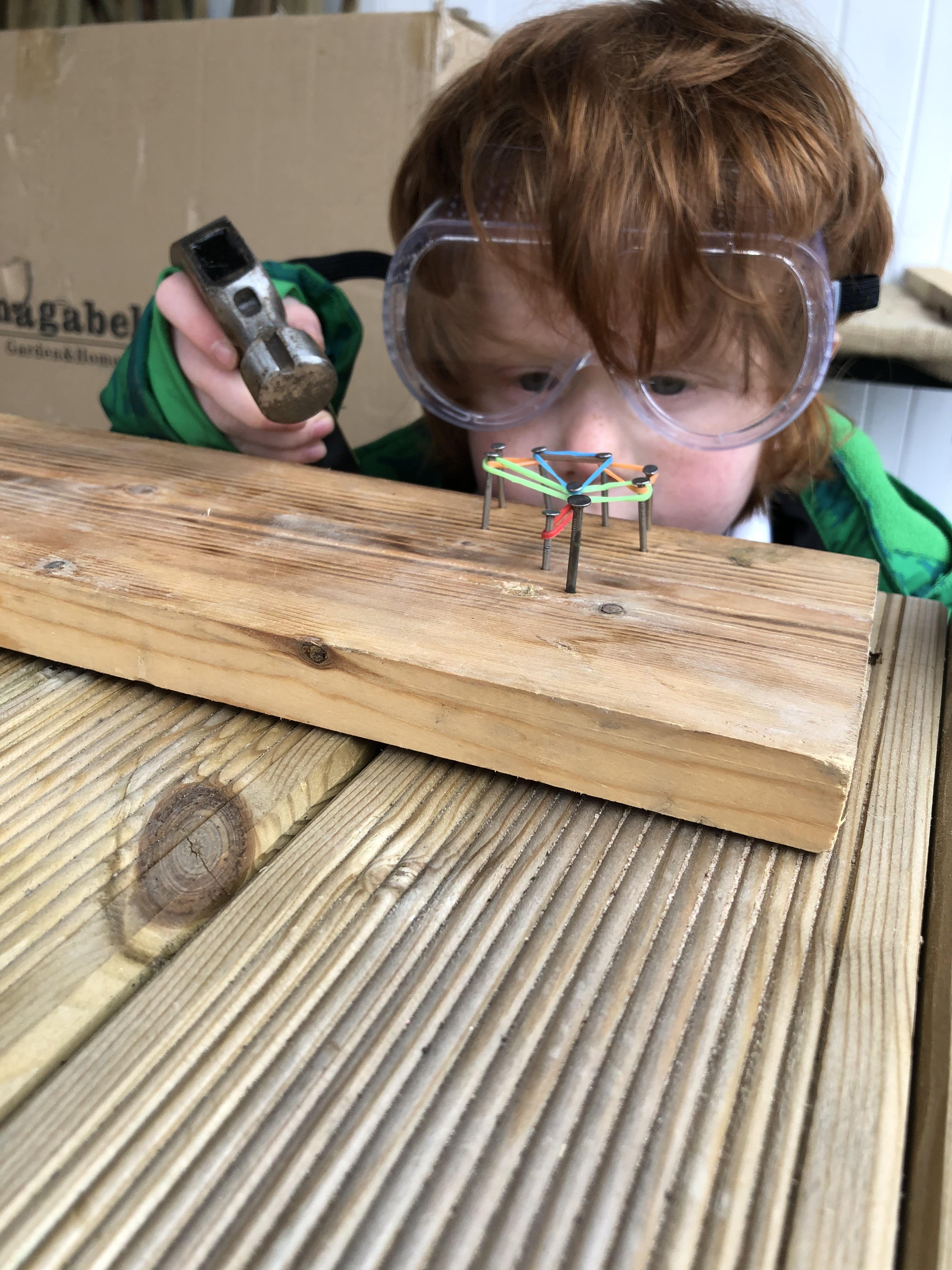 Hammers + nails + loose parts + children = fabulously creative wood work