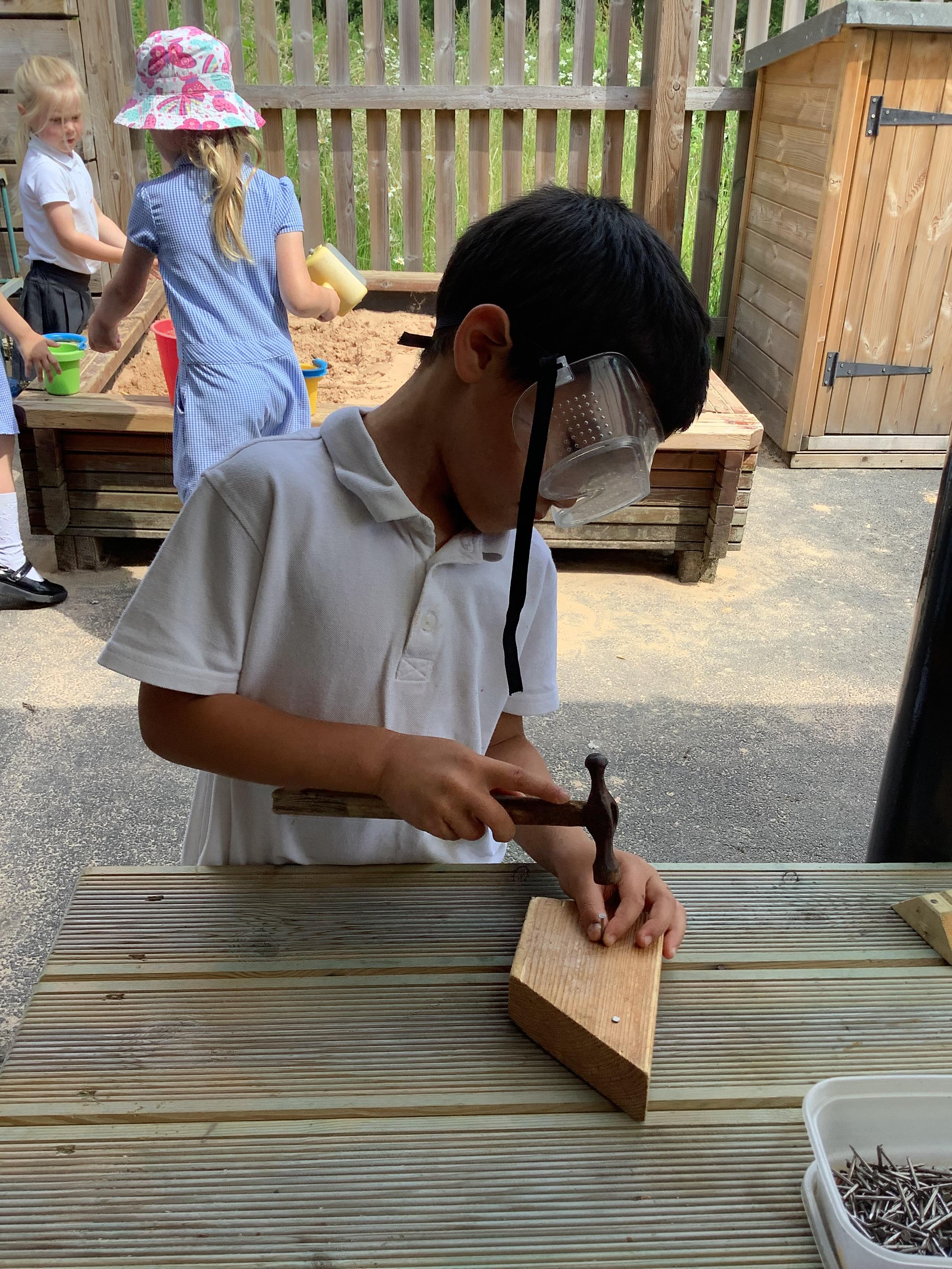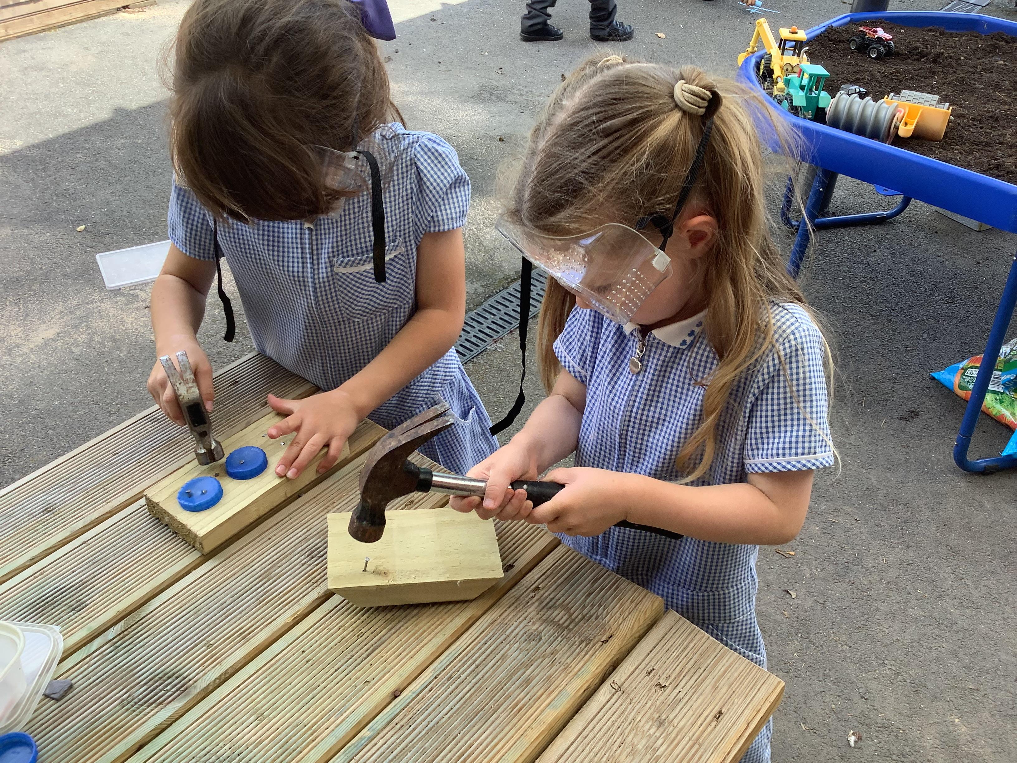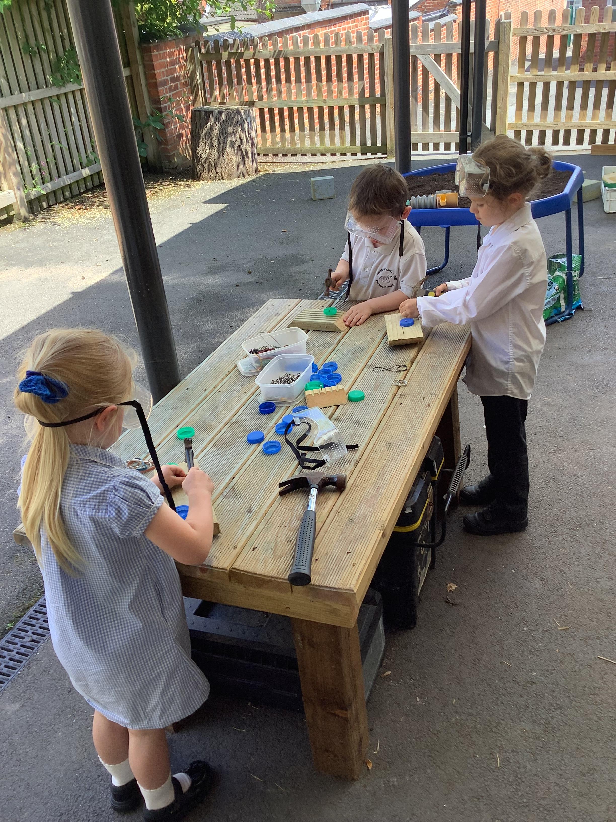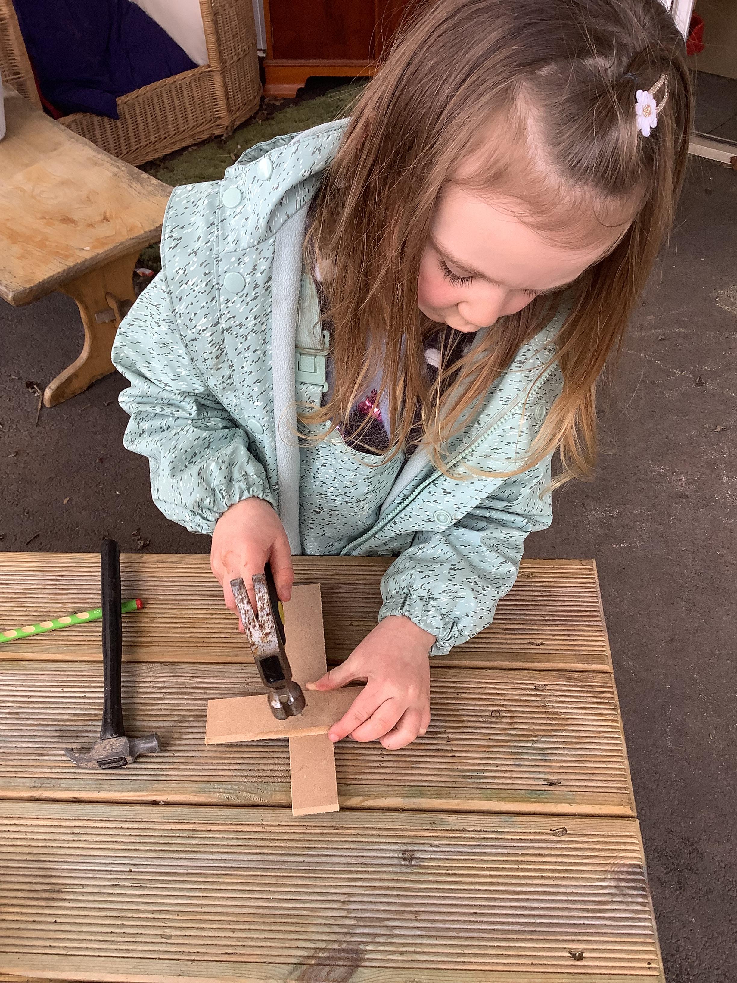 Hammers + nails + loose parts + children = fabulously creative wood work