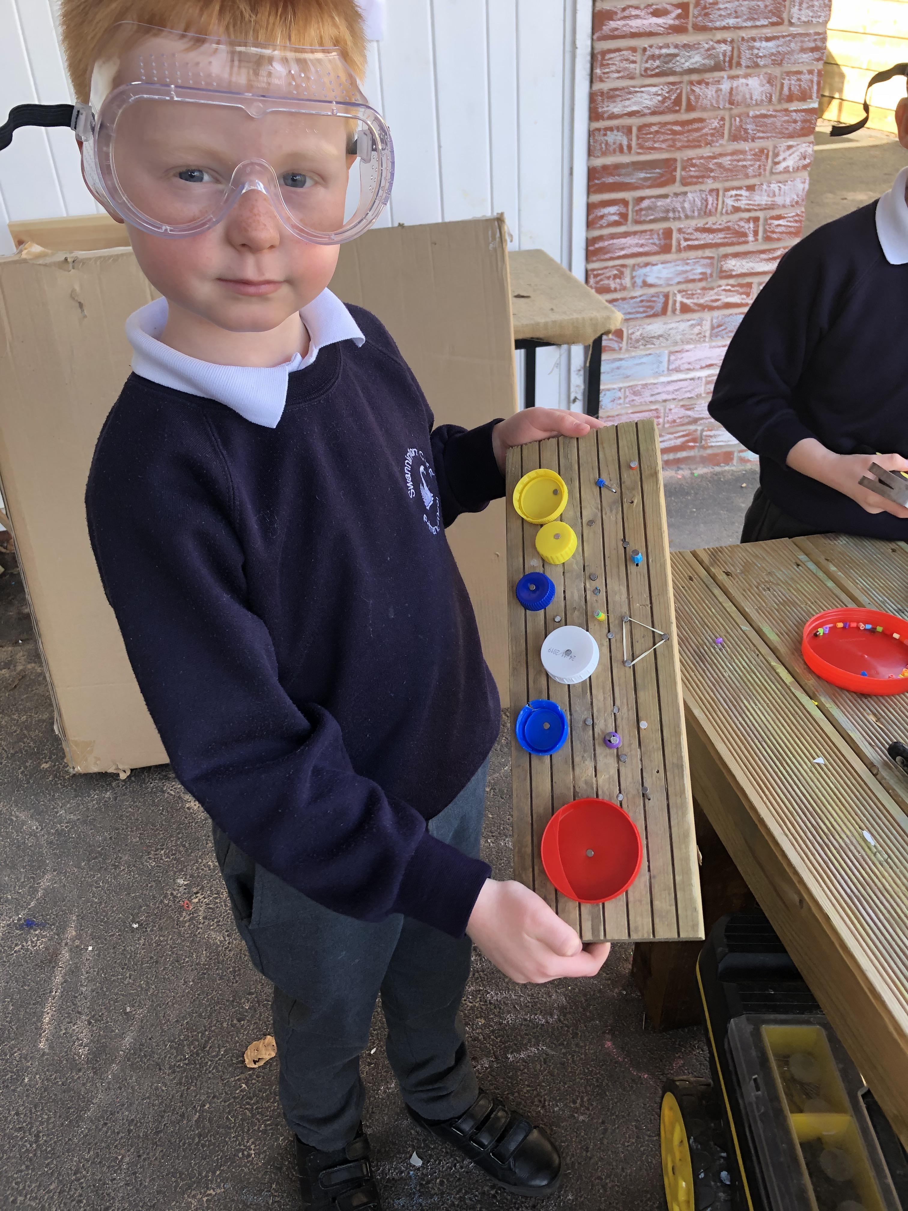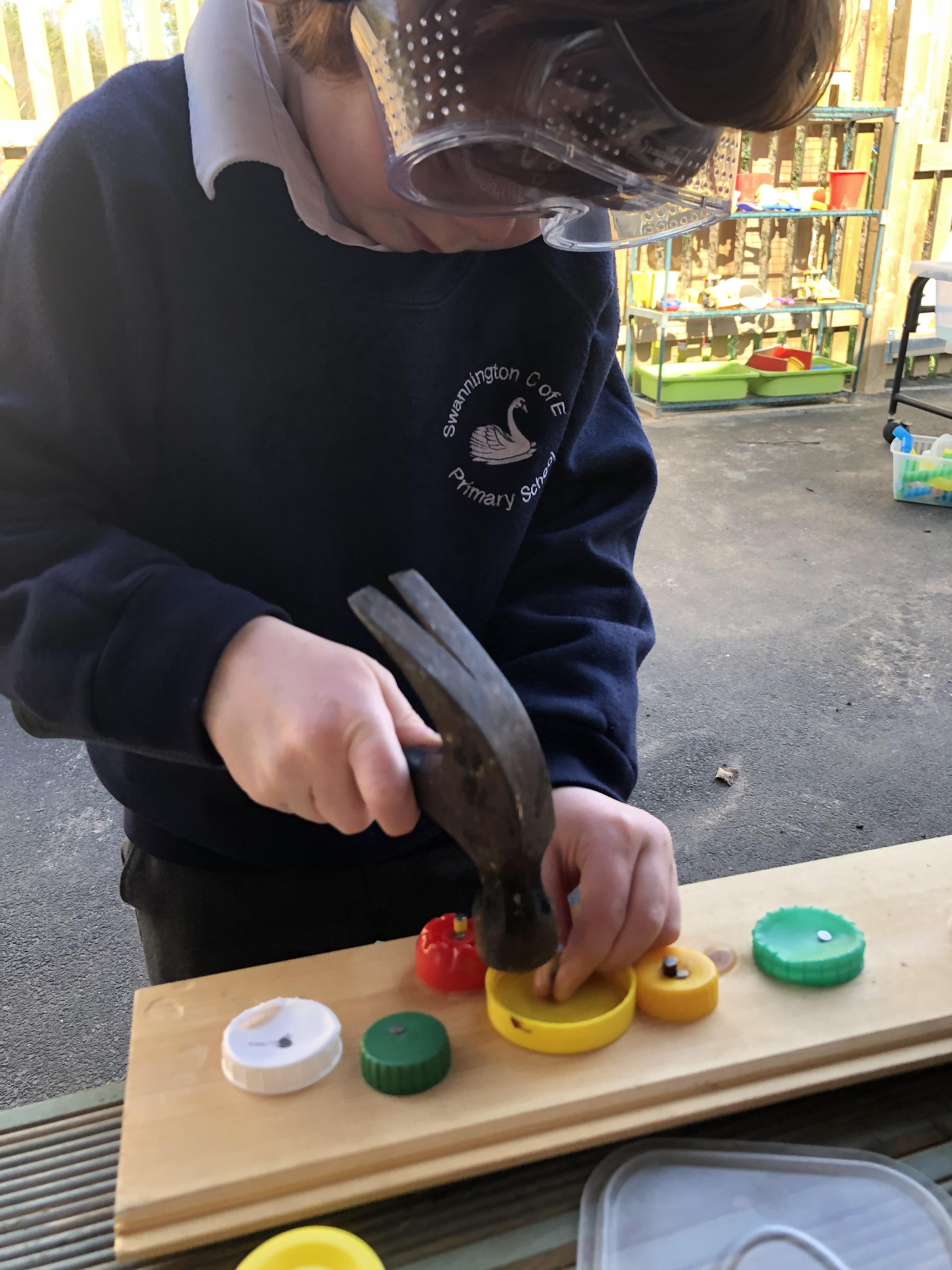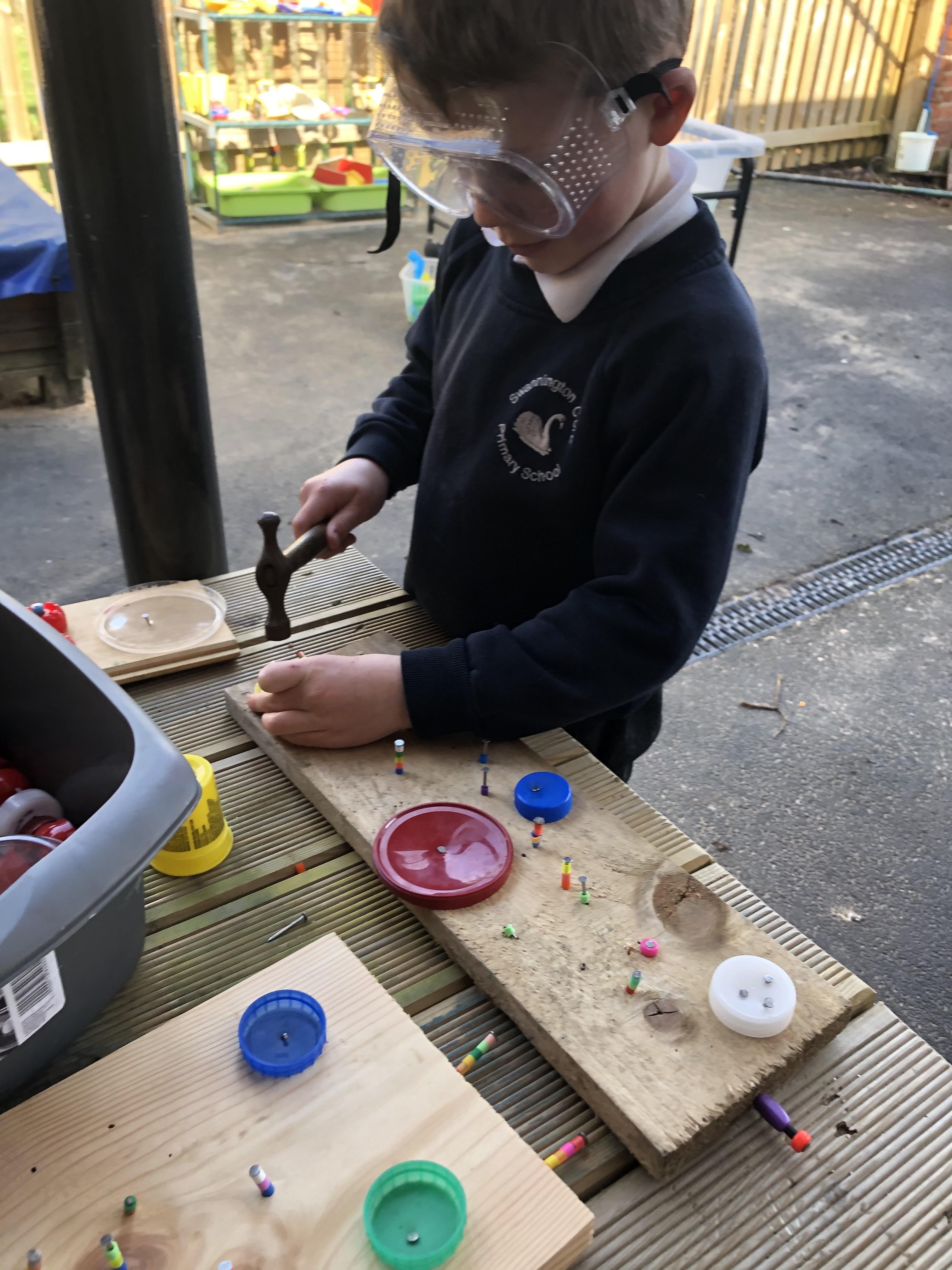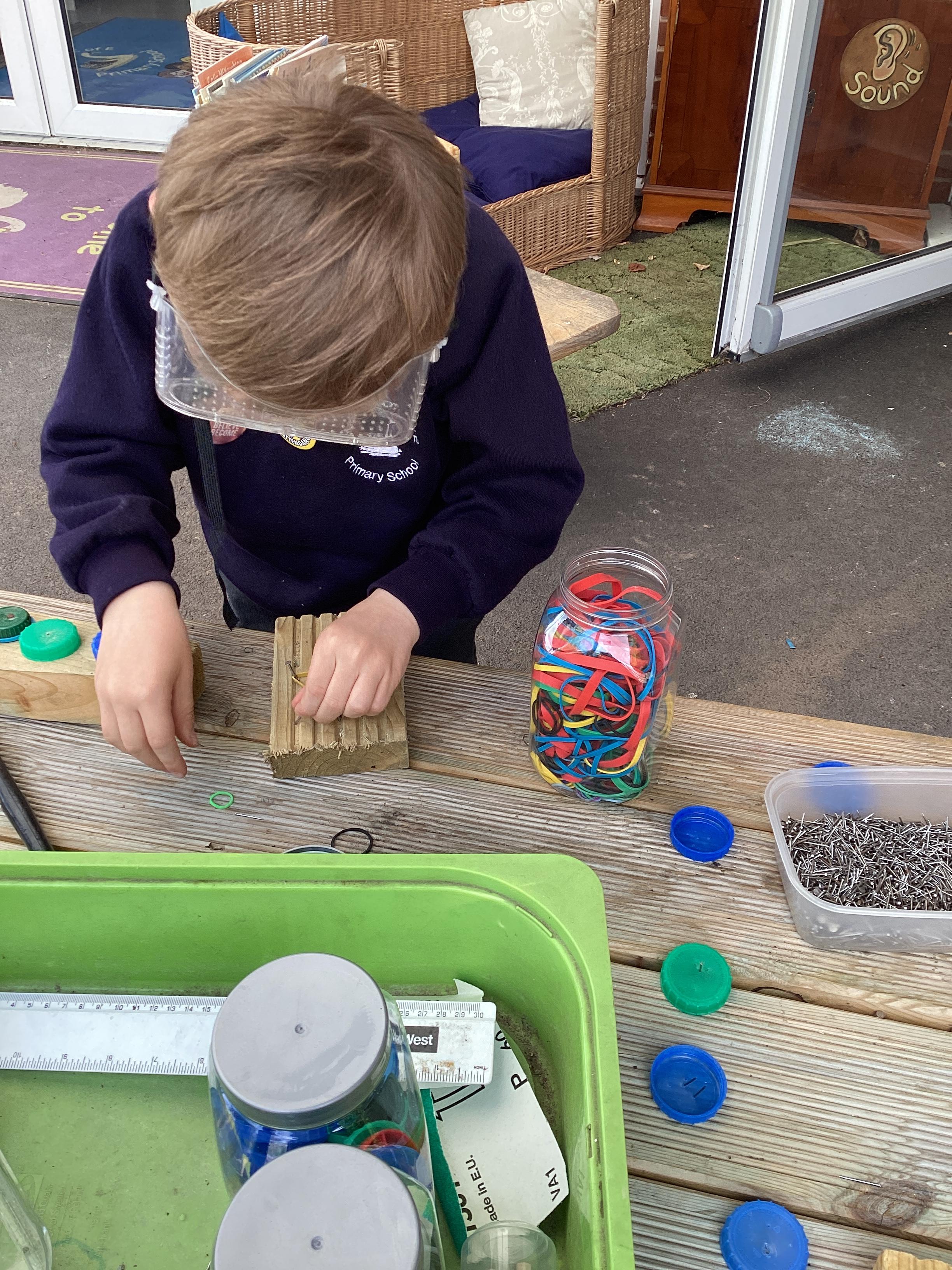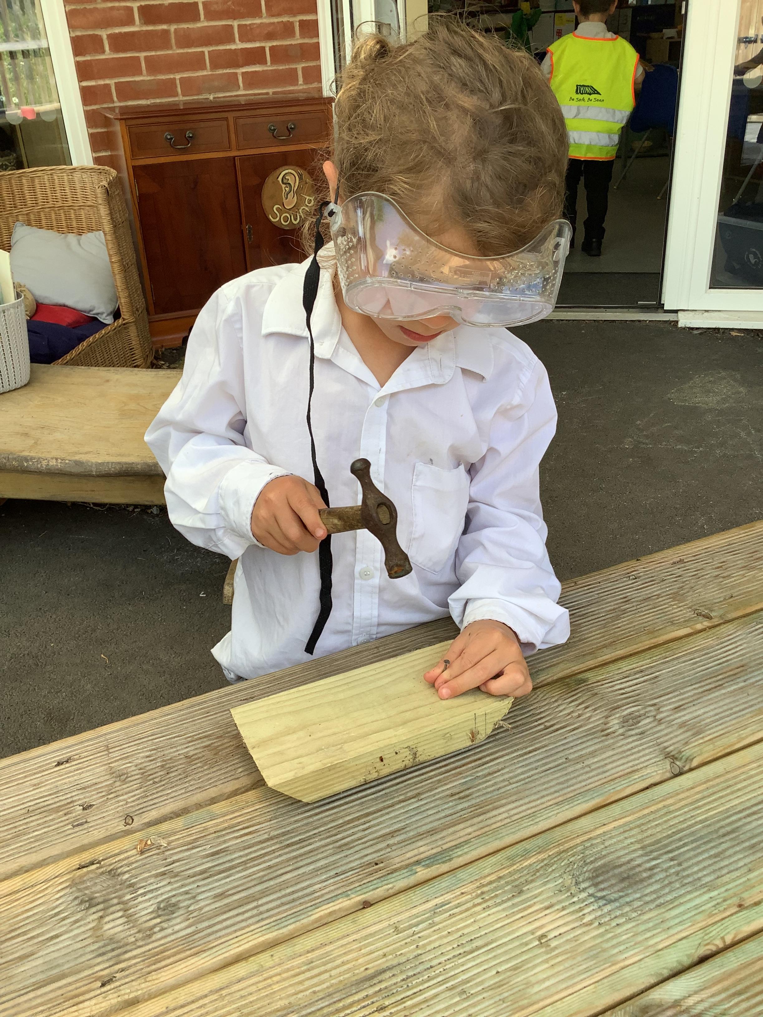 Hammers + nails + loose parts + children = fabulously creative wood work
