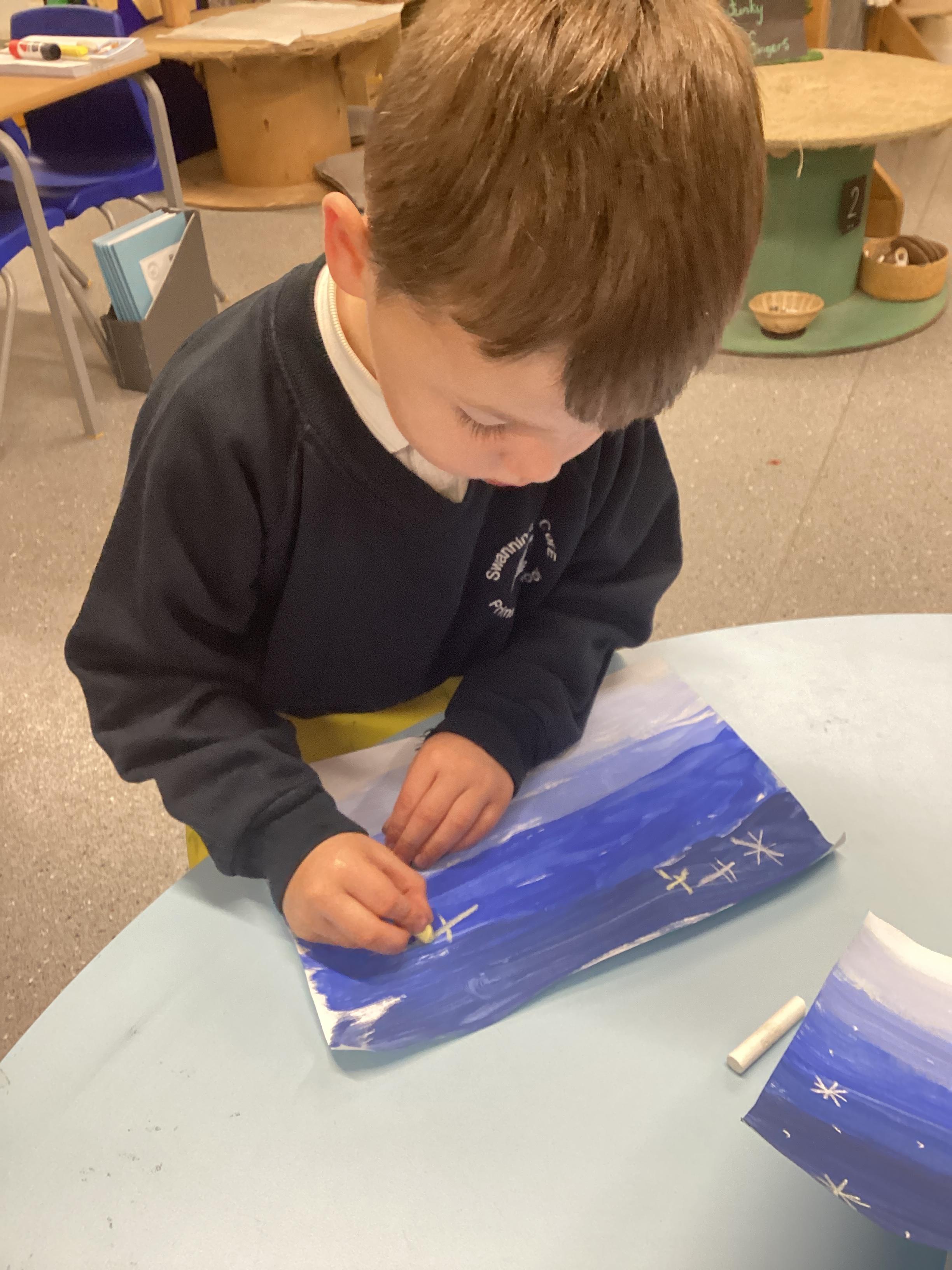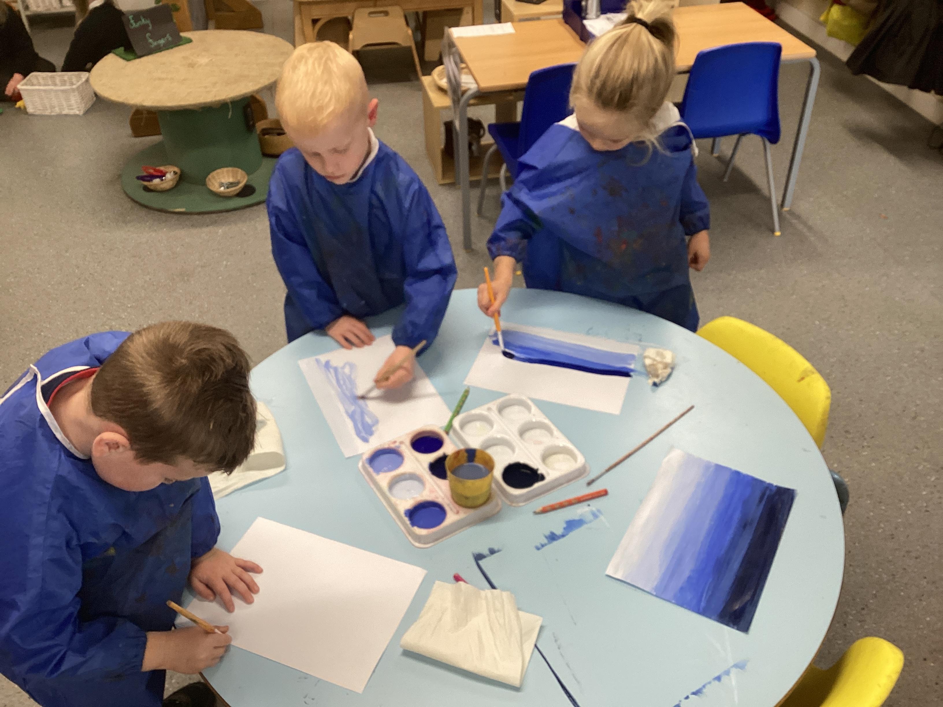 Creating a sky scene using different shades of blue- Oct 2024