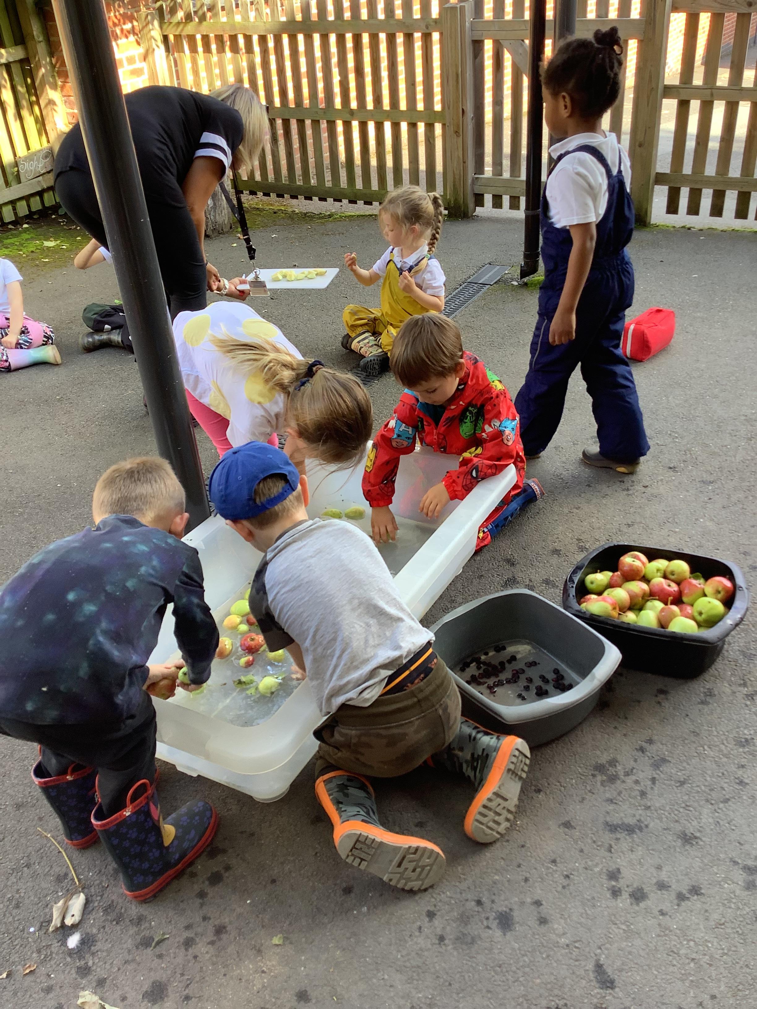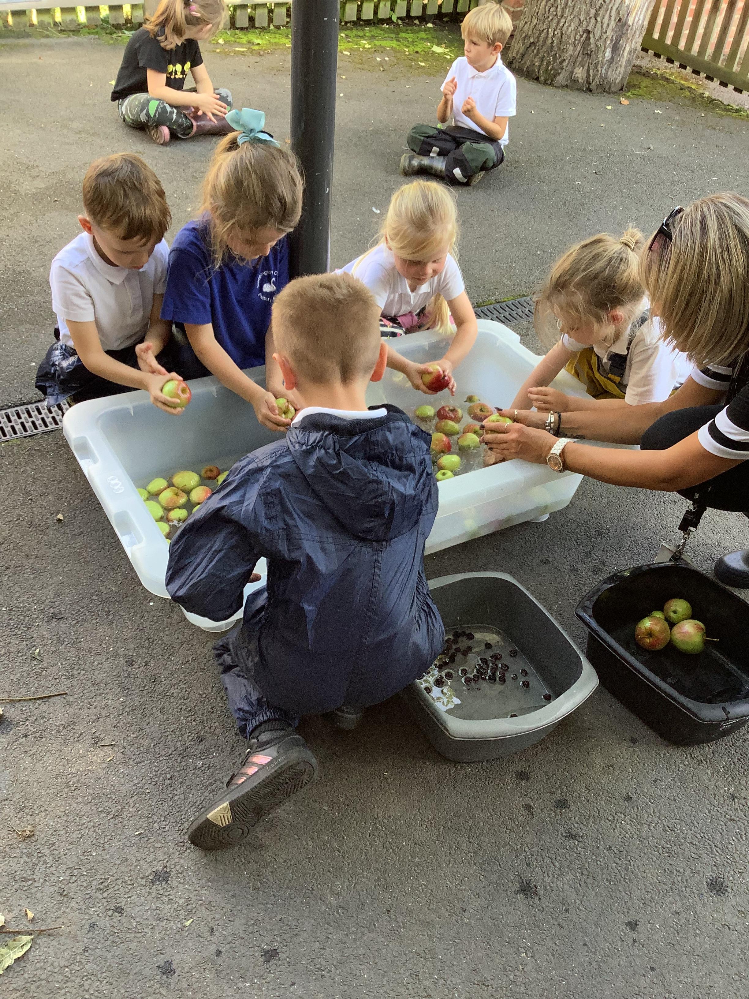 Blackberries and apples- picking, washing and eating