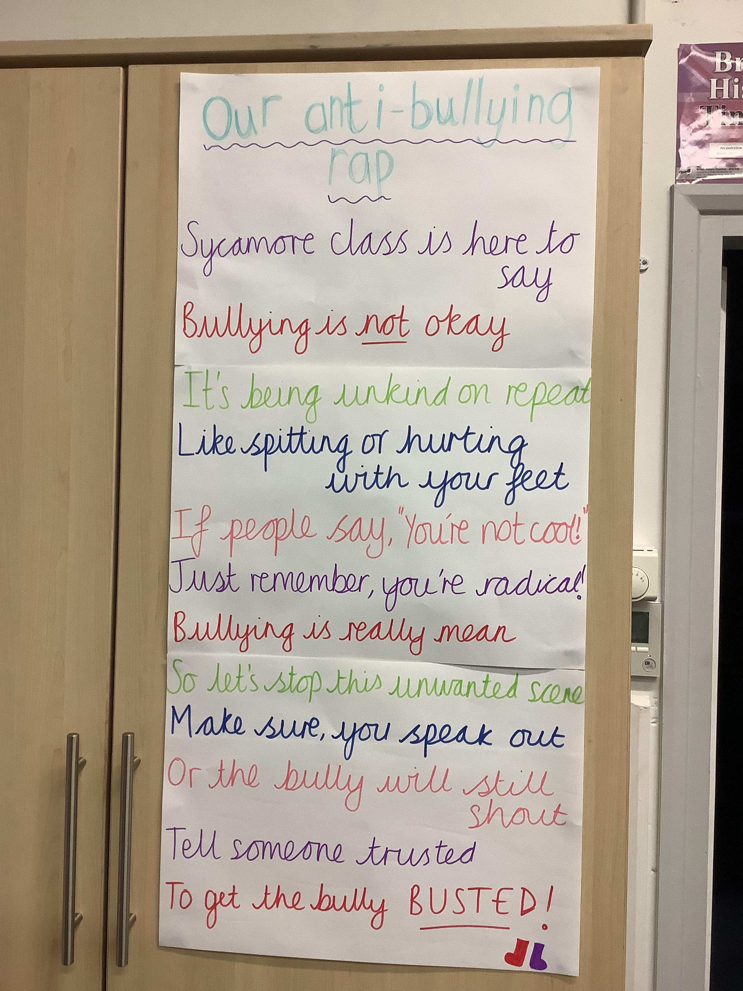 To celebrate anti-bullying, Sycamore class wrote a rap about bullying; they did a fab job!